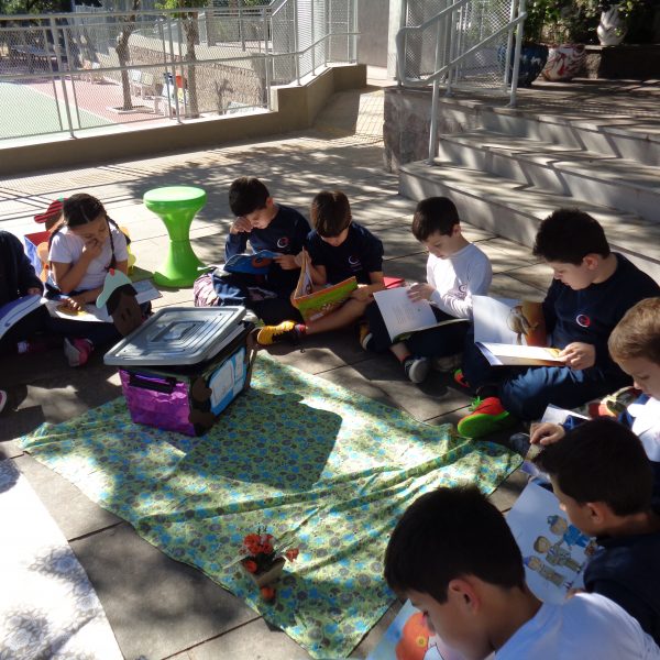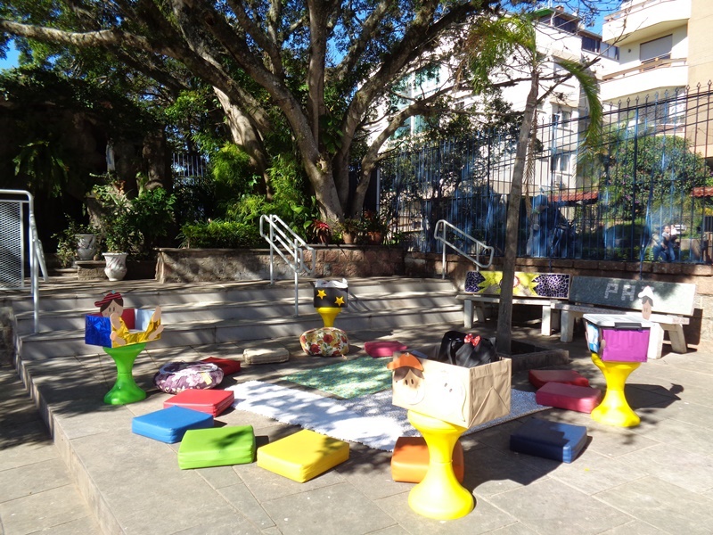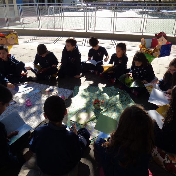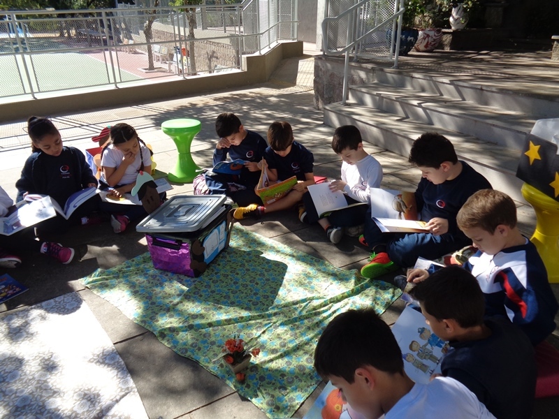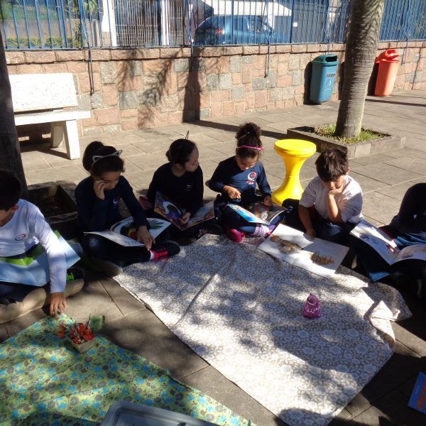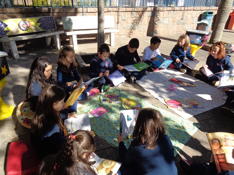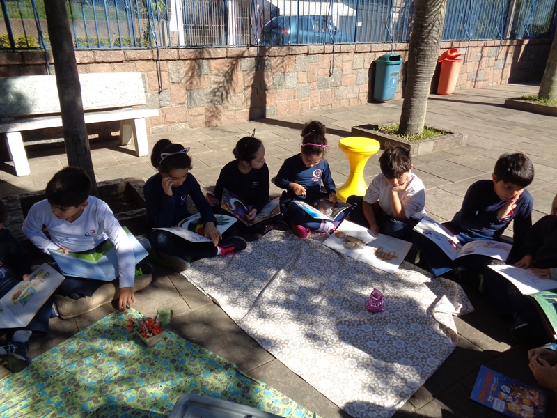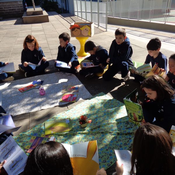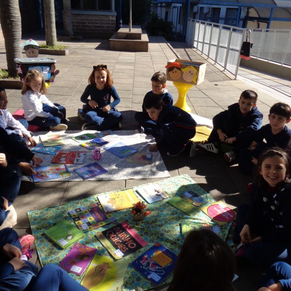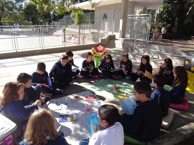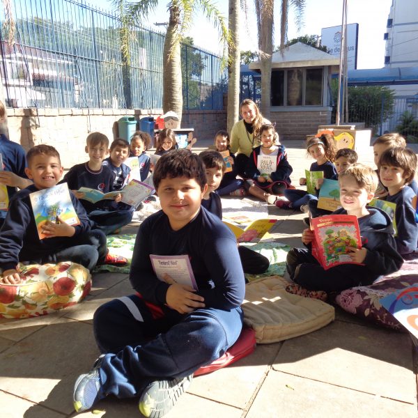 As professoras organizaram um ambiente lúdico e inspirador para dar início ao Projeto de Leitura e chamar à atenção das crianças para a importância do hábito de ler.
