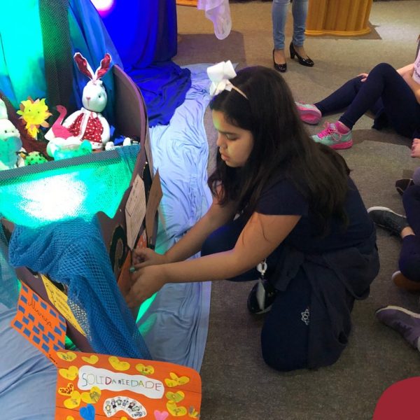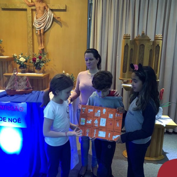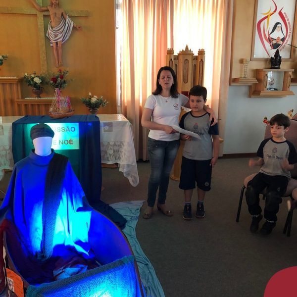 Cada criança escreveu sua missão no “tijolo da turma”, o qual foi colado ao redor da arca, simbolizando a cooperação nesta construção do Reino de Deus.