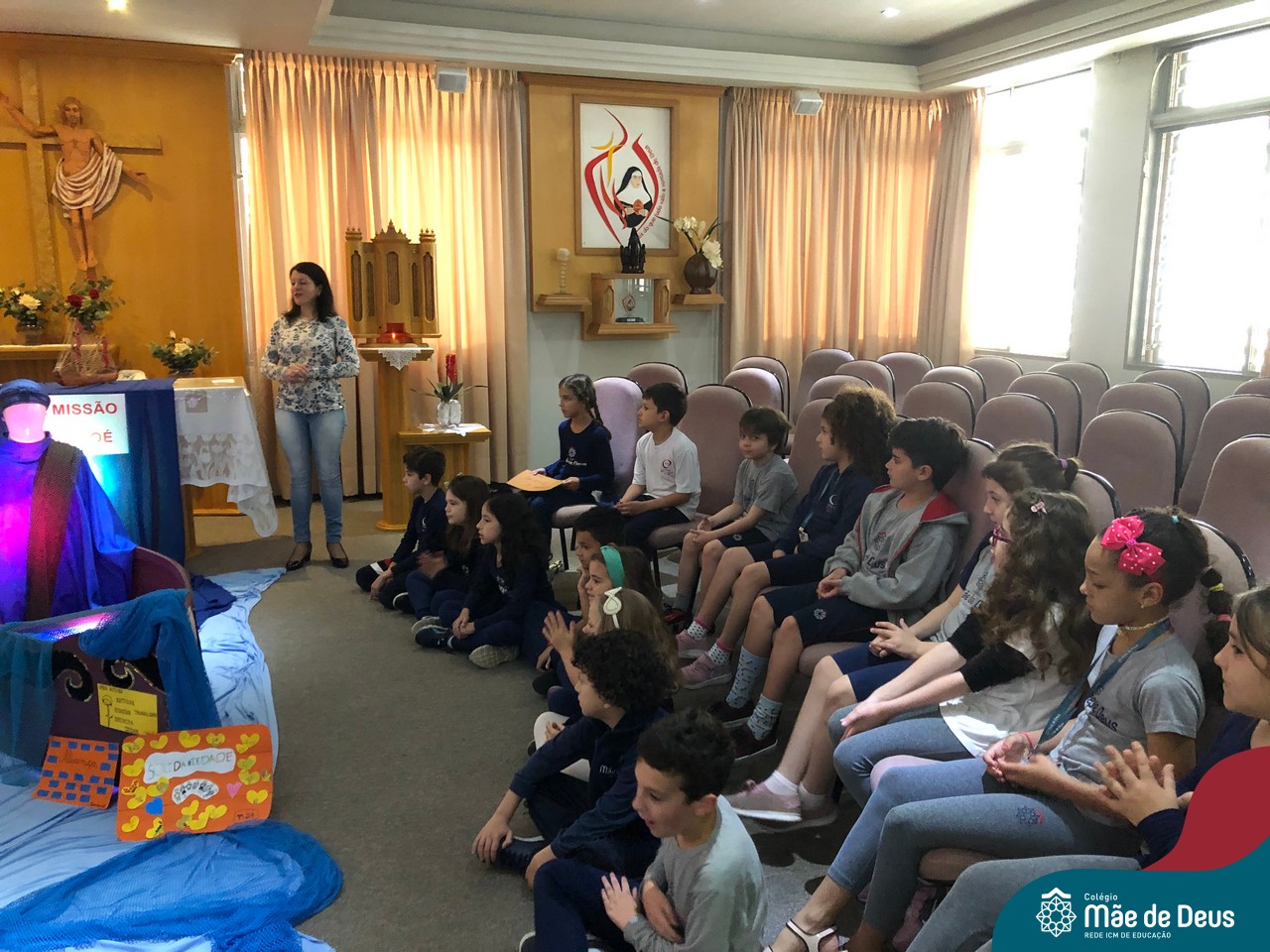 No mês de outubro foi realizado o tradicional cultivo mensal com a Educação Infantil e os Anos Iniciais do Ensino Fundamental com a temática da missão de cada pessoa. Na ocasião refletiu-se sobre a missão de Noé, construir a arca e proteger a vida dos animais e de sua família, a missão de Jesus, vir ao mundo para ensinar o amor do Pai, e a missão de cada criança ou adulto na construção de uma sociedade melhor.
