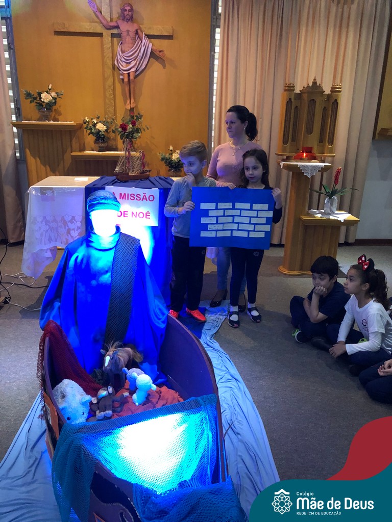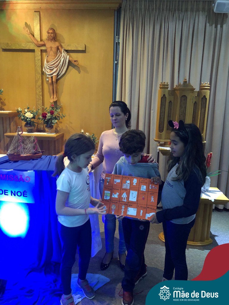 Cada criança escreveu sua missão no “tijolo da turma”, o qual foi colado ao redor da arca, simbolizando a cooperação nesta construção do Reino de Deus.