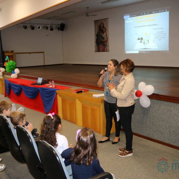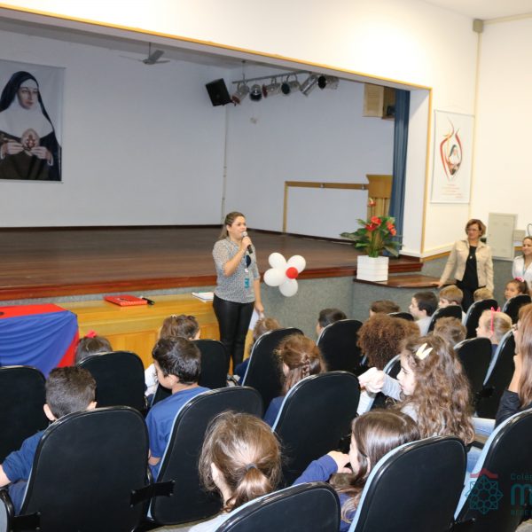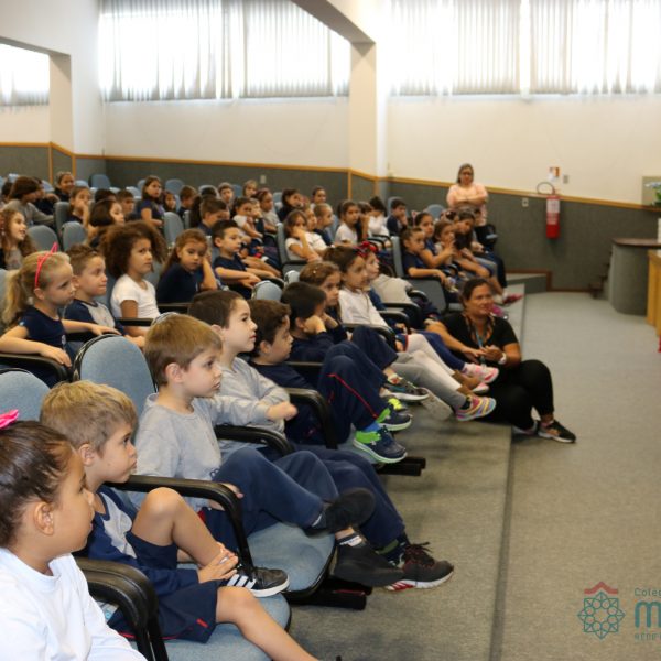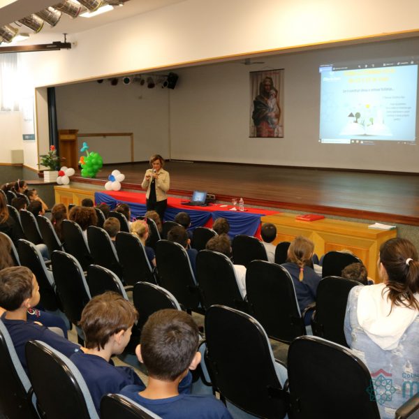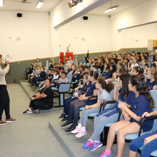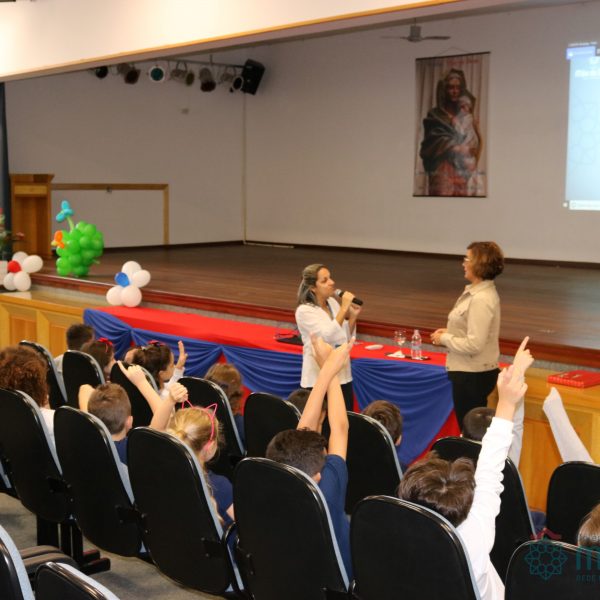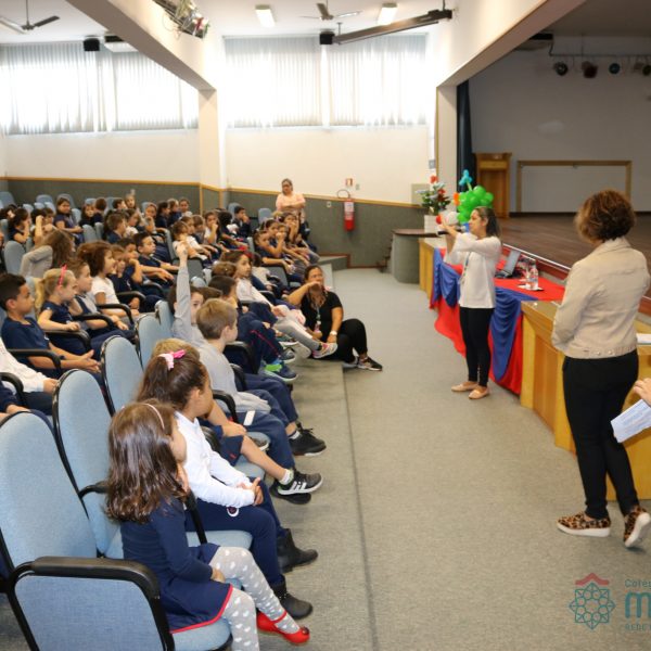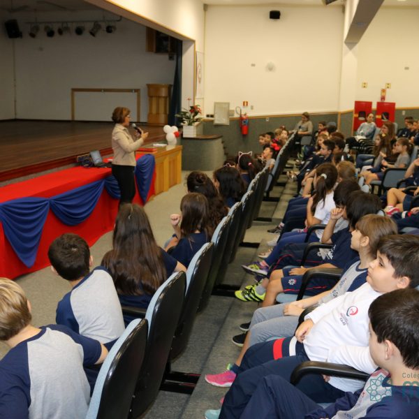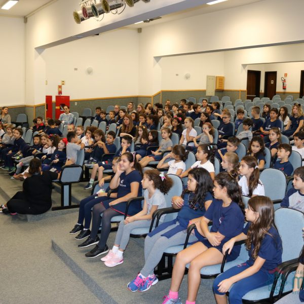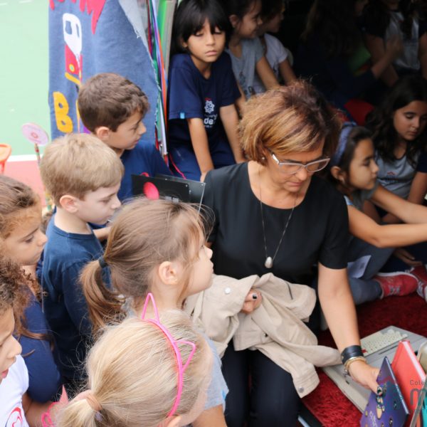 A abertura oficial da Feira Literária e da Semana do Colégio aconteceu na manhã do dia 02/05 no Auditório, com a presença da patrona, a escritora Christina Dias, membros da direção do Colégio, alunos, professores da Educação Infantil e Anos Iniciais do Ensino Fundamental, além dos livreiros.