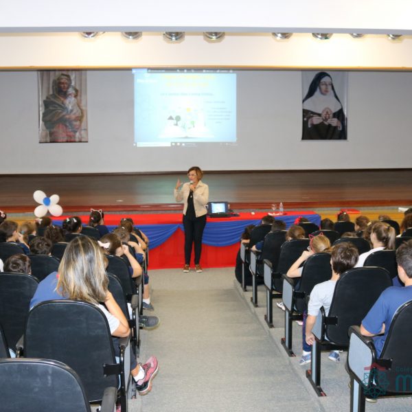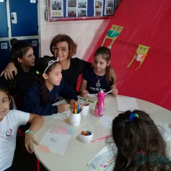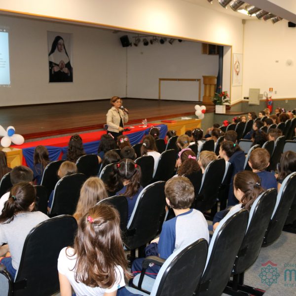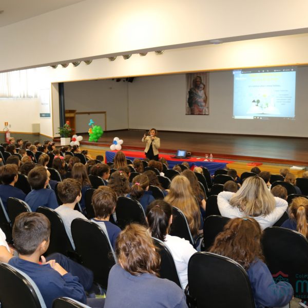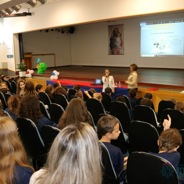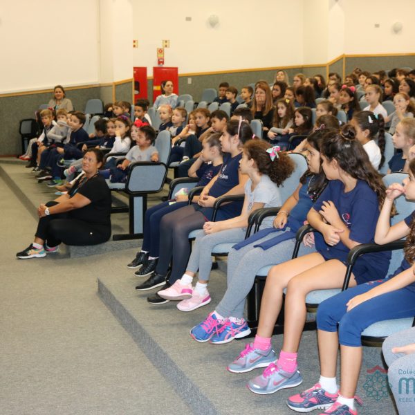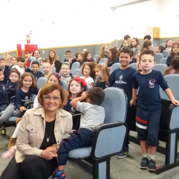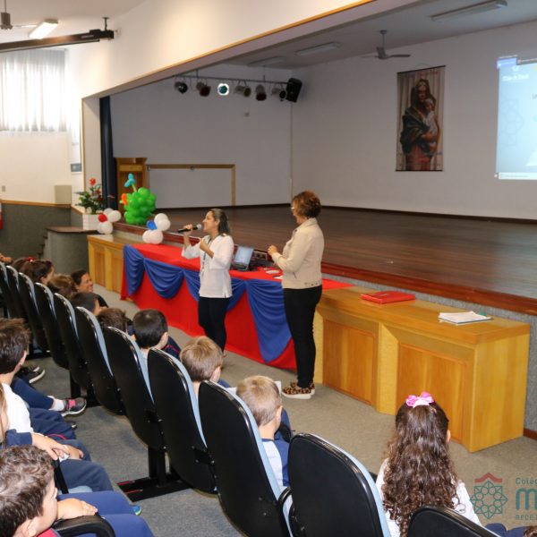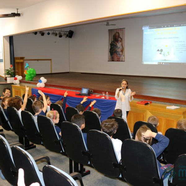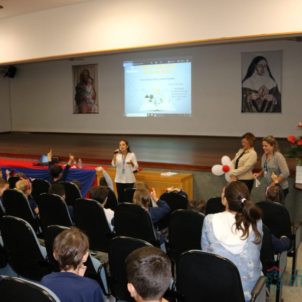 A abertura oficial da Feira Literária e da Semana do Colégio aconteceu na manhã do dia 02/05 no Auditório, com a presença da patrona, a escritora Christina Dias, membros da direção do Colégio, alunos, professores da Educação Infantil e Anos Iniciais do Ensino Fundamental, além dos livreiros.