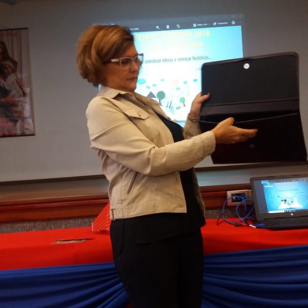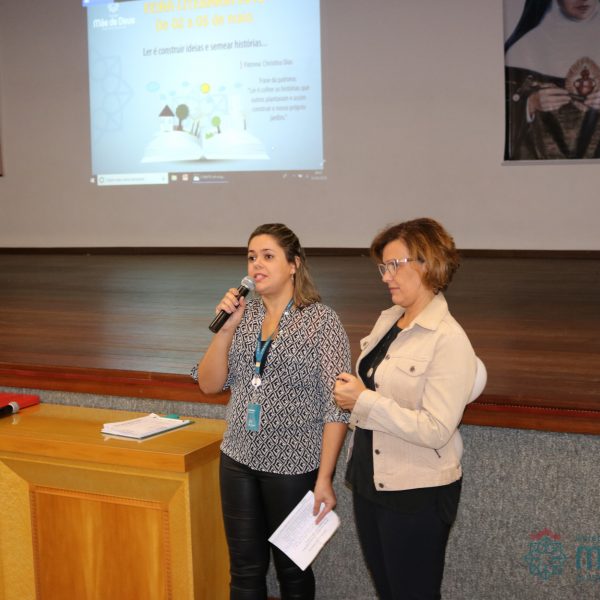 Na solenidade em homenagem a patrona foi dada a palavra a Coordenadora Pedagógica, Daiane Medeiros, que acolheu a todos e prestou sua homenagem a escritora em nome da Escola. A bibliotecária Silvane Manhago, falou sobre a intensa programação cultural da feira que proporciona o encontro com grandes autores e sua importância na formação de novos leitores. Por fim, os presentes foram convidados a cantar os parabéns em homenagem à Semana do Colégio.