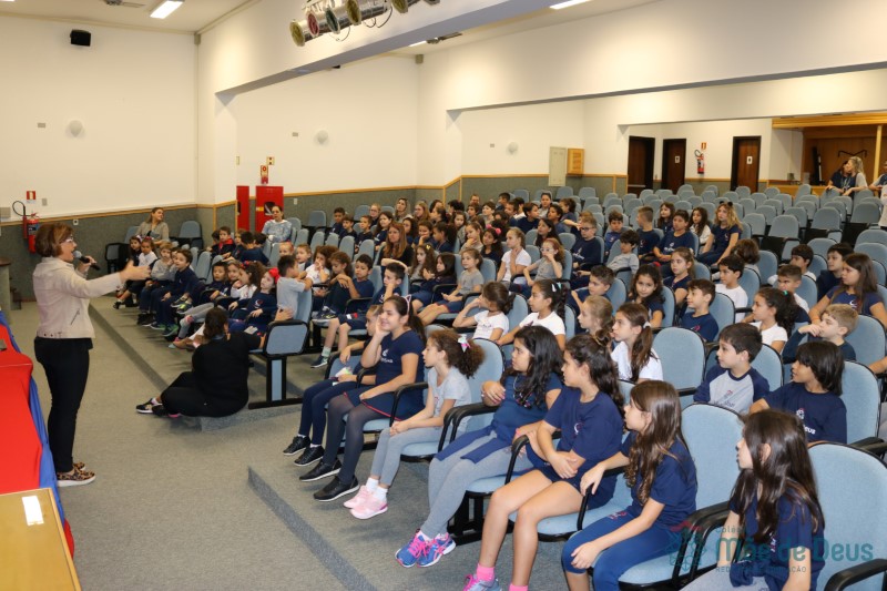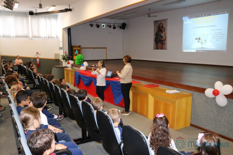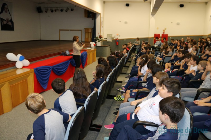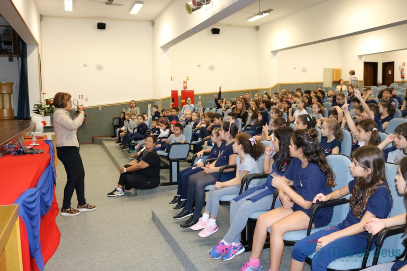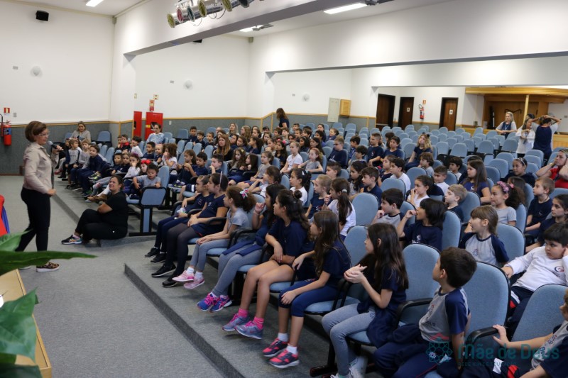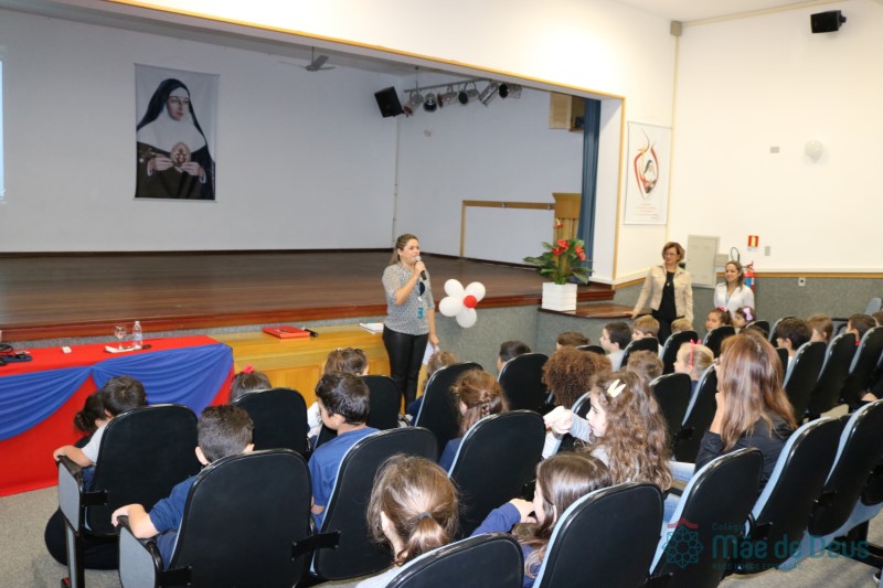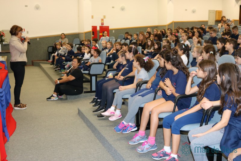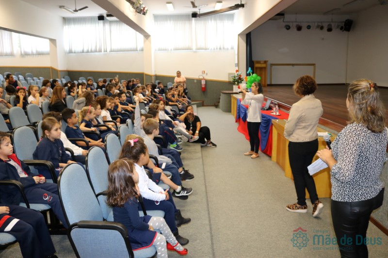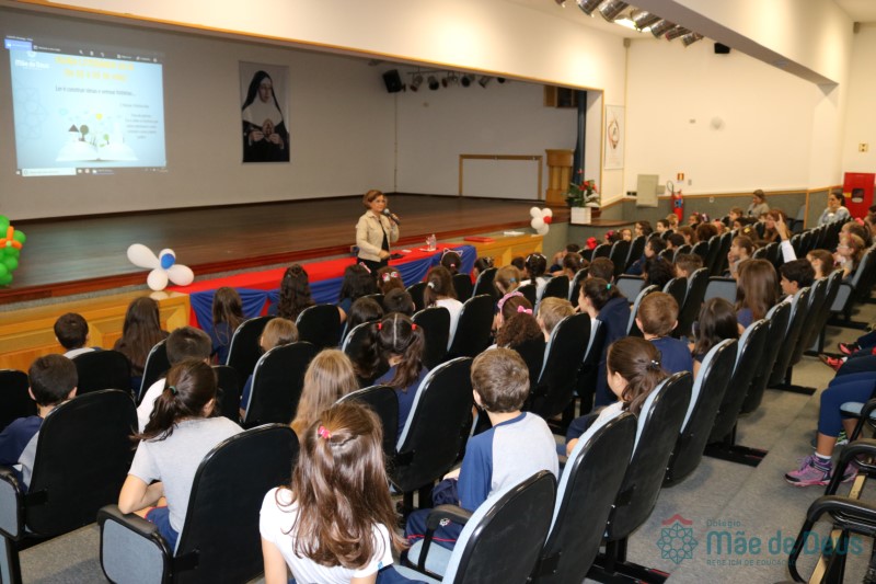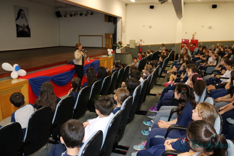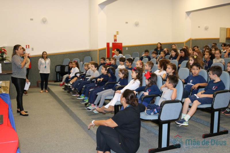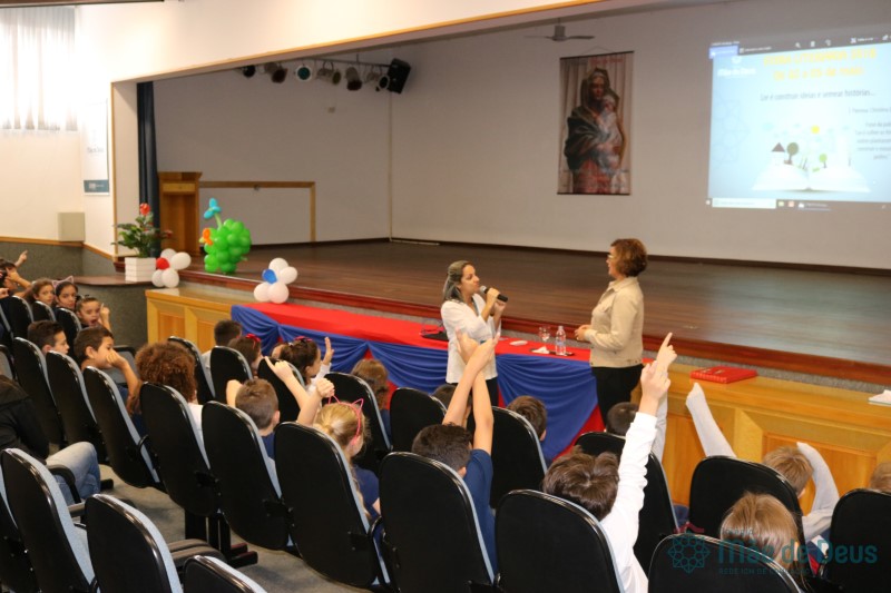A abertura oficial da Feira Literária e da Semana do Colégio aconteceu na manhã do dia 02/05 no Auditório, com a presença da patrona, a escritora Christina Dias, membros da direção do Colégio, alunos, professores da Educação Infantil e Anos Iniciais do Ensino Fundamental, além dos livreiros.