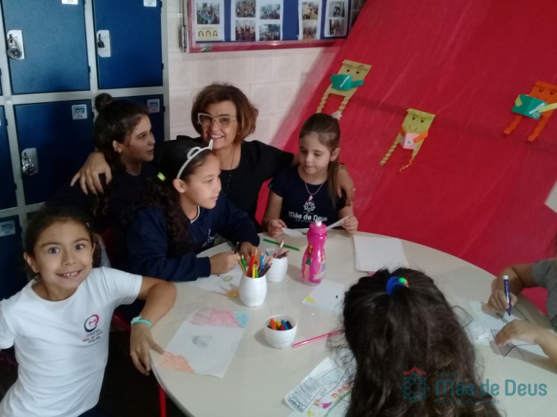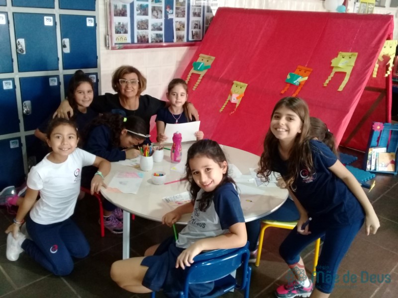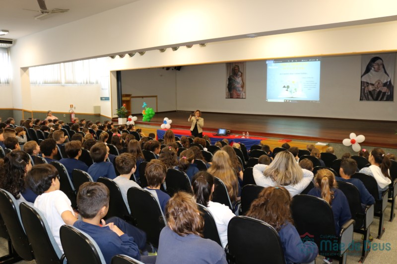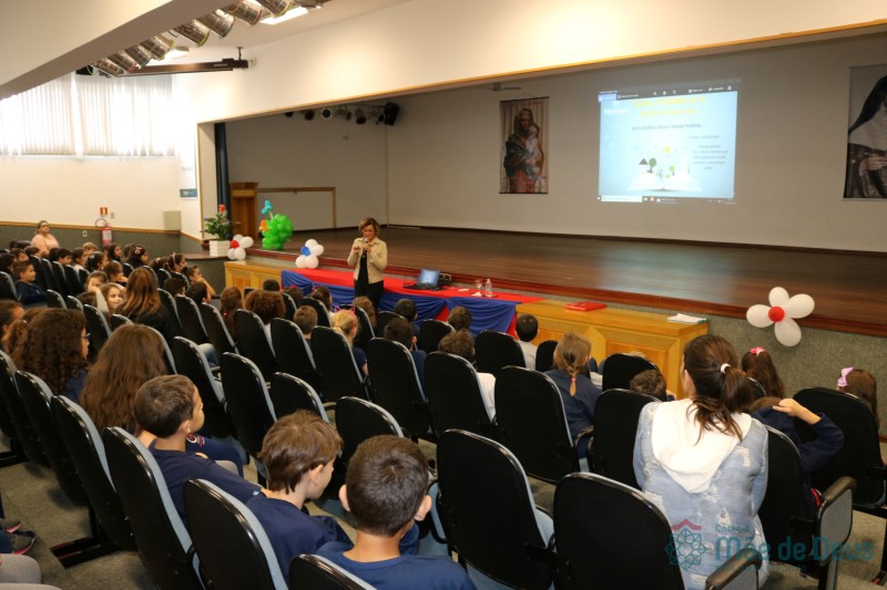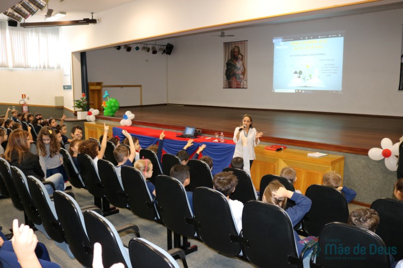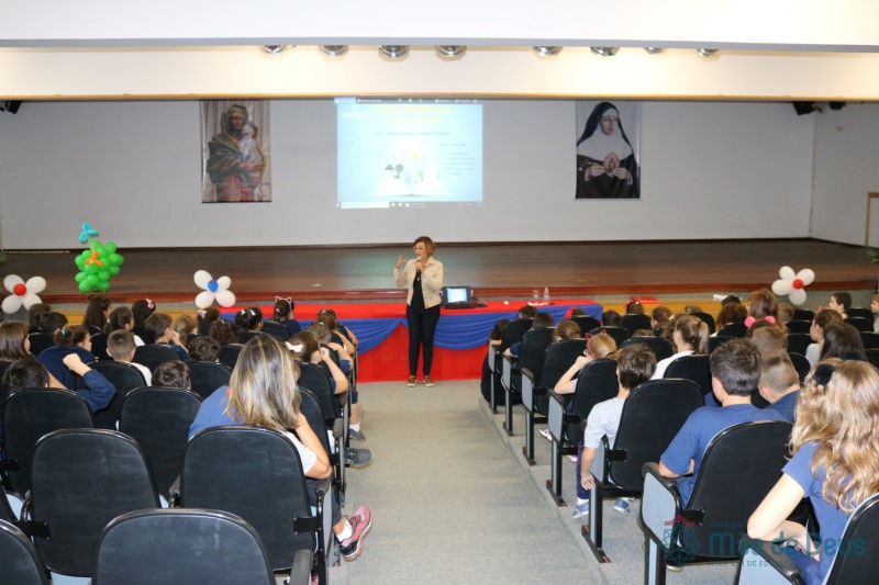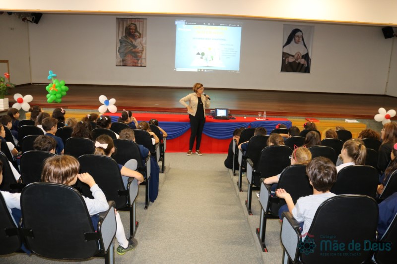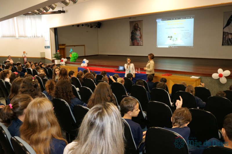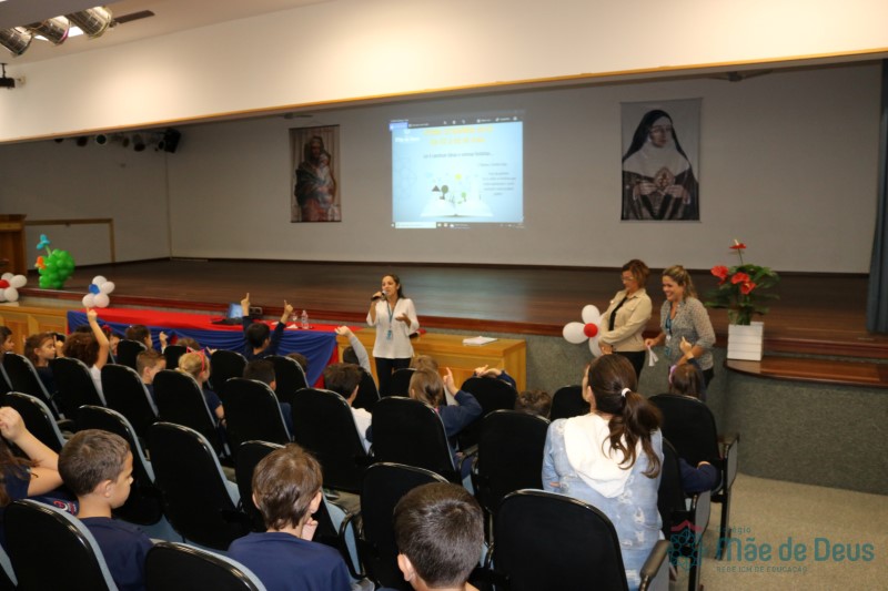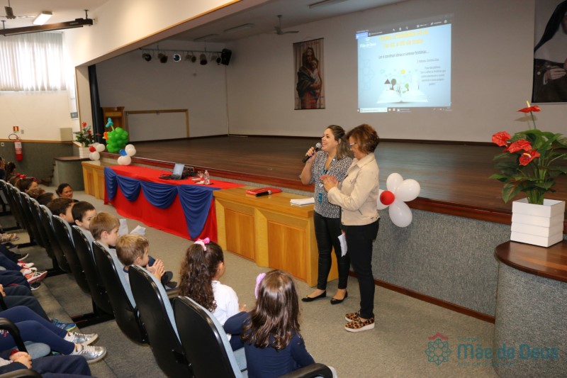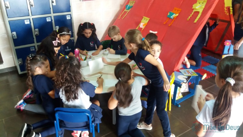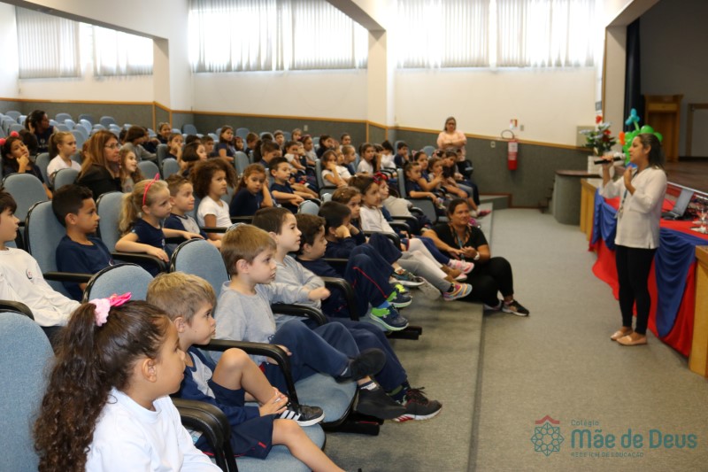 A abertura oficial da Feira Literária e da Semana do Colégio aconteceu na manhã do dia 02/05 no Auditório, com a presença da patrona, a escritora Christina Dias, membros da direção do Colégio, alunos, professores da Educação Infantil e Anos Iniciais do Ensino Fundamental, além dos livreiros.