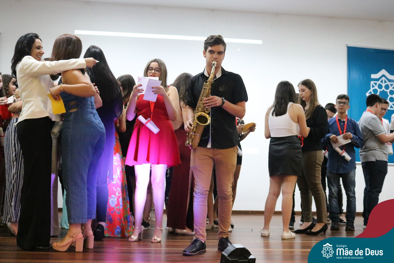 Os alunos realizaram uma linda homenagem aos colegas, professores e funcionários que os acompanharam em 2019 e foram surpreendidos com o recebimento de cartas, com mensagens escritas pelos professores a cada um deles.