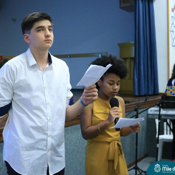 O dia 27 de novembro de 2019 foi muito especial para os estudantes do 9º ano do Ensino Fundamental, pois foi marcado pela celebração de ação de graças e encerramento deste ano letivo.