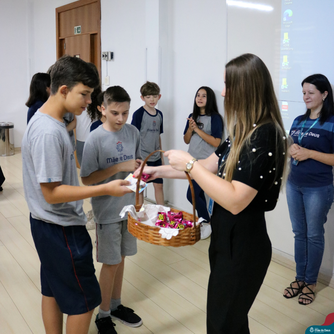 O momento foi finalizado com a entrega de uma mensagem e um “mimo” aos alunos.