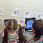 Após definirem as duplas, os alunos receberam tablets, para realizarem as leituras dos QR codes, em que constavam os materiais disponibilizados para a atividade.