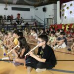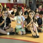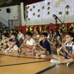 Os alunos utilizaram as suas flautas para apresentar as belas canções que ensaiaram no Colégio durante o ano.