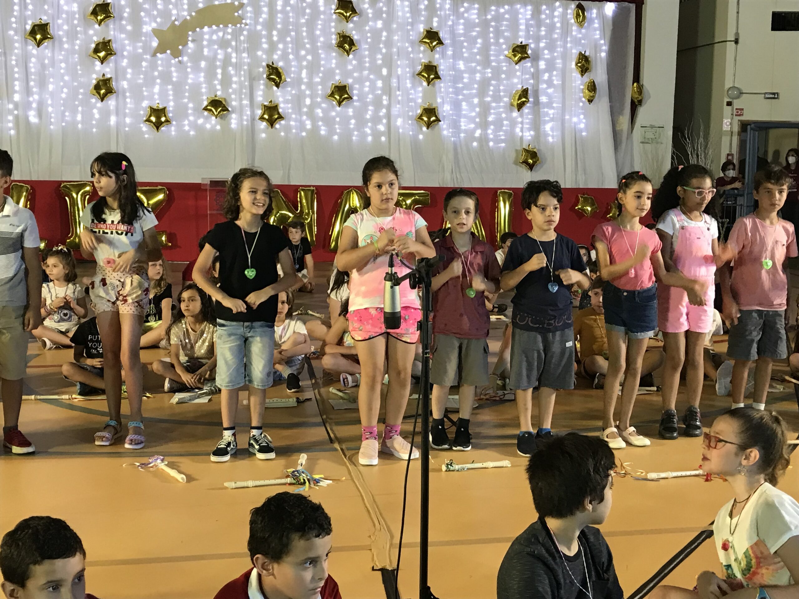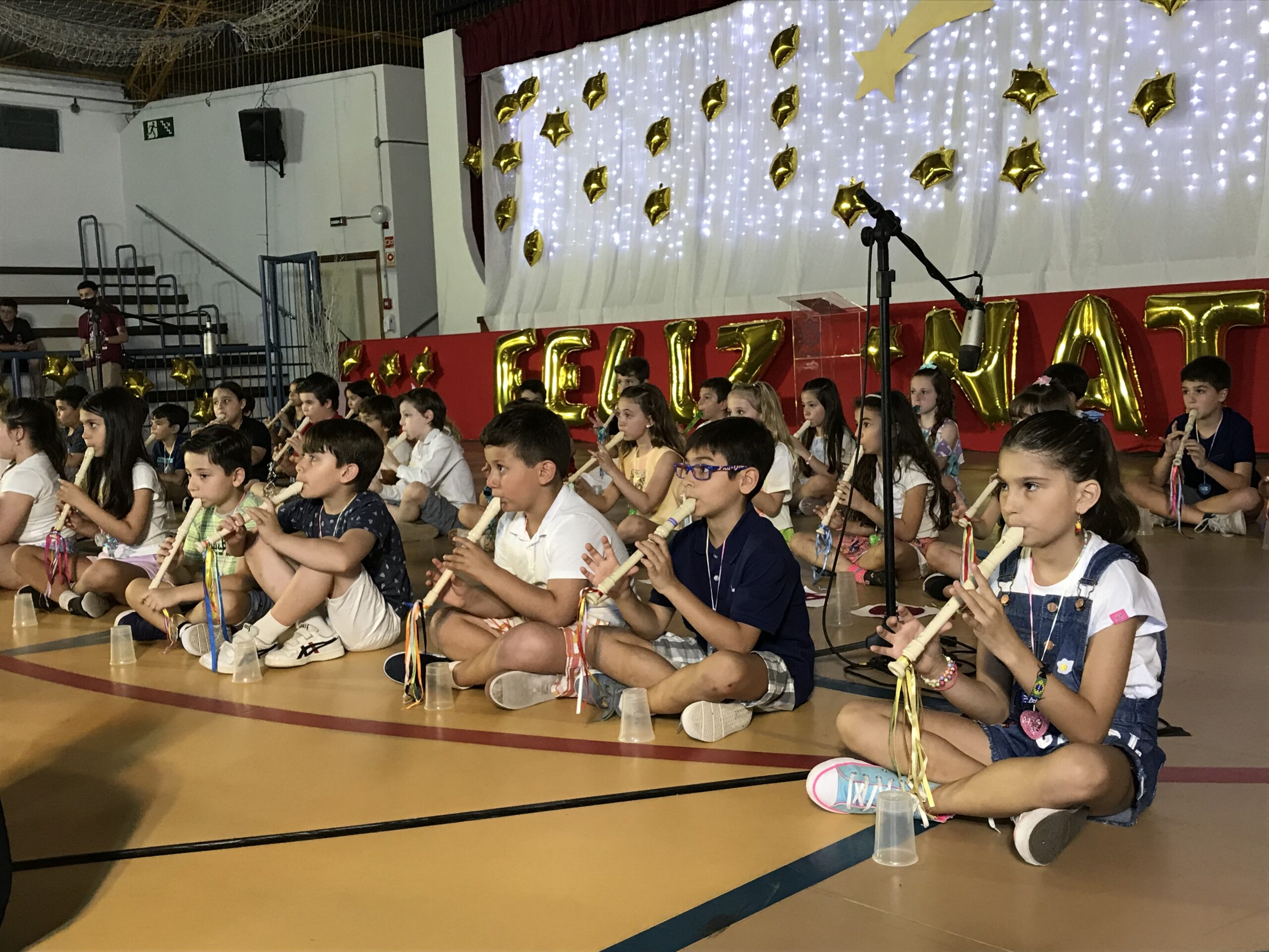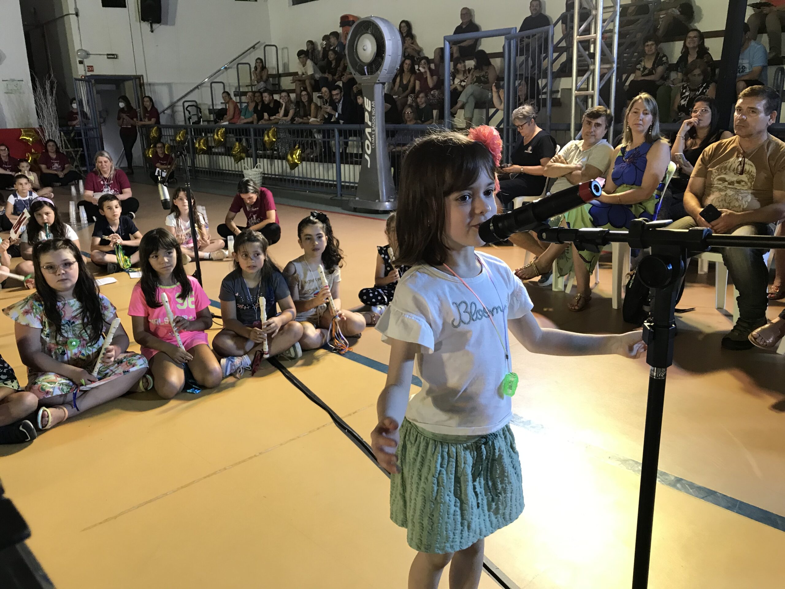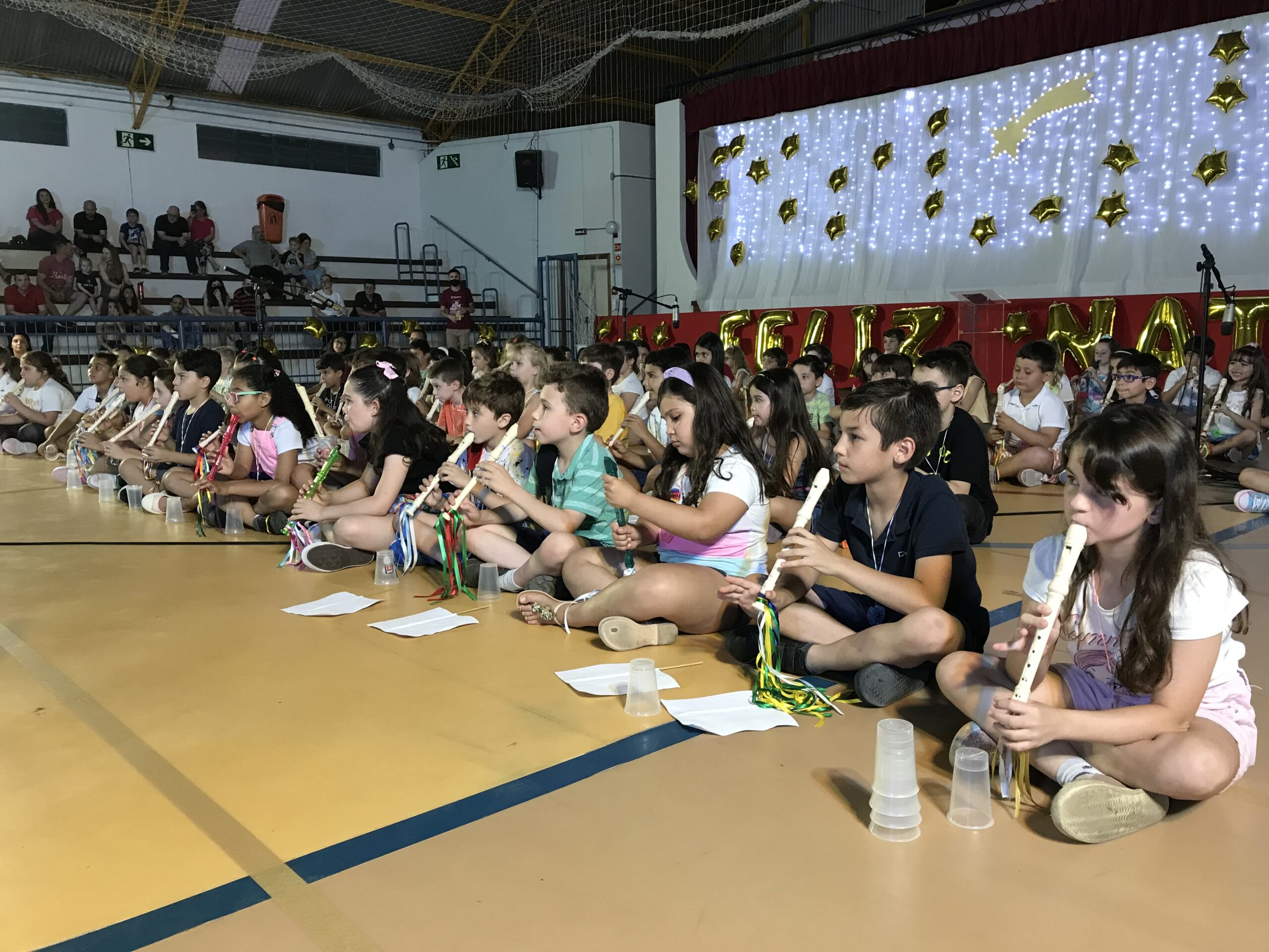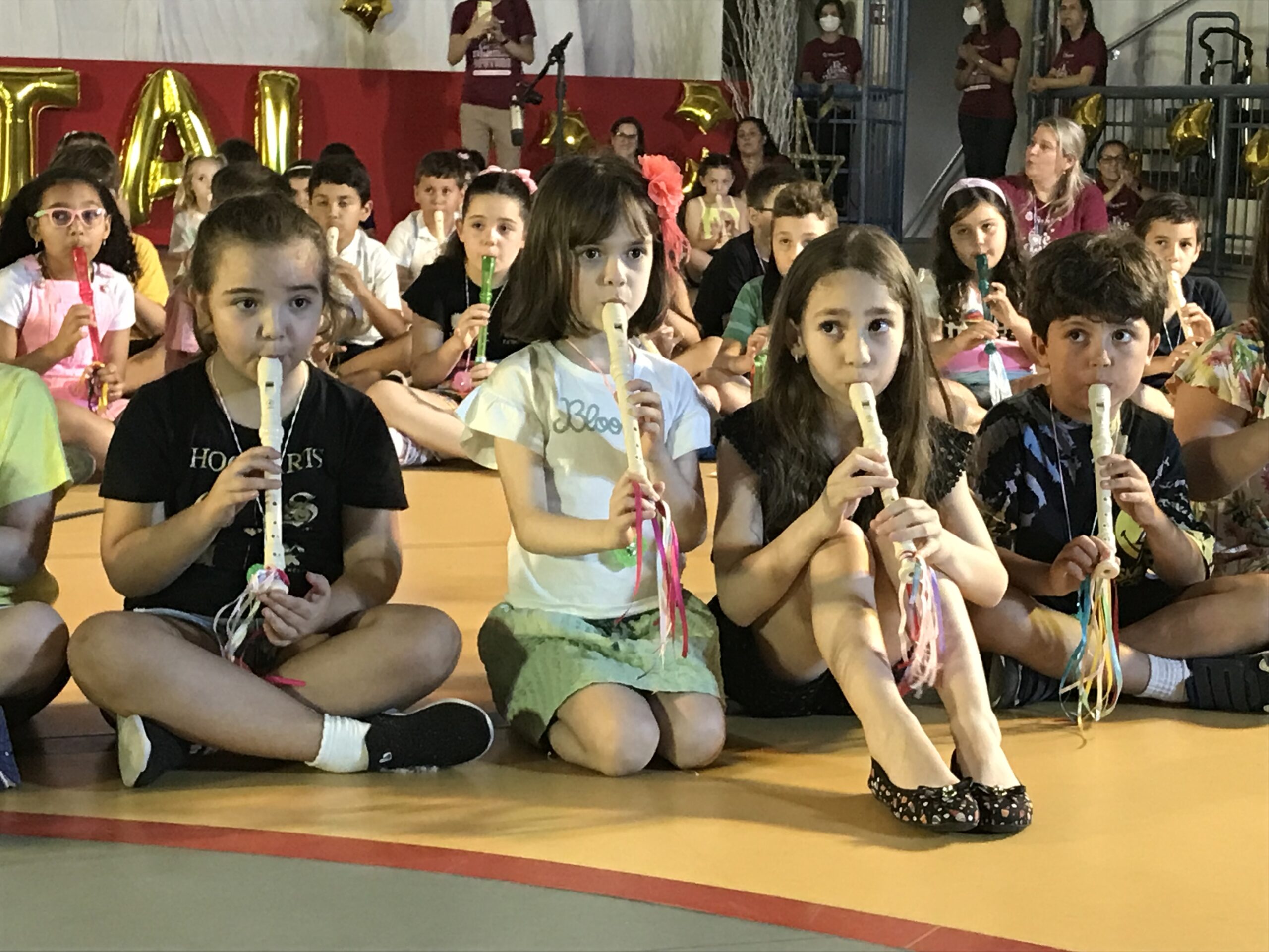 Os alunos utilizaram as suas flautas para apresentar as belas canções que ensaiaram no Colégio durante o ano.