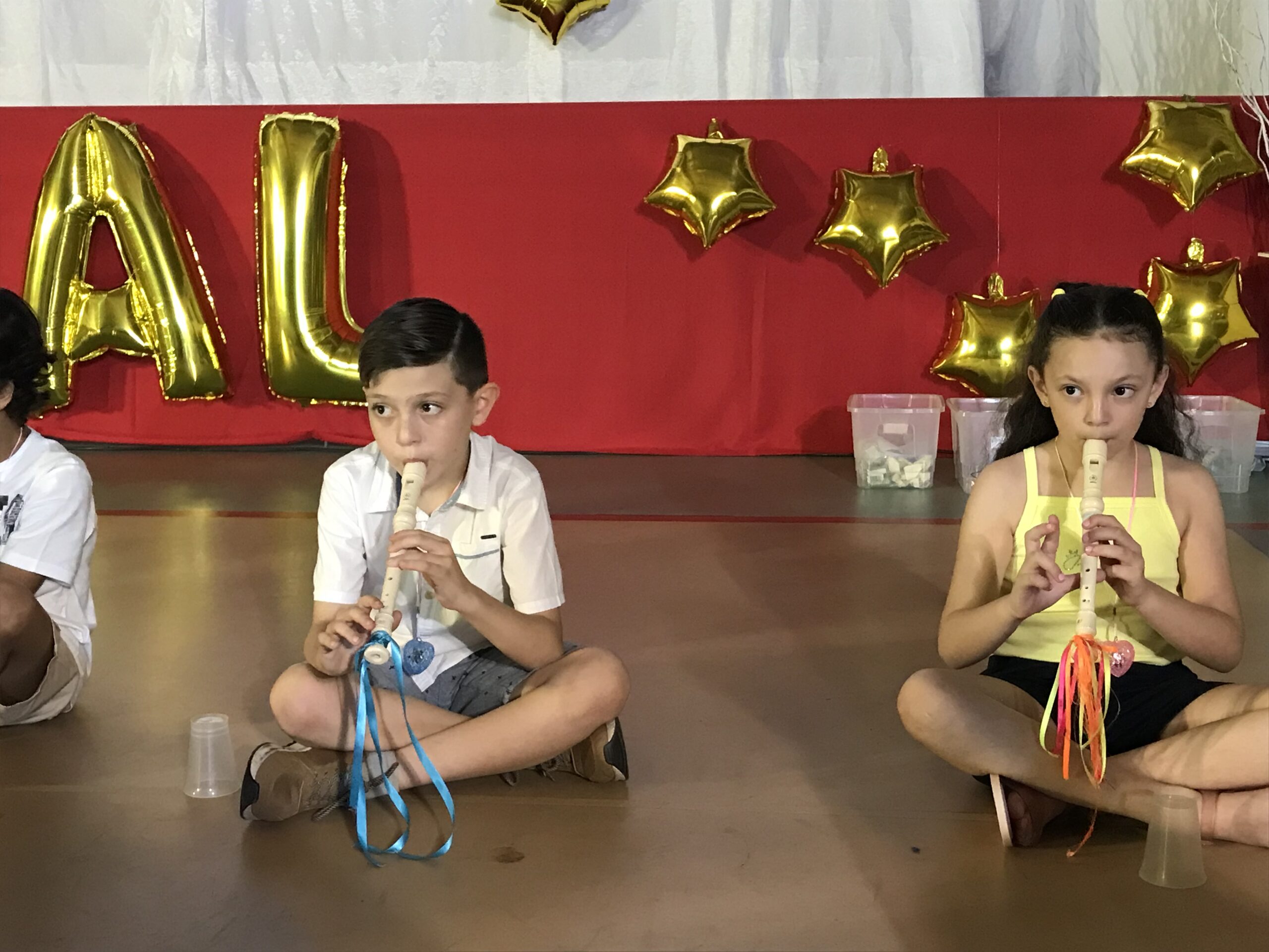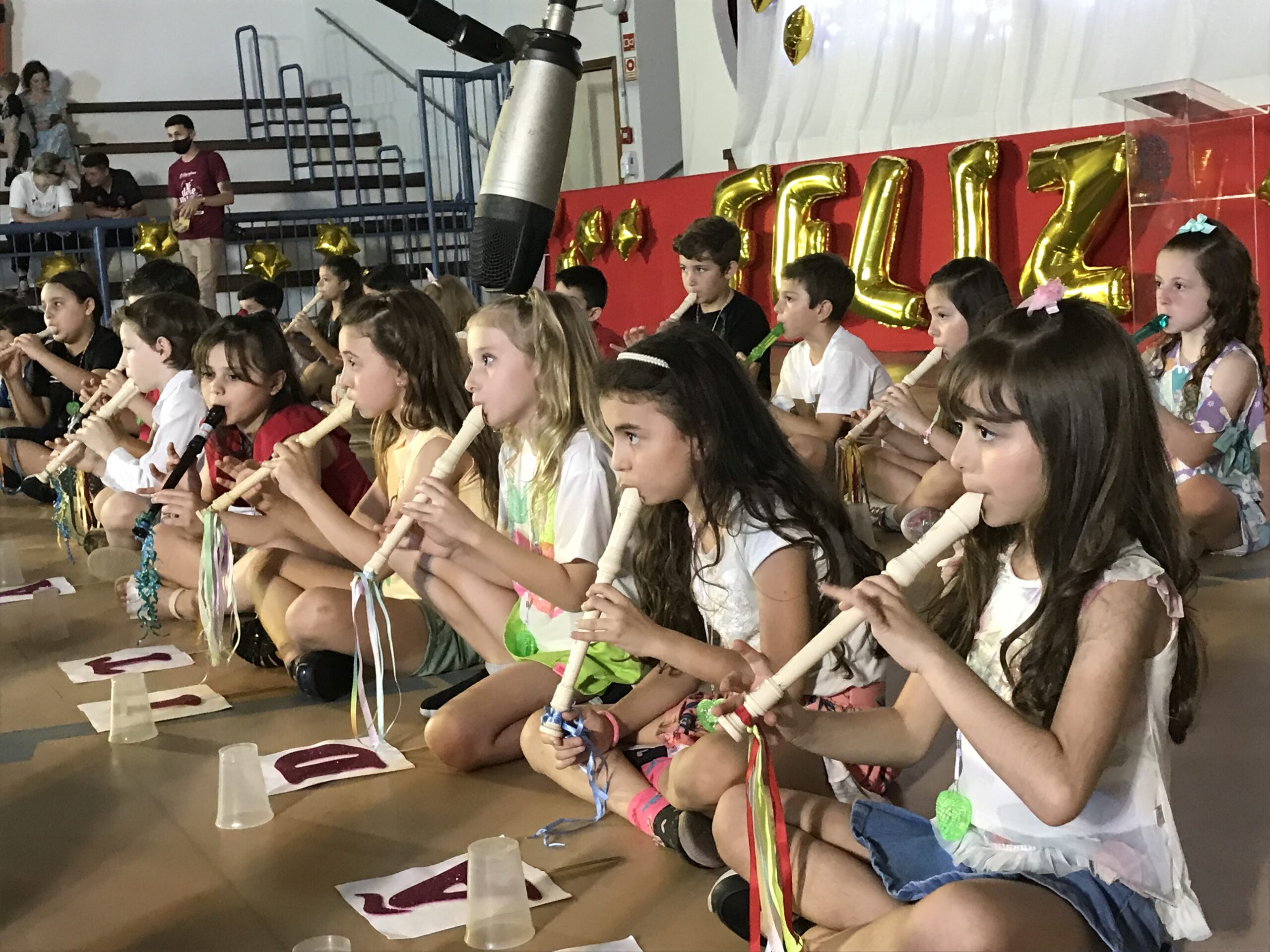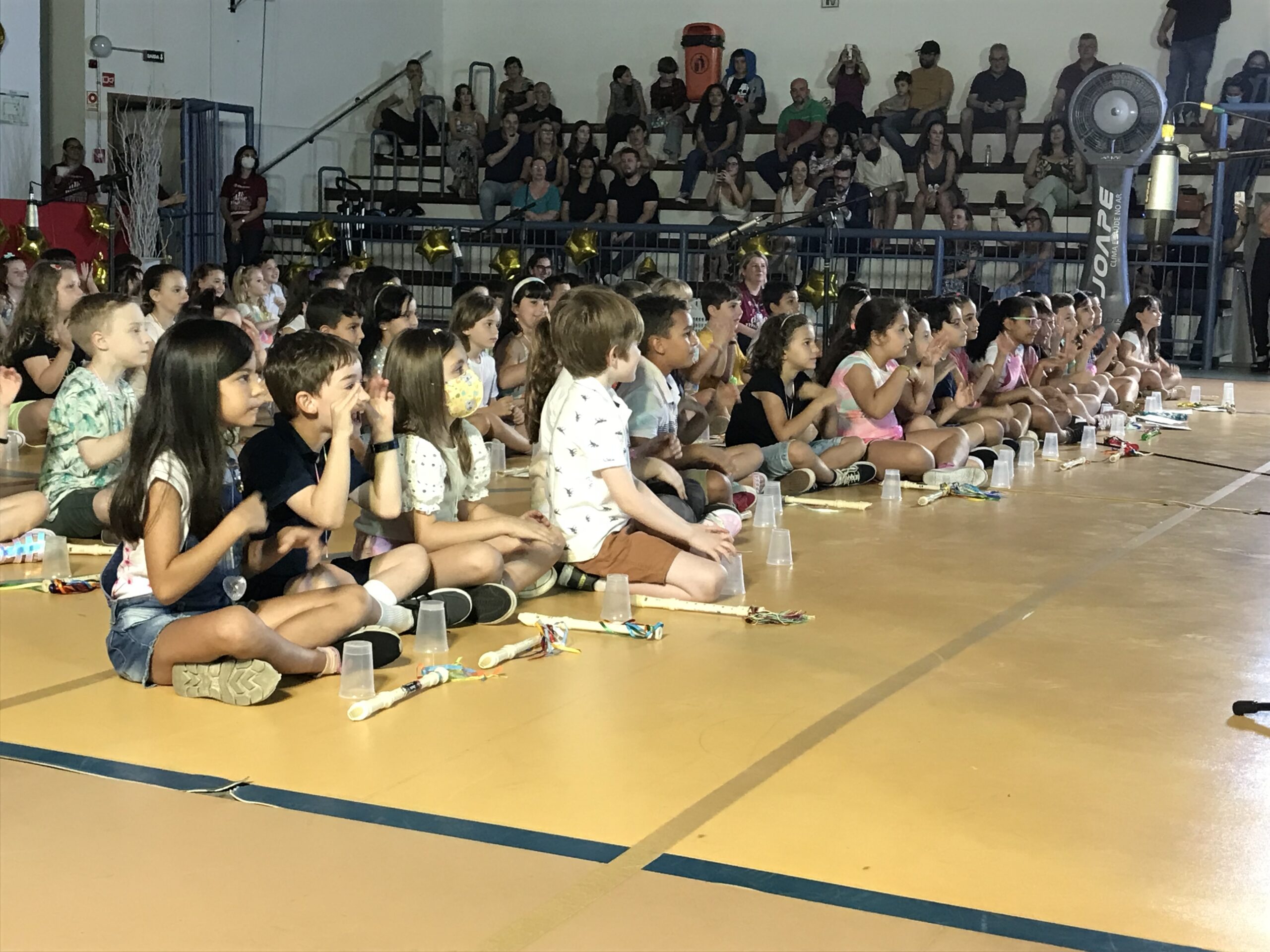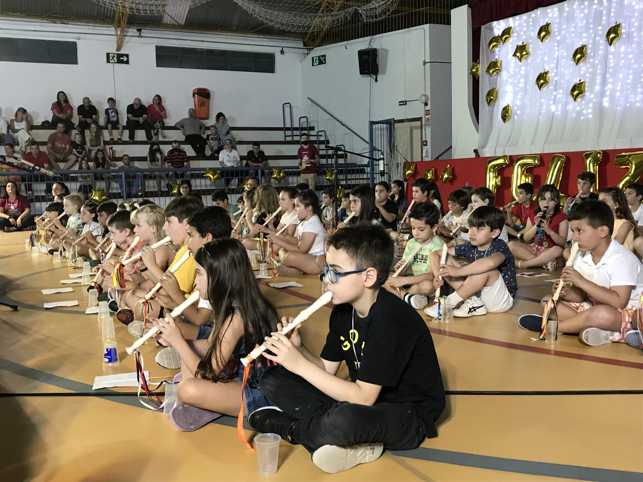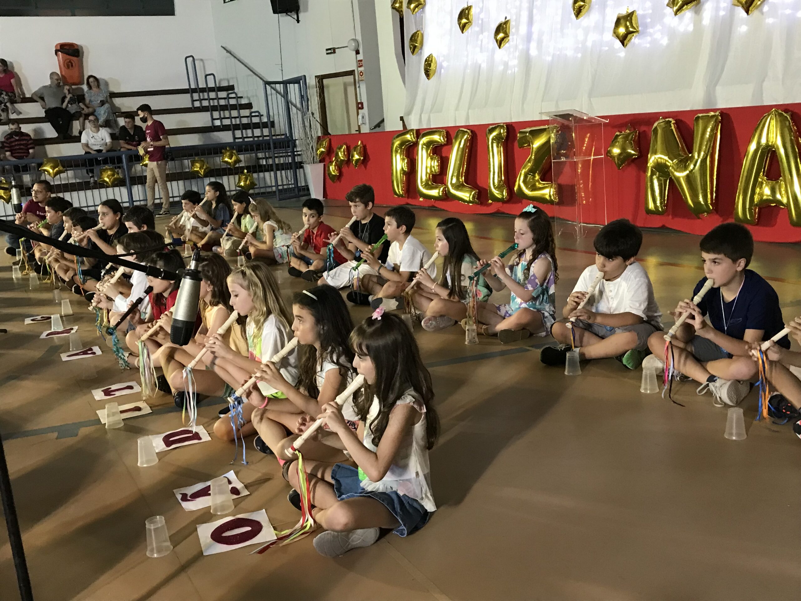 Os alunos utilizaram as suas flautas para apresentar as belas canções que ensaiaram no Colégio durante o ano.