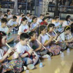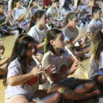 Os alunos utilizaram as suas flautas para apresentar as belas canções que ensaiaram durante o ano.