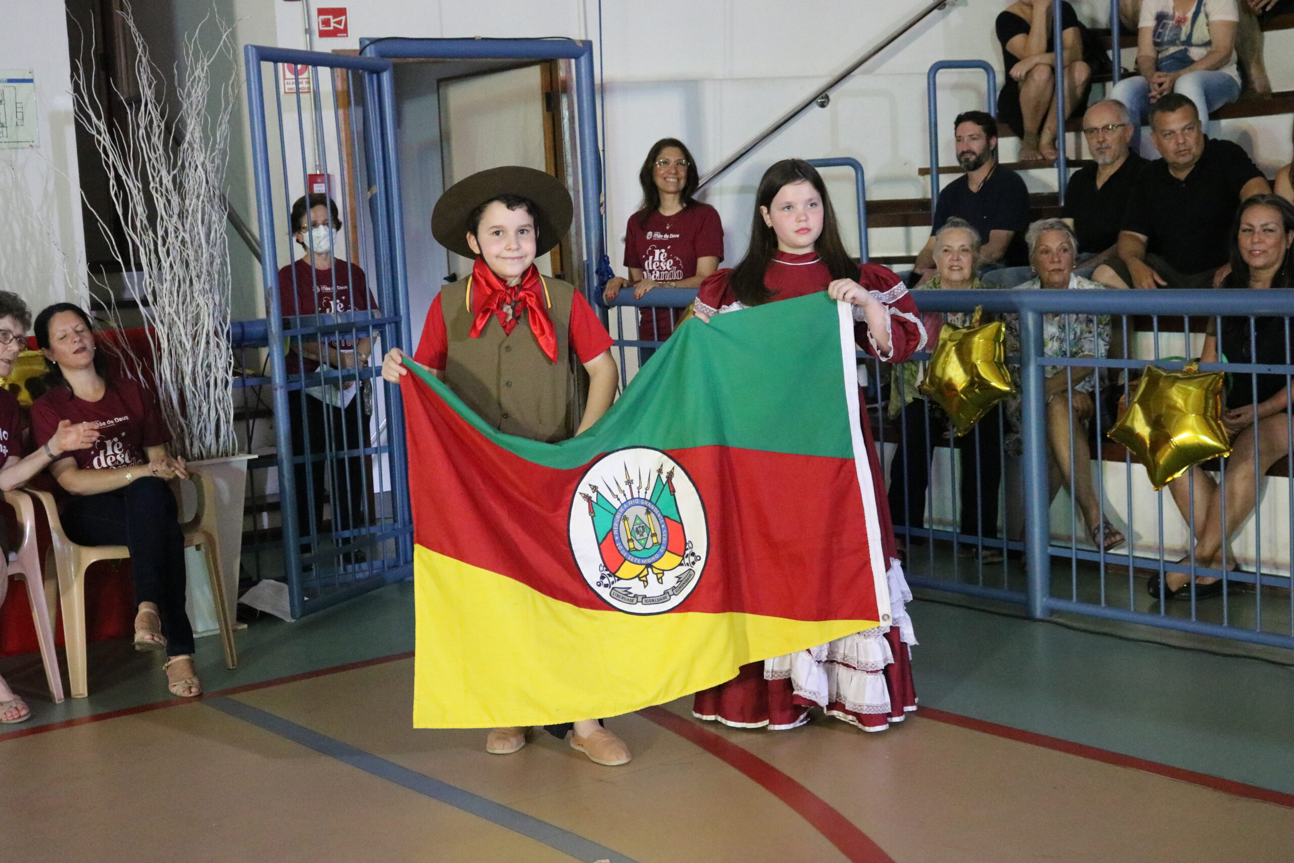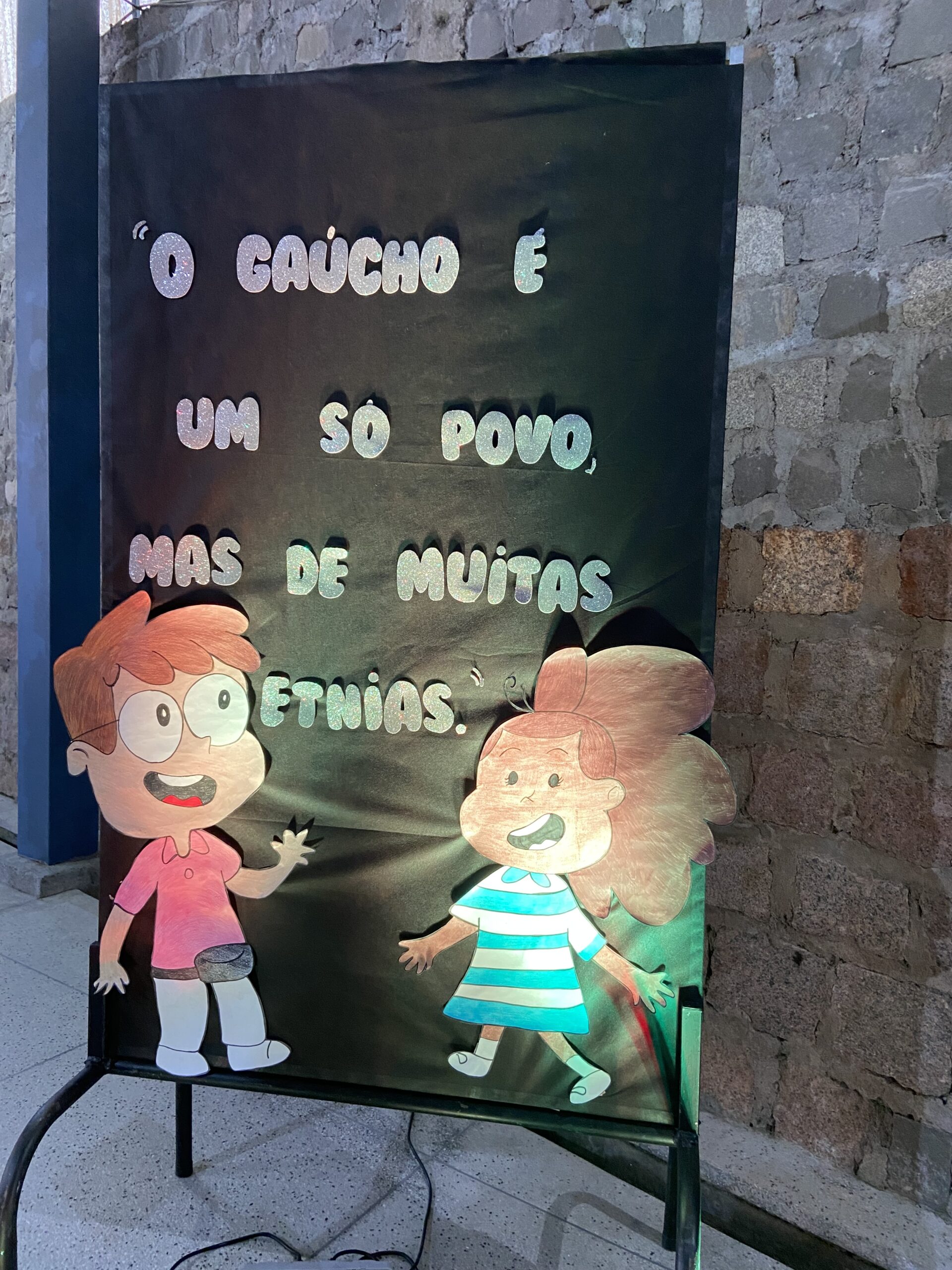A apresentação teve como base as culturas dos povos que colonizaram o Rio Grande do Sul. Teve músicas, danças típicas, interpretações e uma bela exposição representando as culturas. Tudo com muita diversão!