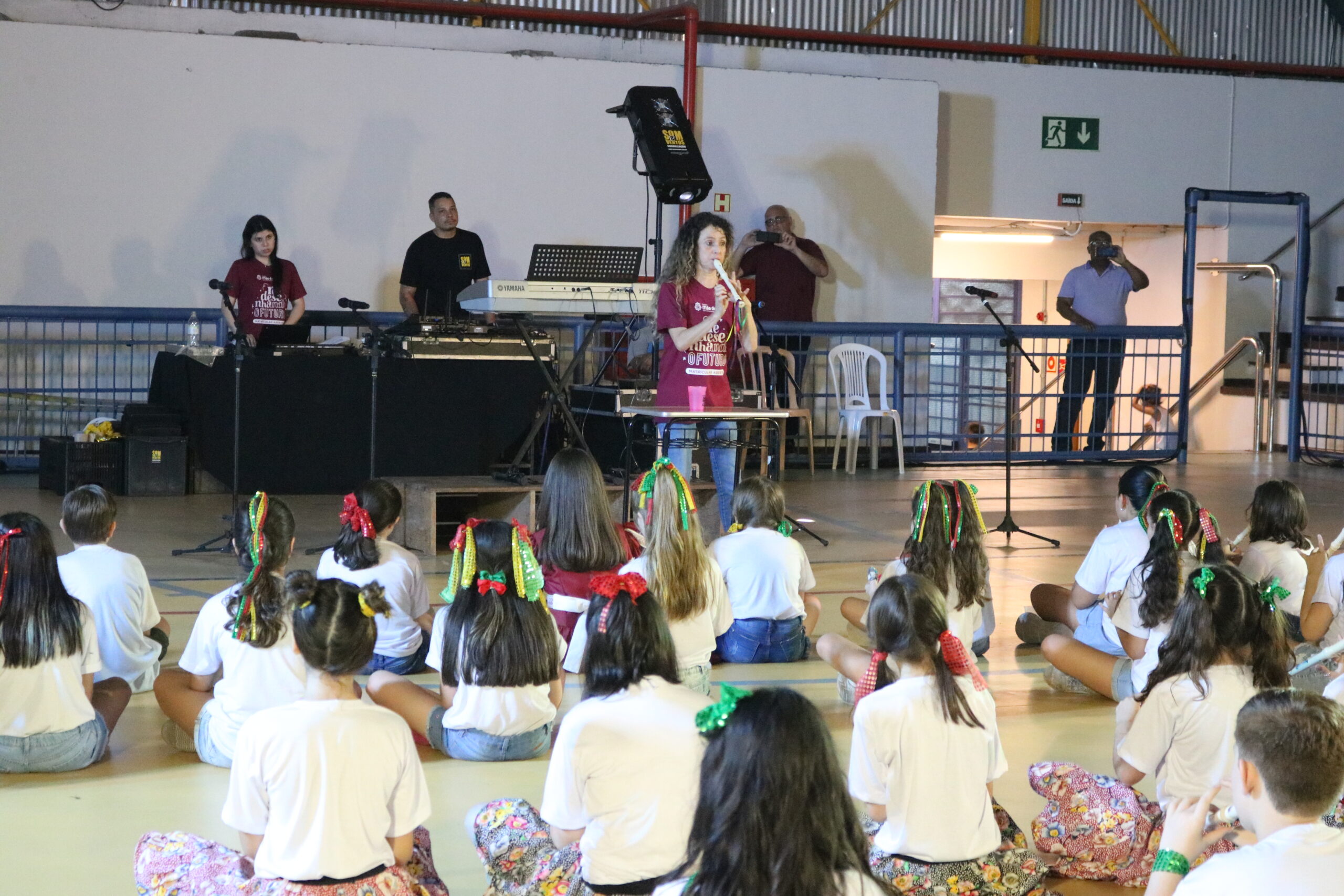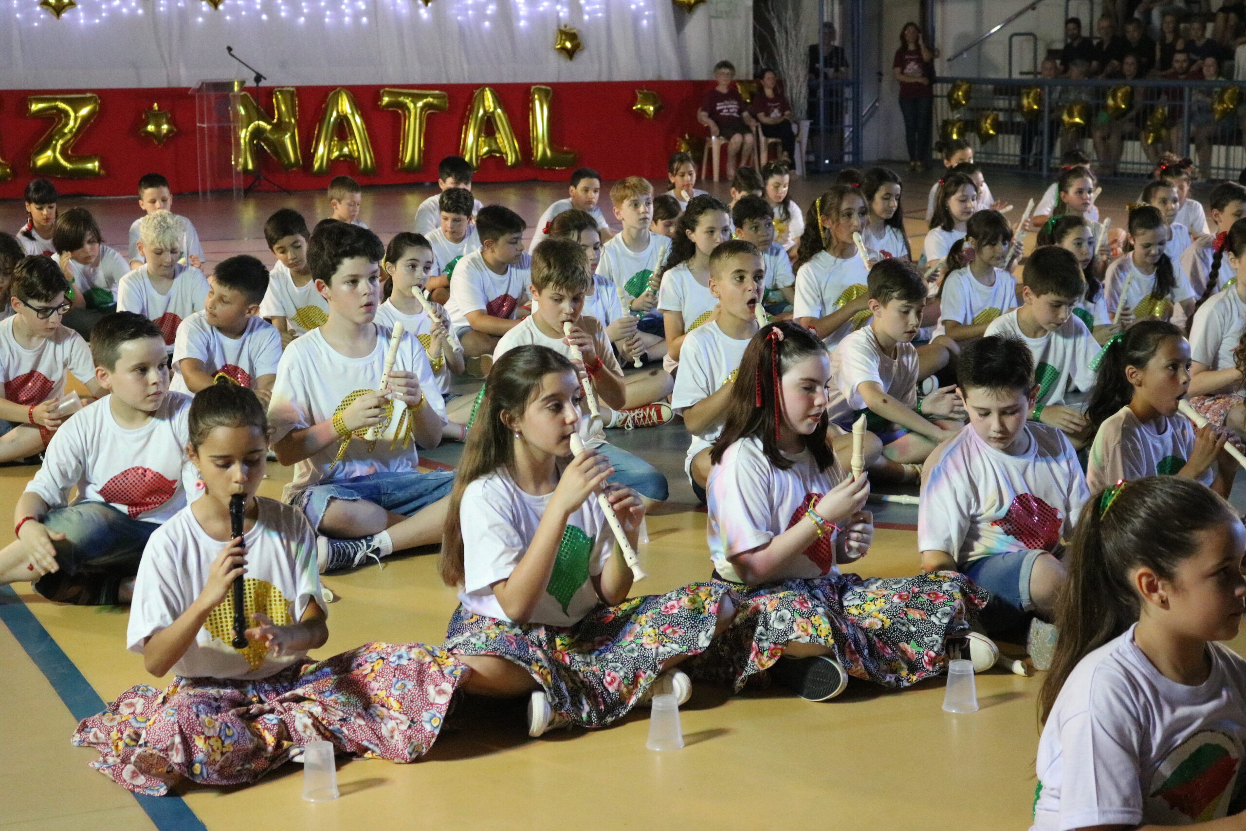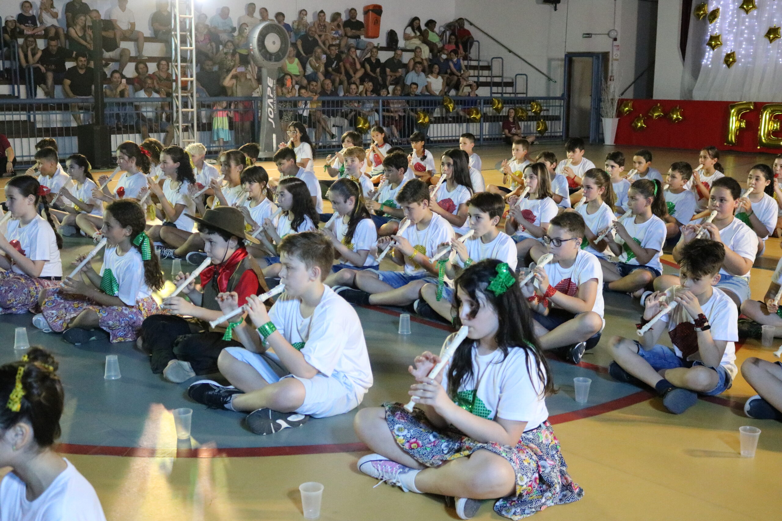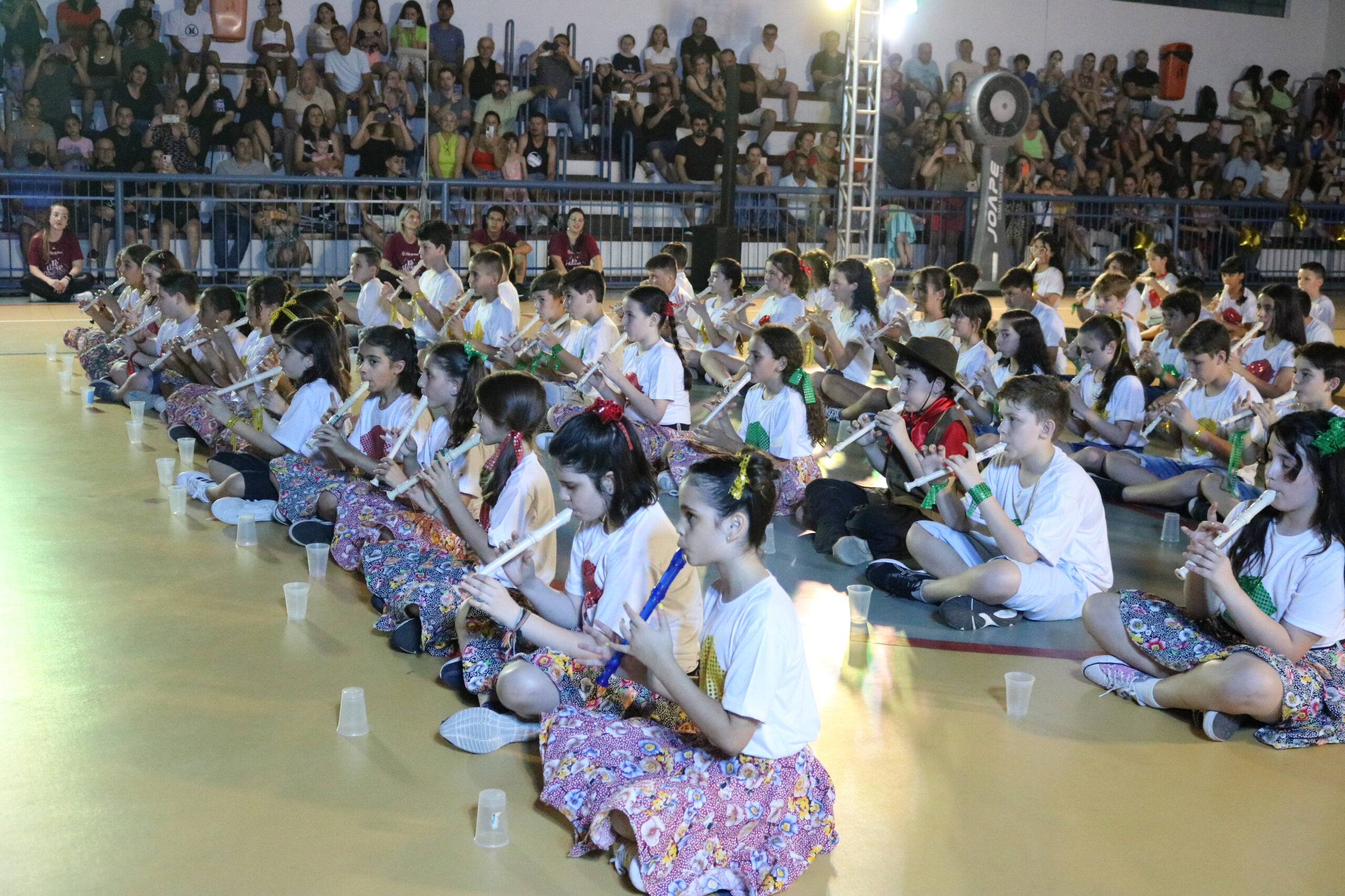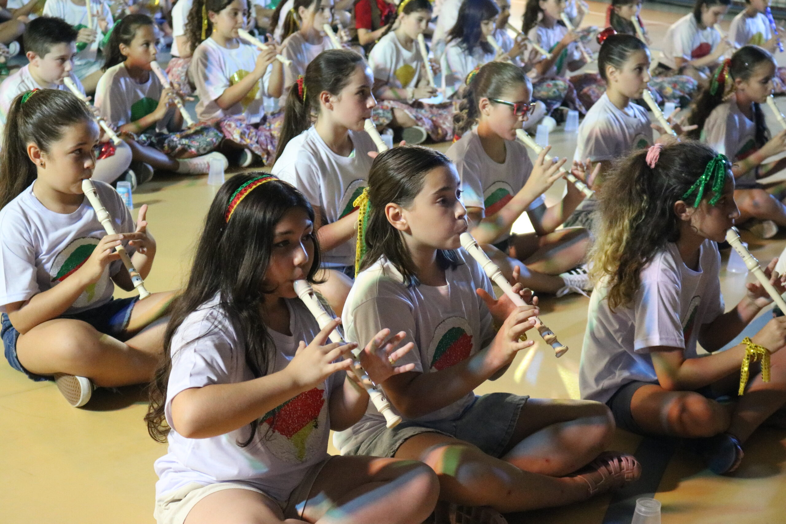 Os alunos utilizaram as suas flautas para apresentar as belas canções que ensaiaram durante o ano.