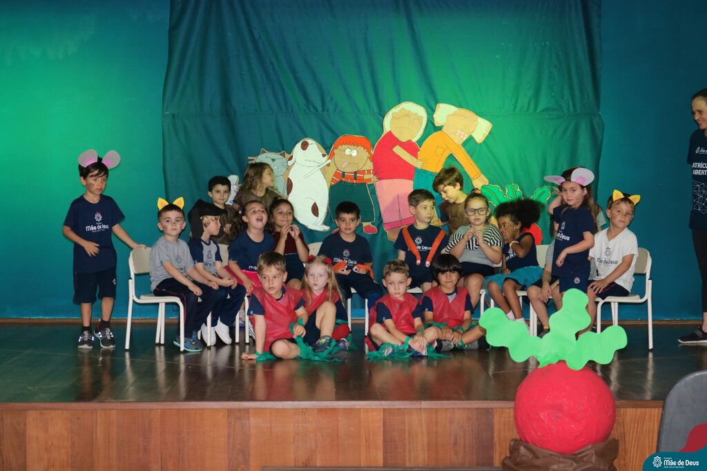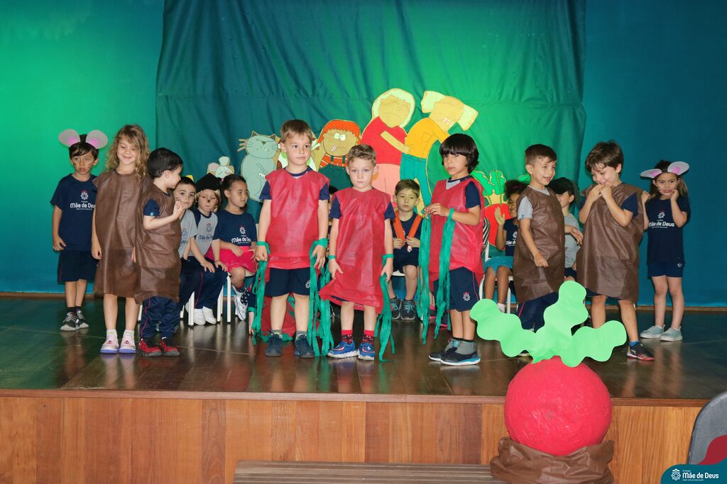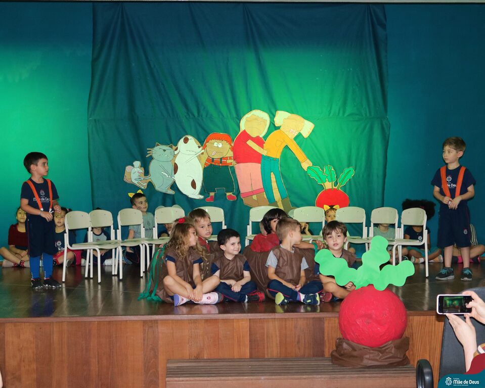 A turma do Pré1 apresentou a história sobre ‘O Grande Rabanete’, um material fascinante que exploraram ao longo do ano na Educação Infantil.