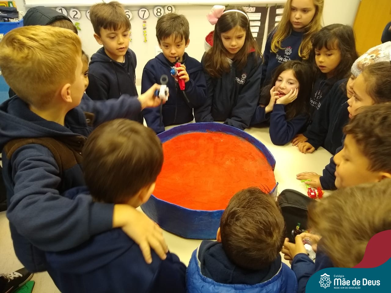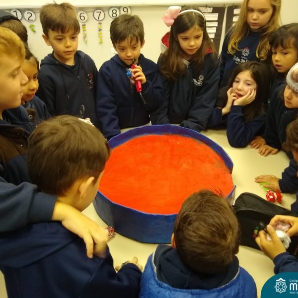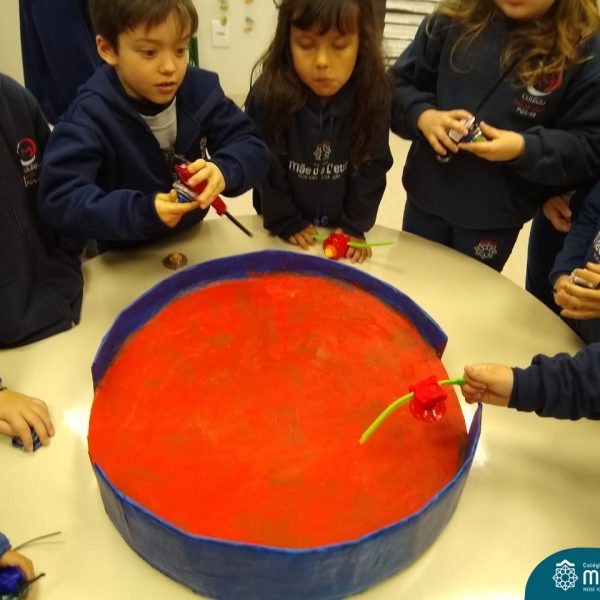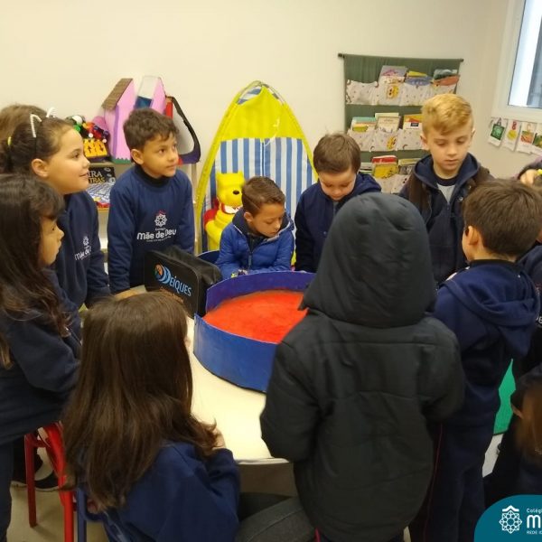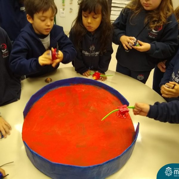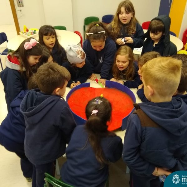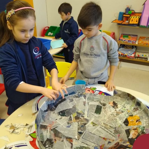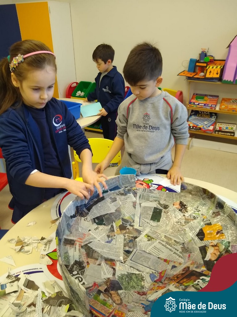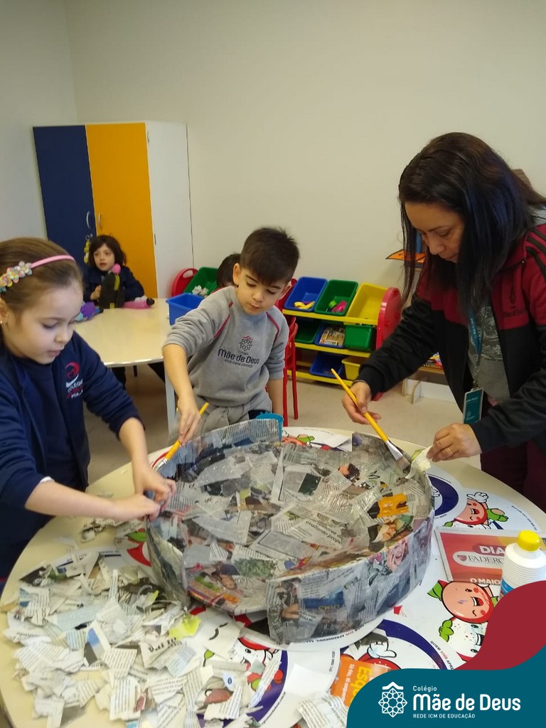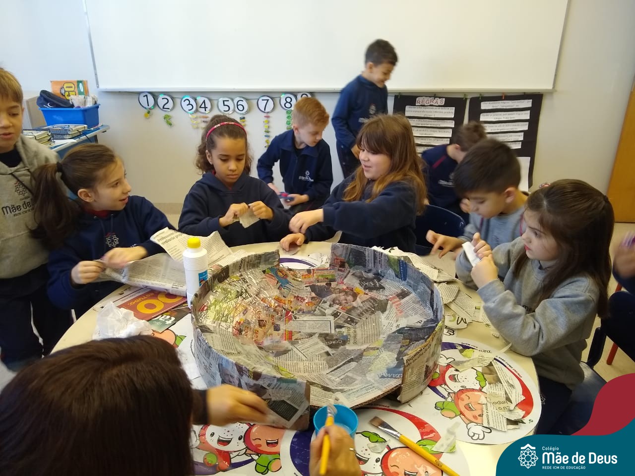 Os grupos 2 e 3 do TuiMD confeccionaram uma ¨Arena de beyblade.¨ Após terminar o brinquedo houve a inauguração. Relembraram sobre o respeito de cada um na hora de batalhar com seus colegas e que a reciclagem e a reutilização de objetos são muito importantes, por isso, é essencial um consumo consciente.