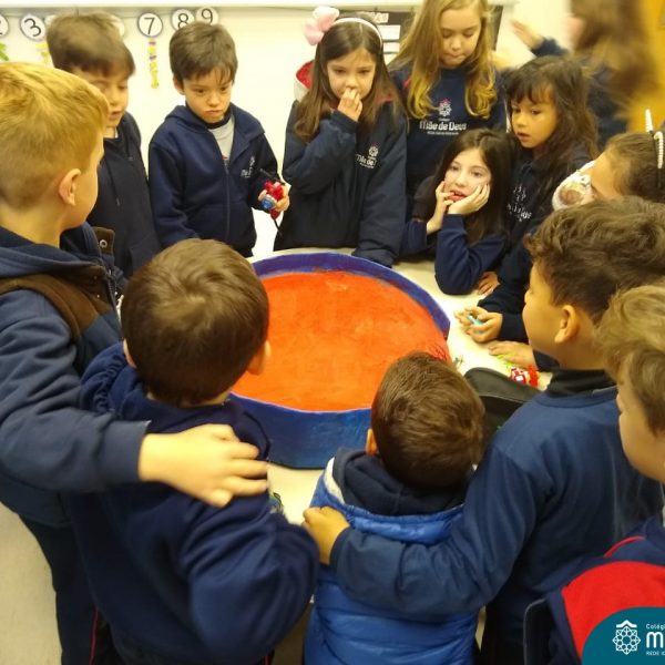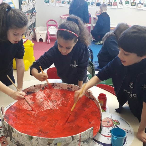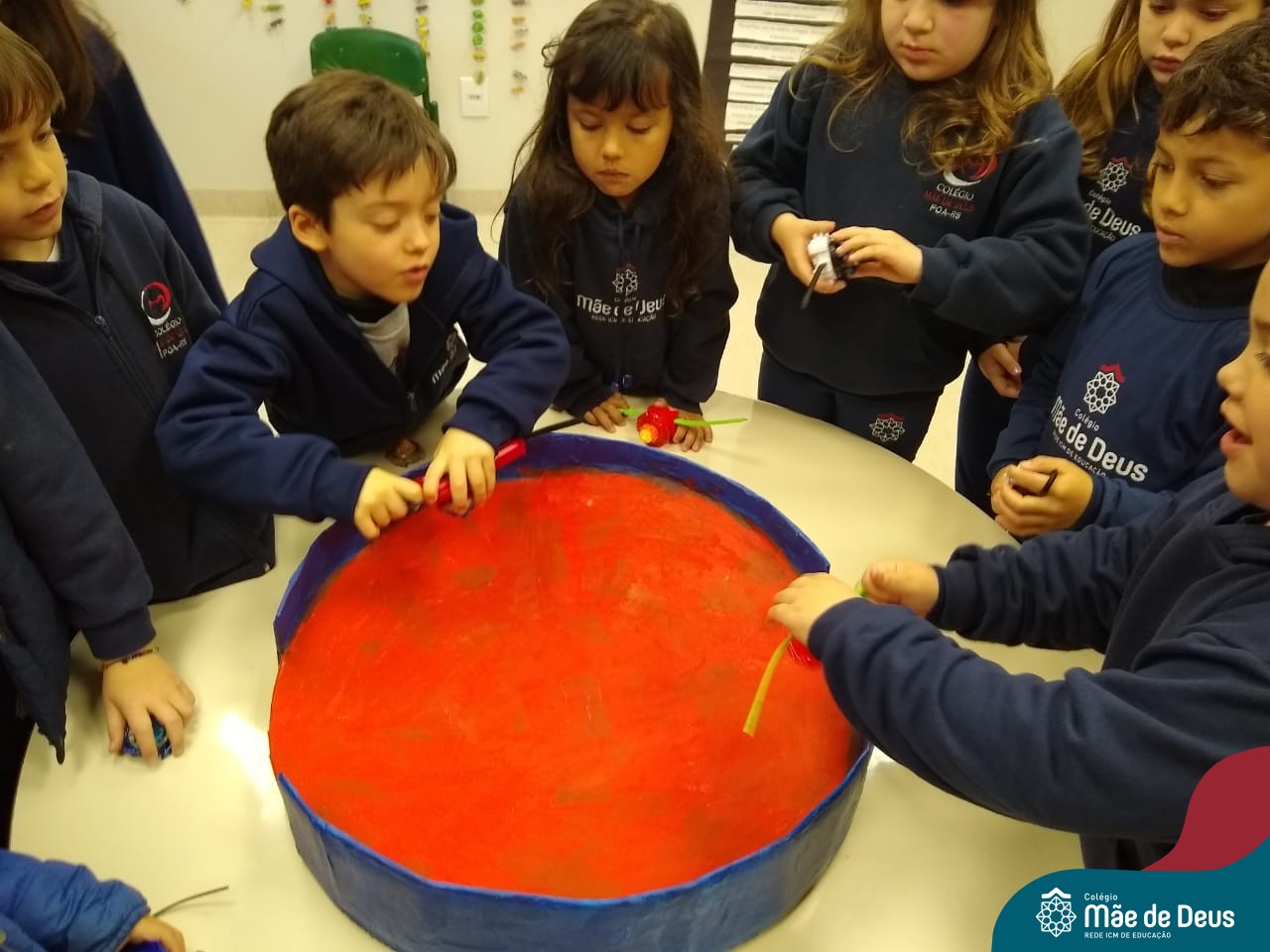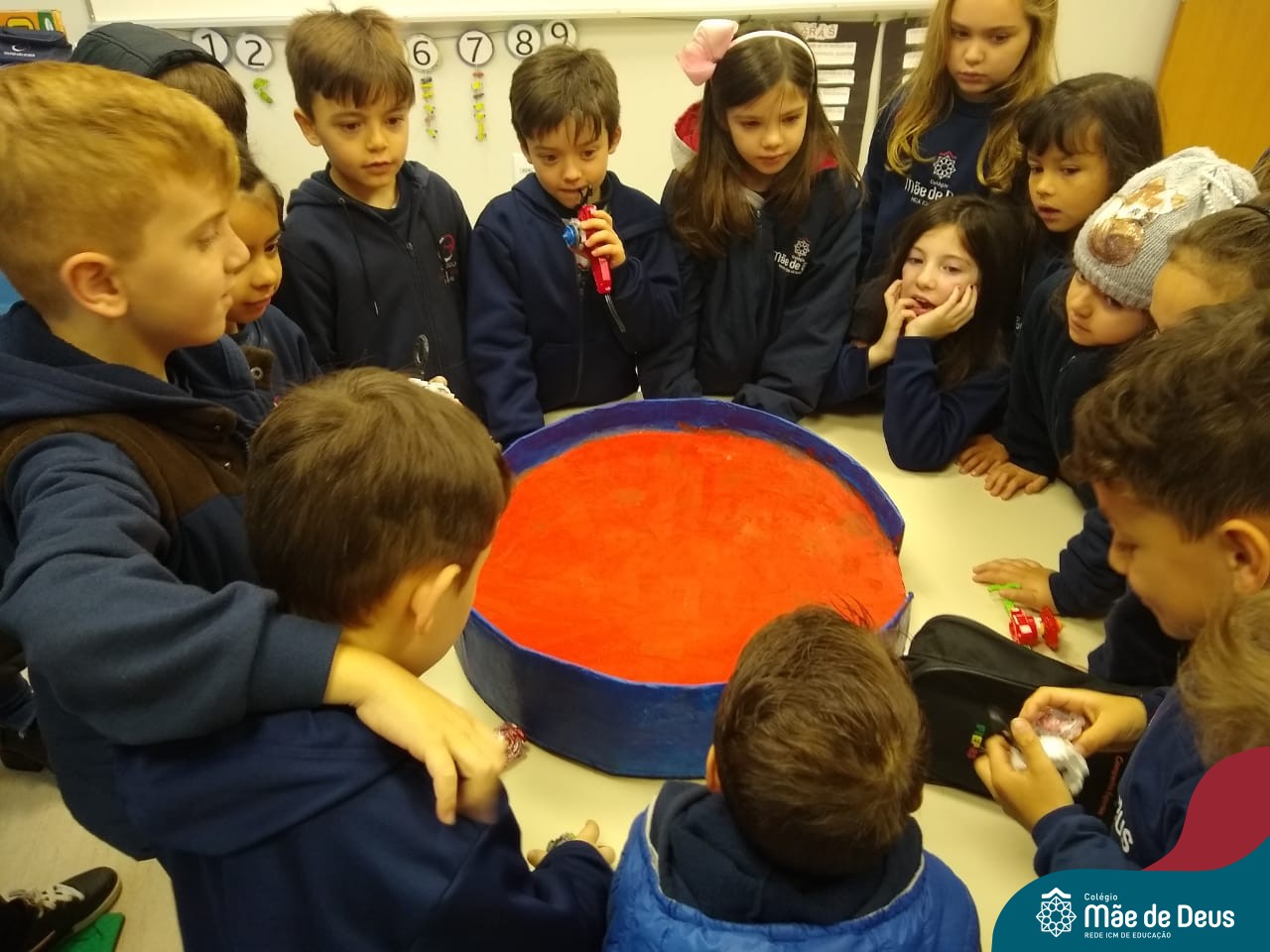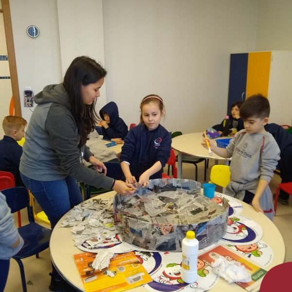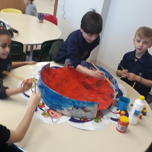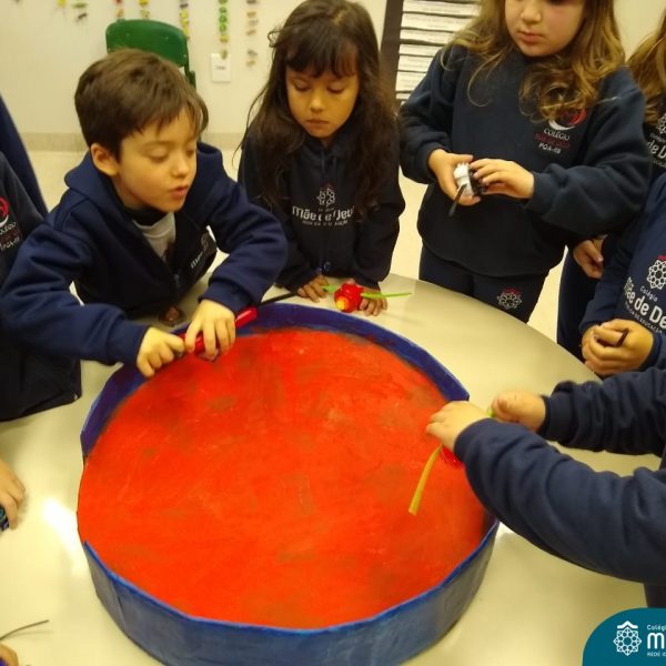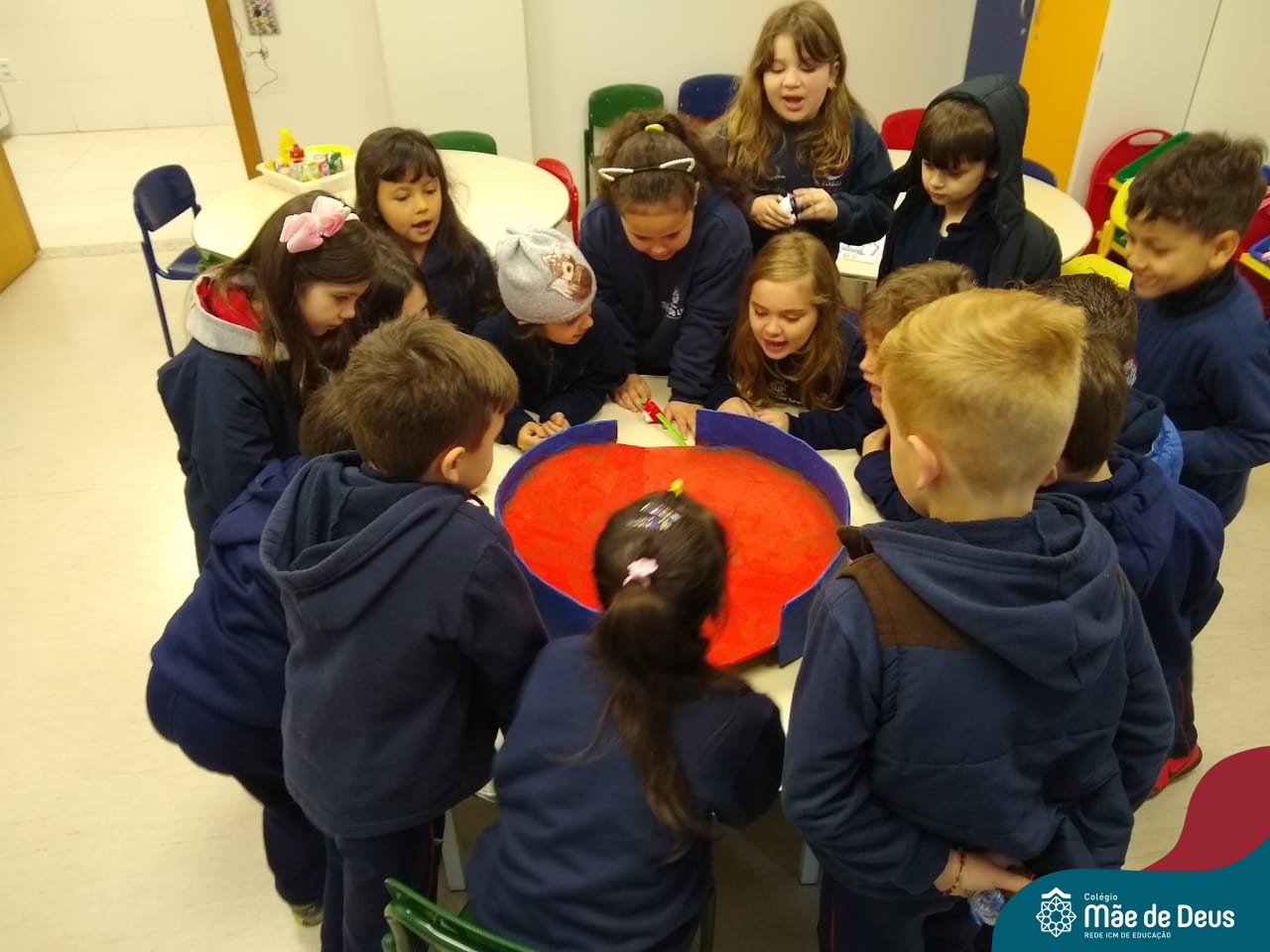 Os grupos 2 e 3 do TuiMD confeccionaram uma ¨Arena de beyblade.¨ Após terminar o brinquedo houve a inauguração. Relembraram sobre o respeito de cada um na hora de batalhar com seus colegas e que a reciclagem e a reutilização de objetos são muito importantes, por isso, é essencial um consumo consciente.