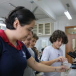 Os alunos do 7º Ano participaram de uma aula prática, no laboratório, com o objetivo de aplicar os conhecimentos adquiridos sobre bactérias e fungos. Durante essa atividade, eles tiveram a oportunidade de observar o processo de fermentação realizado por fungos e cultivar bactérias presentes no ambiente.
