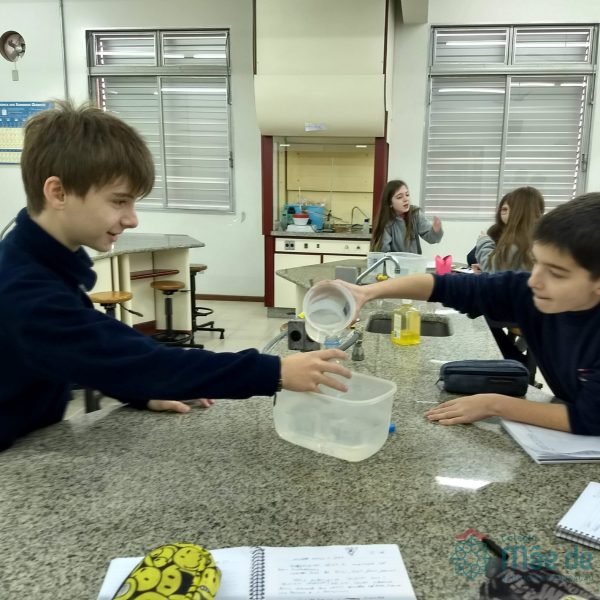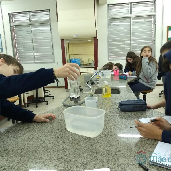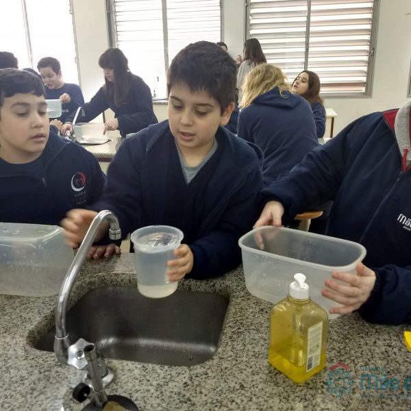 No mês de agosto, os alunos do 6º ano tiveram a oportunidade de colocar em prática o estudo referente aos conteúdos trabalhados em sala de aula: Água e Atmosfera. As atividades e experiências de Tensão Superficial e Pressão Atmosférica, foram realizadas no laboratório de Física e Química pela professora Claudia Silva. Os estudantes realizaram os desafios com grande interesse e curiosidade.