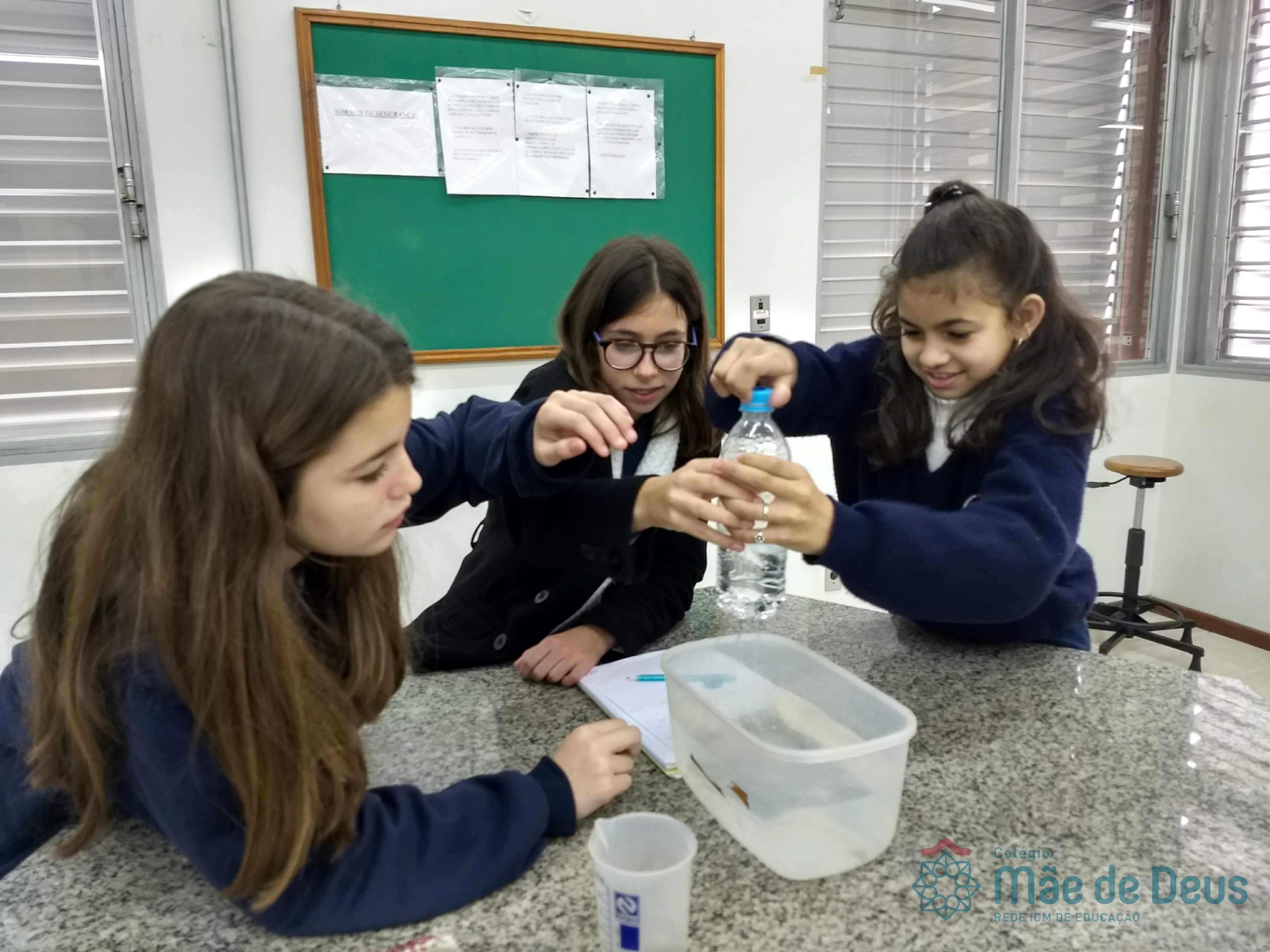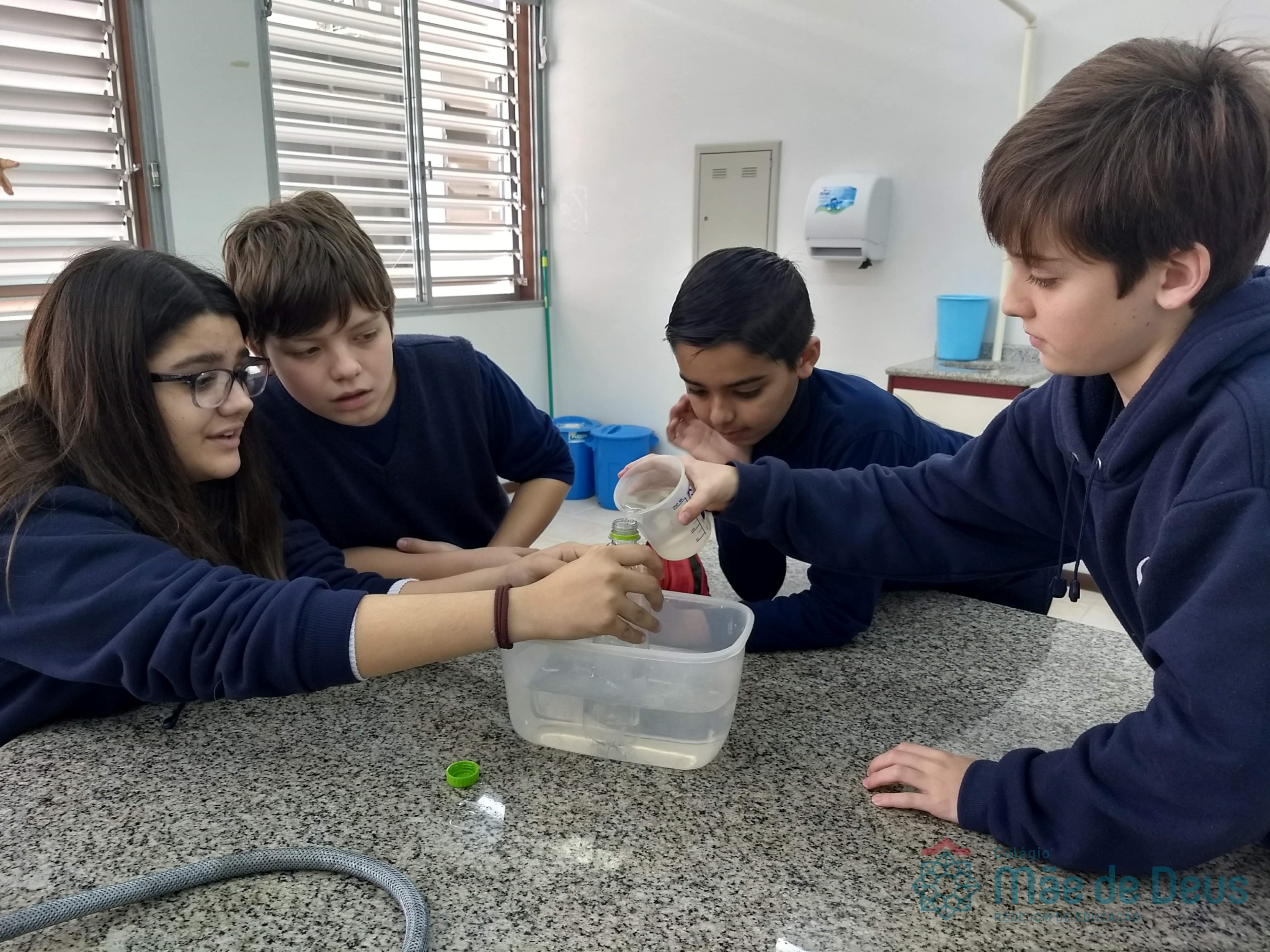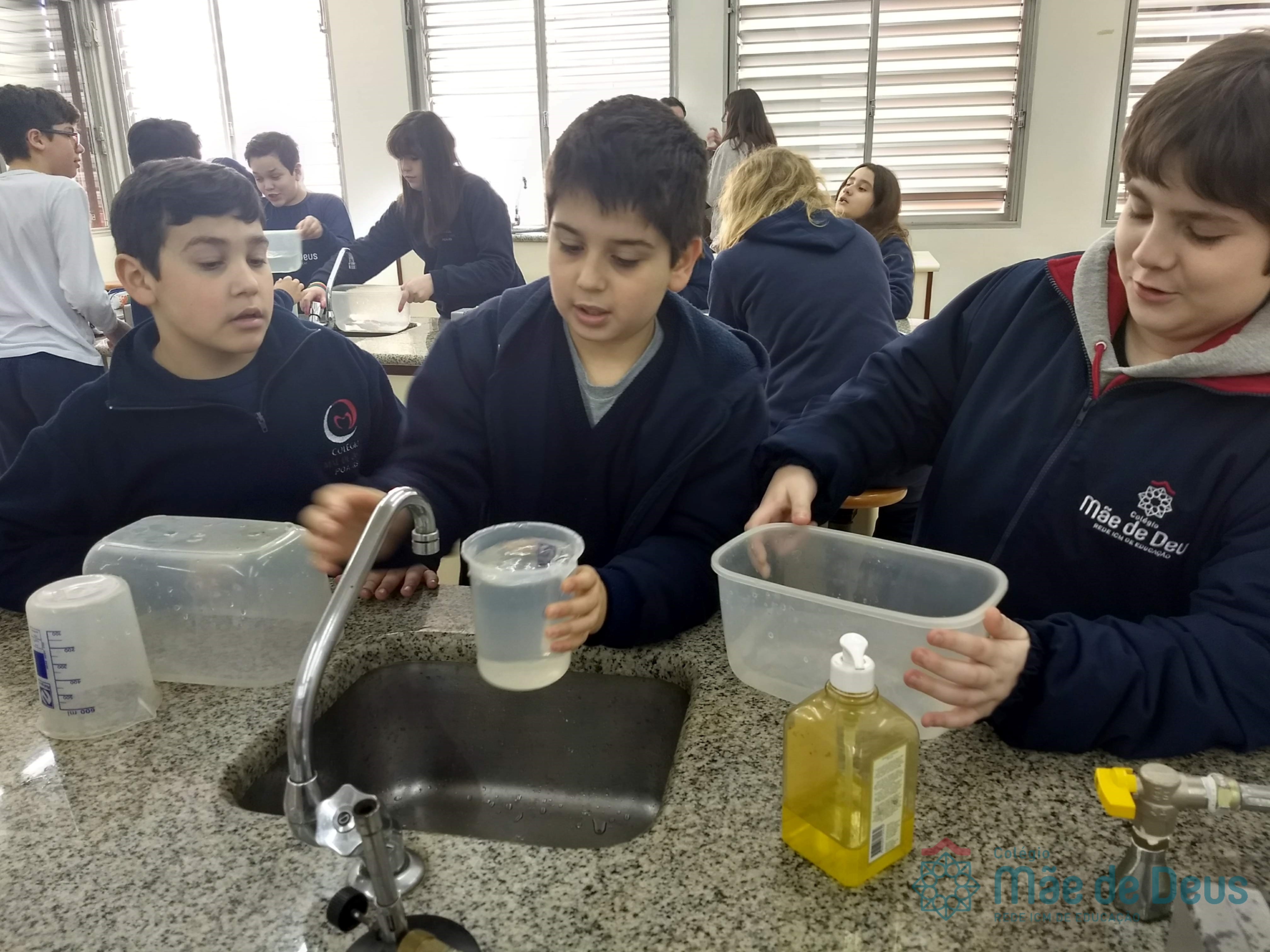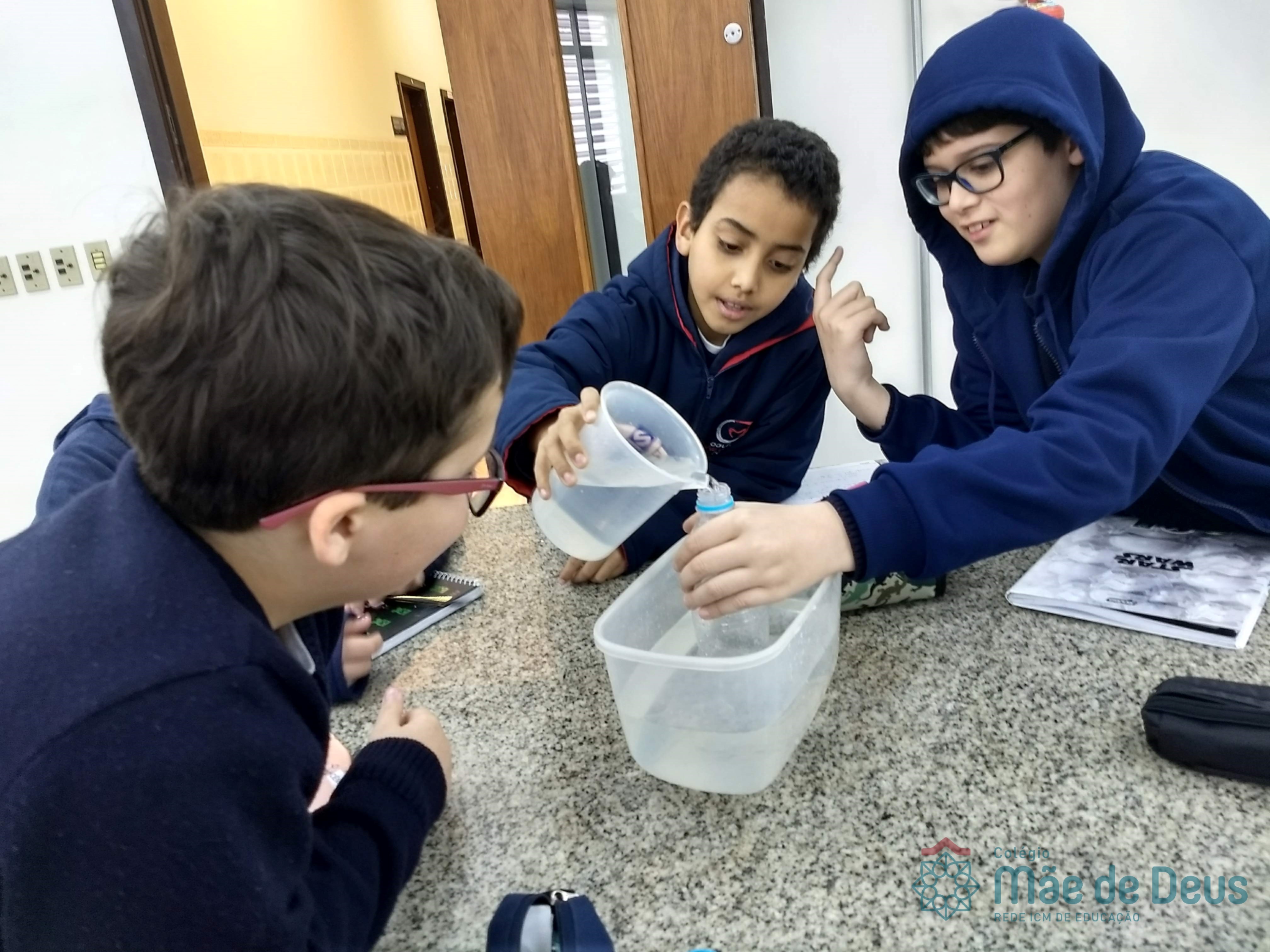 No mês de agosto, os alunos do 6º ano tiveram a oportunidade de colocar em prática o estudo referente aos conteúdos trabalhados em sala de aula: Água e Atmosfera. As atividades e experiências de Tensão Superficial e Pressão Atmosférica, foram realizadas no laboratório de Física e Química pela professora Claudia Silva. Os estudantes realizaram os desafios com grande interesse e curiosidade.