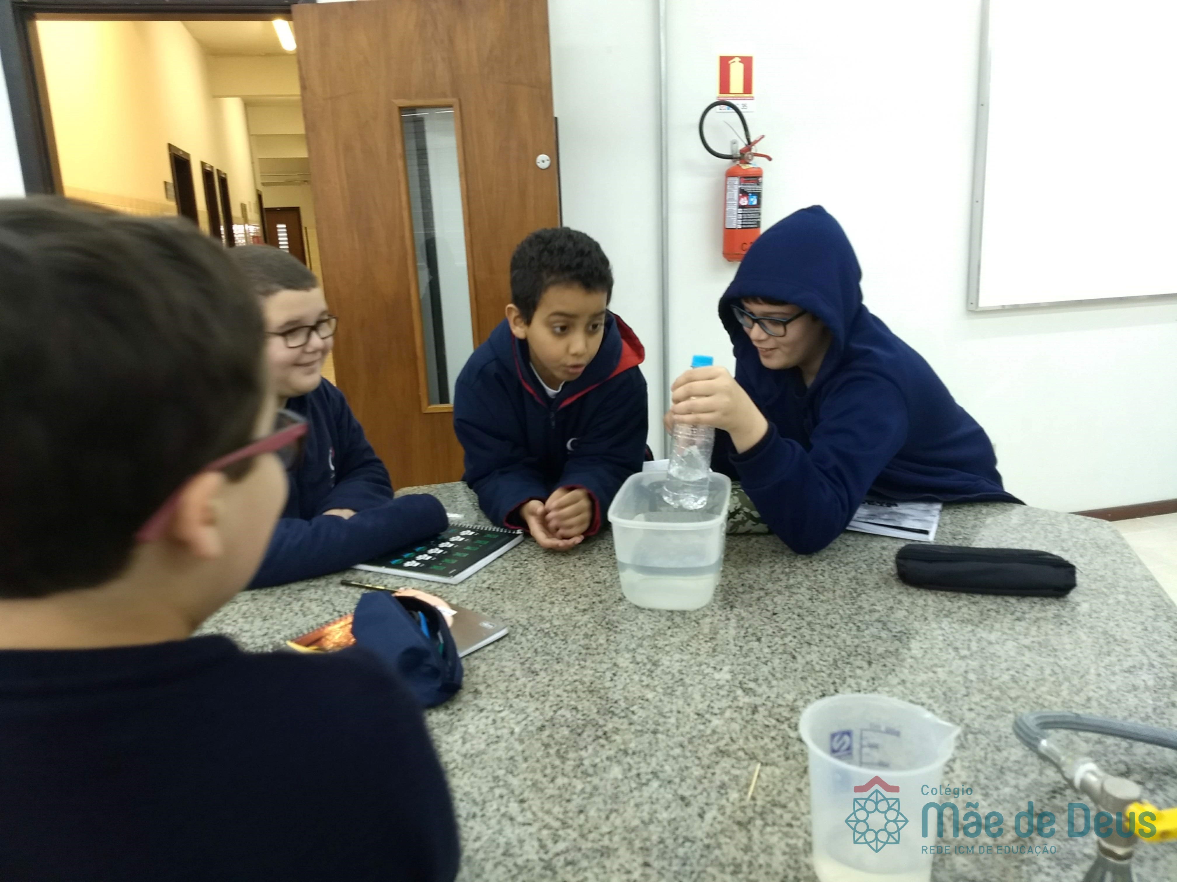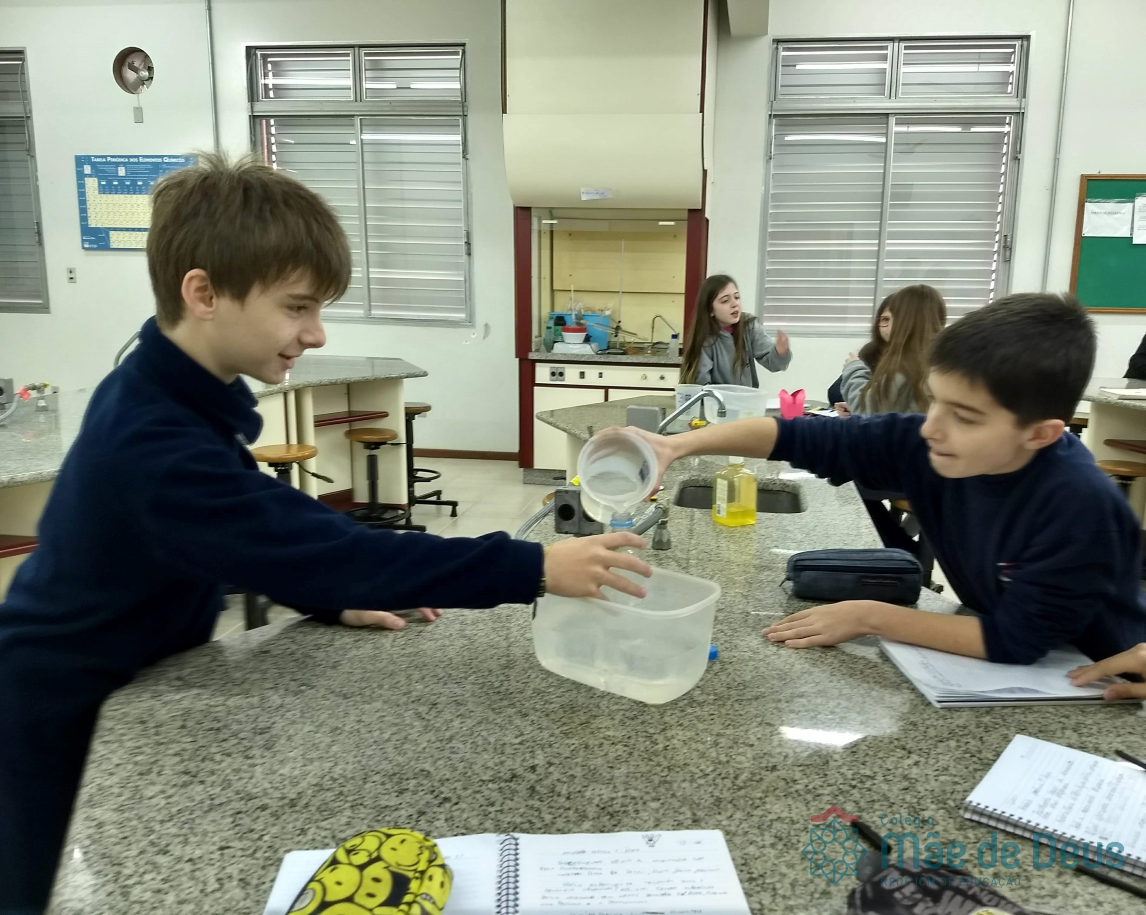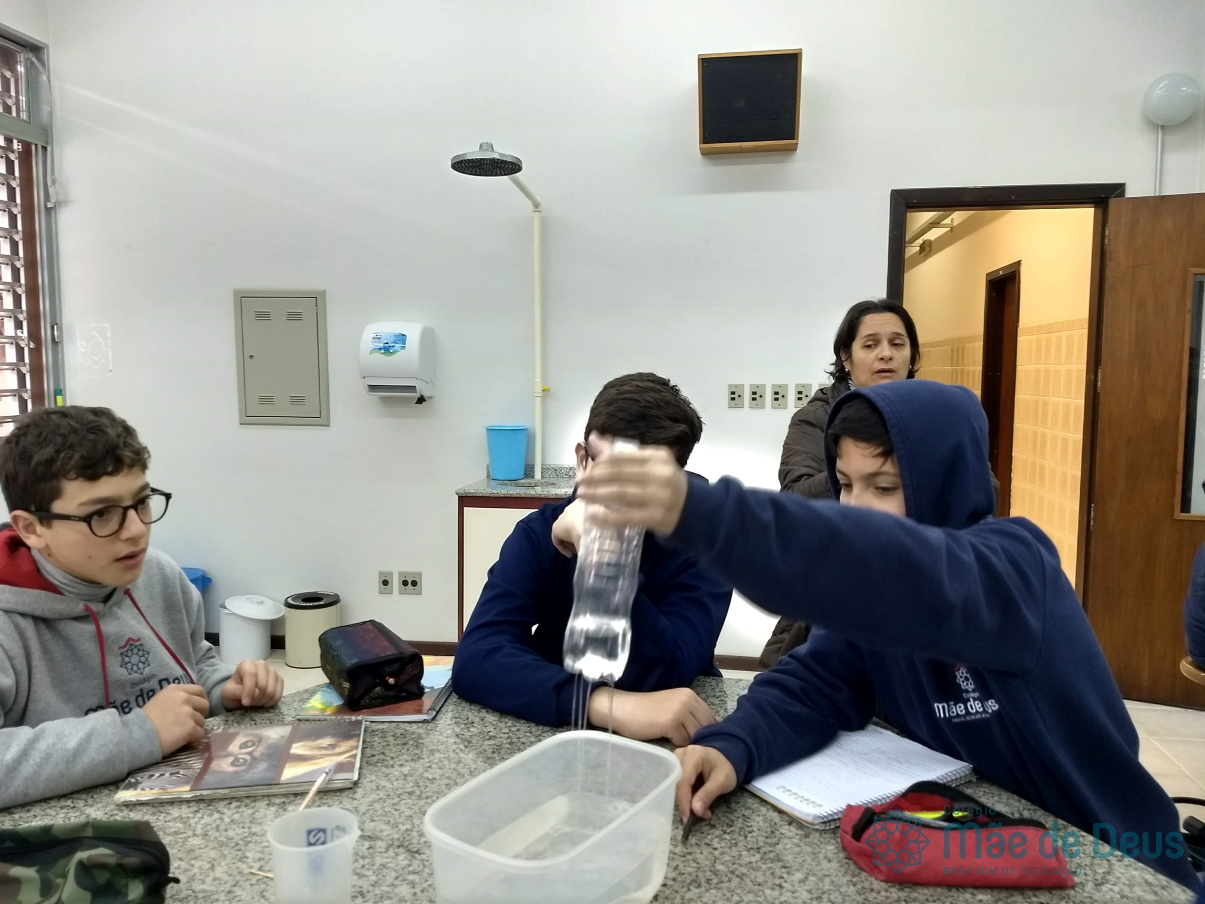 No mês de agosto, os alunos do 6º ano tiveram a oportunidade de colocar em prática o estudo referente aos conteúdos trabalhados em sala de aula: Água e Atmosfera. As atividades e experiências de Tensão Superficial e Pressão Atmosférica, foram realizadas no laboratório de Física e Química pela professora Claudia Silva. Os estudantes realizaram os desafios com grande interesse e curiosidade.