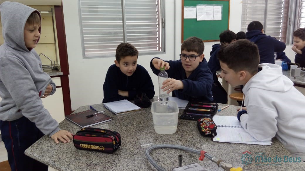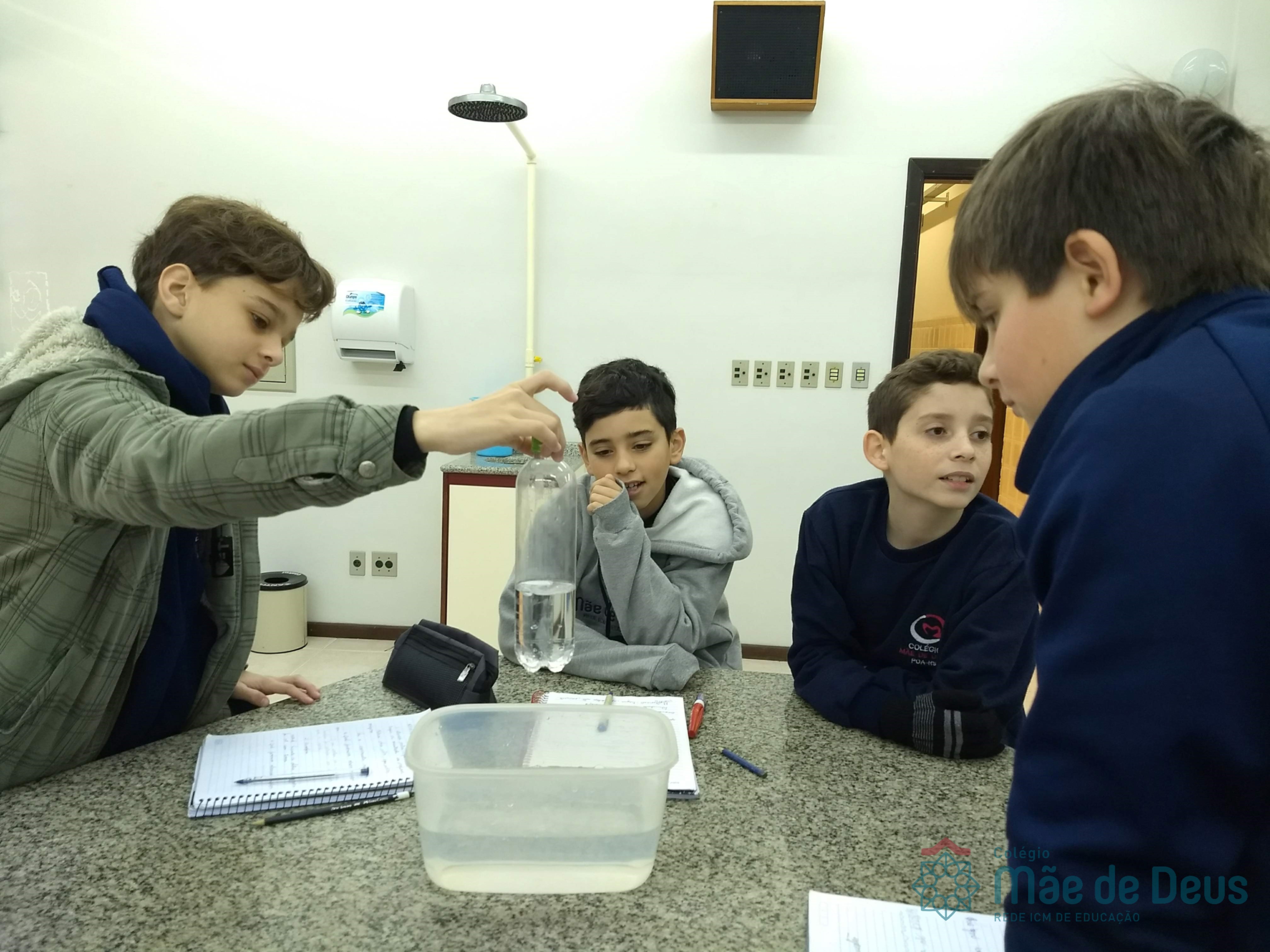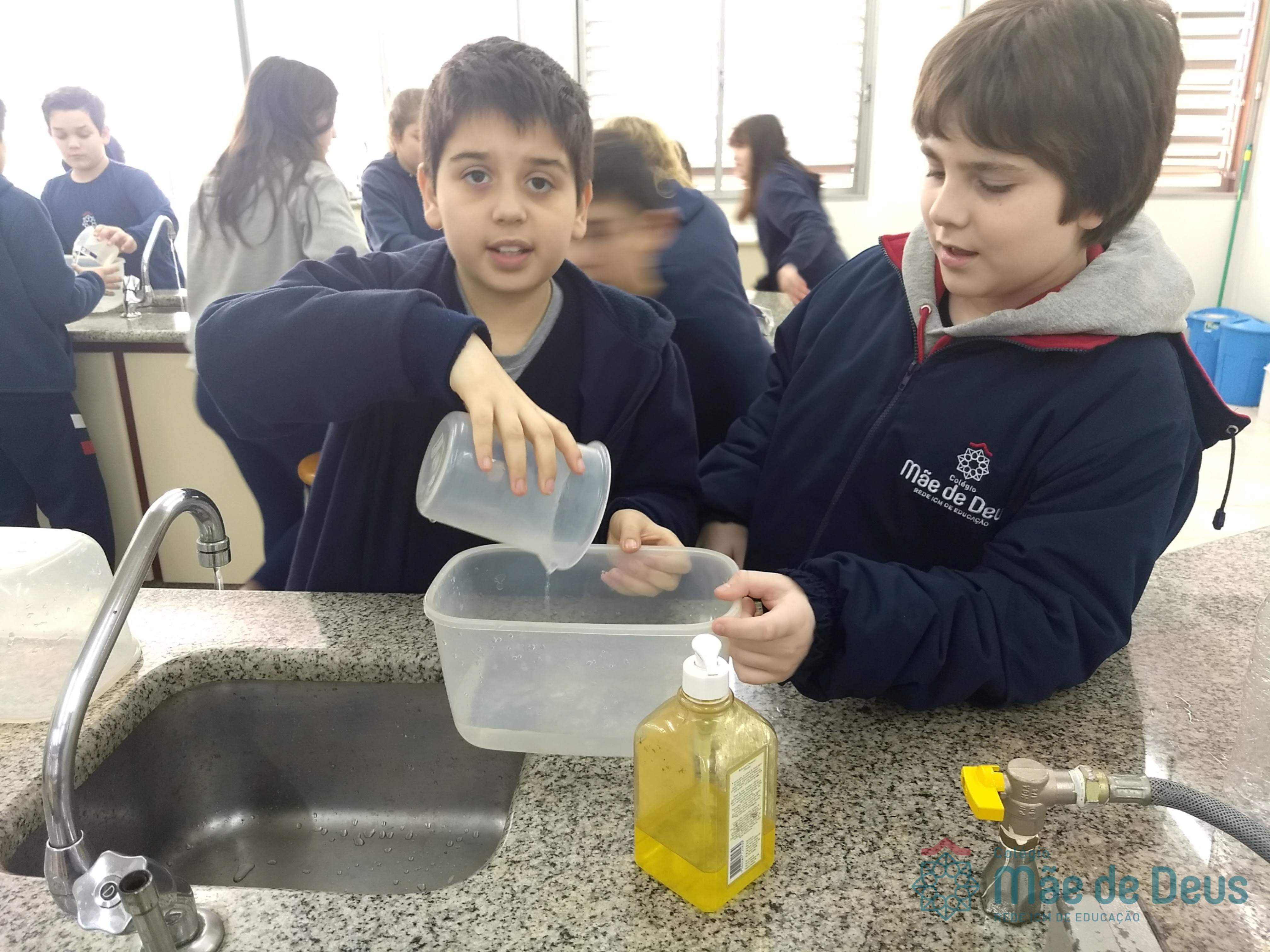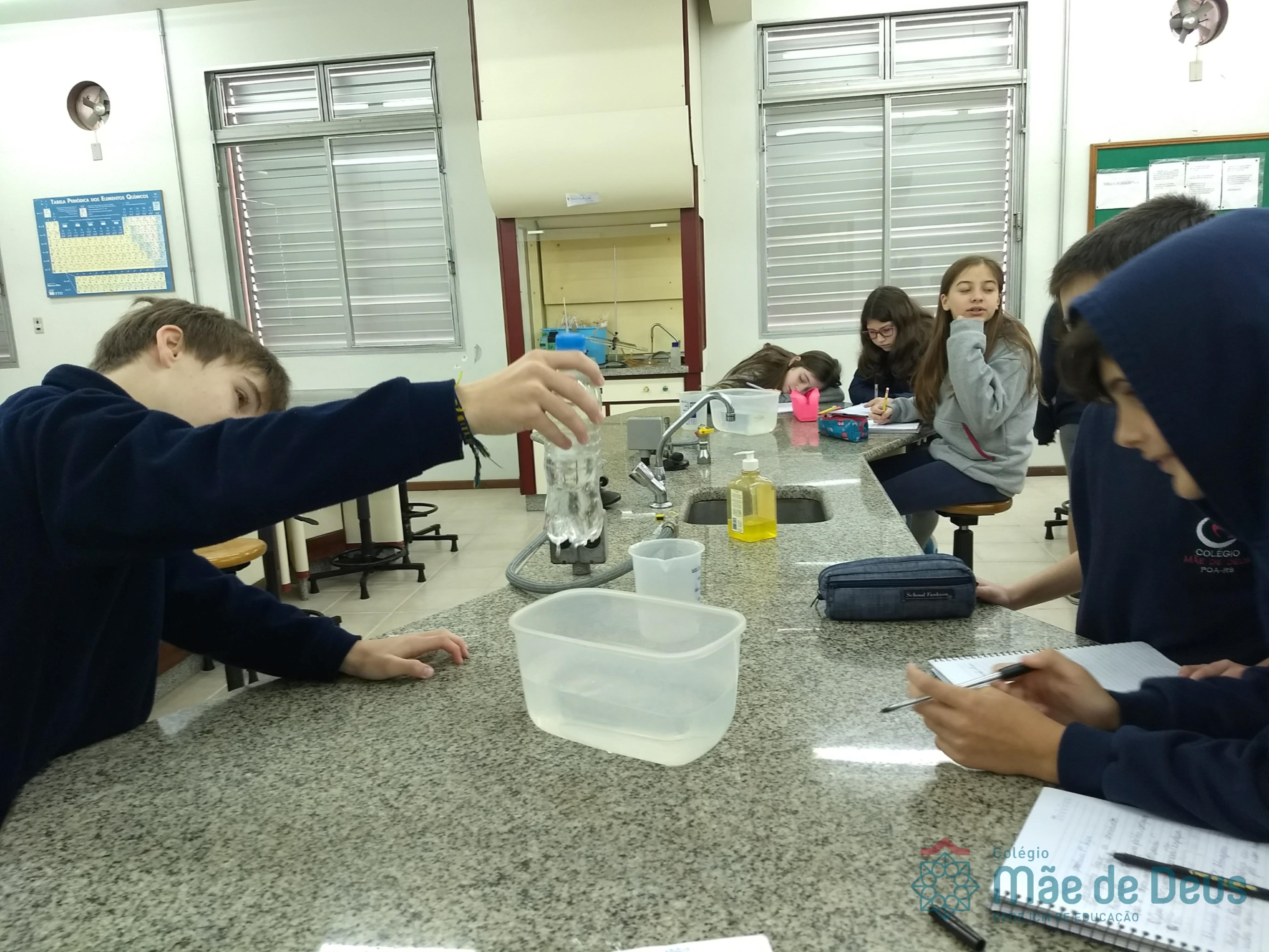 No mês de agosto, os alunos do 6º ano tiveram a oportunidade de colocar em prática o estudo referente aos conteúdos trabalhados em sala de aula: Água e Atmosfera. As atividades e experiências de Tensão Superficial e Pressão Atmosférica, foram realizadas no laboratório de Física e Química pela professora Claudia Silva. Os estudantes realizaram os desafios com grande interesse e curiosidade.