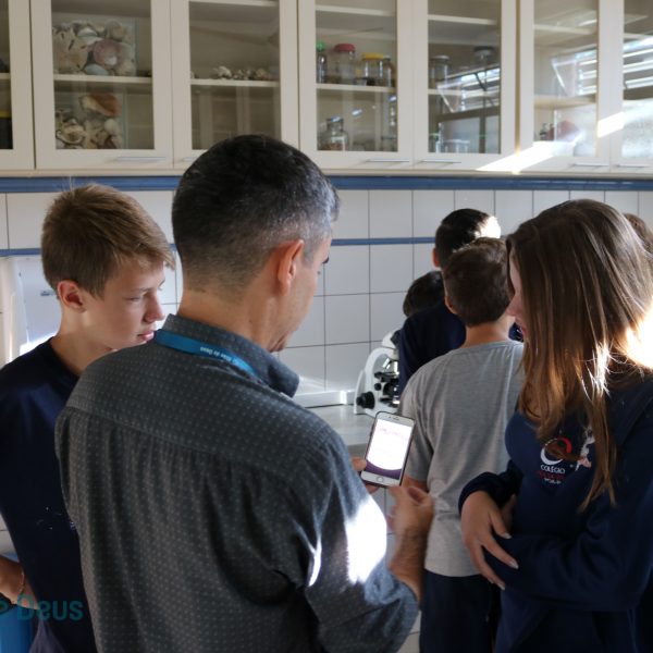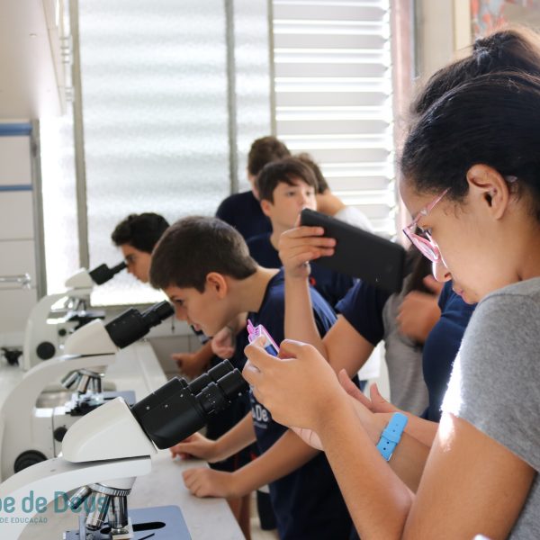 Os alunos ainda tiveram a oportunidade de fotografar as lâminas, através das lentes do microscópio, levando a imagem para a sua galeria de fotos.