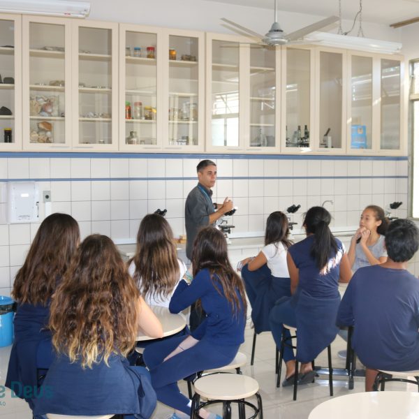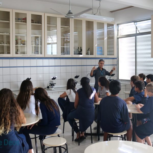 Para inaugurar o uso dos aparelhos, os estudantes do 7º ano, observaram células animais (mucosa bucal e pele) e vegetais (raiz de cebola) e estruturas adaptativas (aparelho bucal do mosquito) de algumas espécies em diferentes aumentos (40x, 100x e 400x), nas aulas de Ciências, sob a orientação do professor Paulo Prates. Esta proposta metodológica prática, tem por objetivo reforçar o conteúdo da teoria e garantir que o estudante possa aprender de diferentes formas.