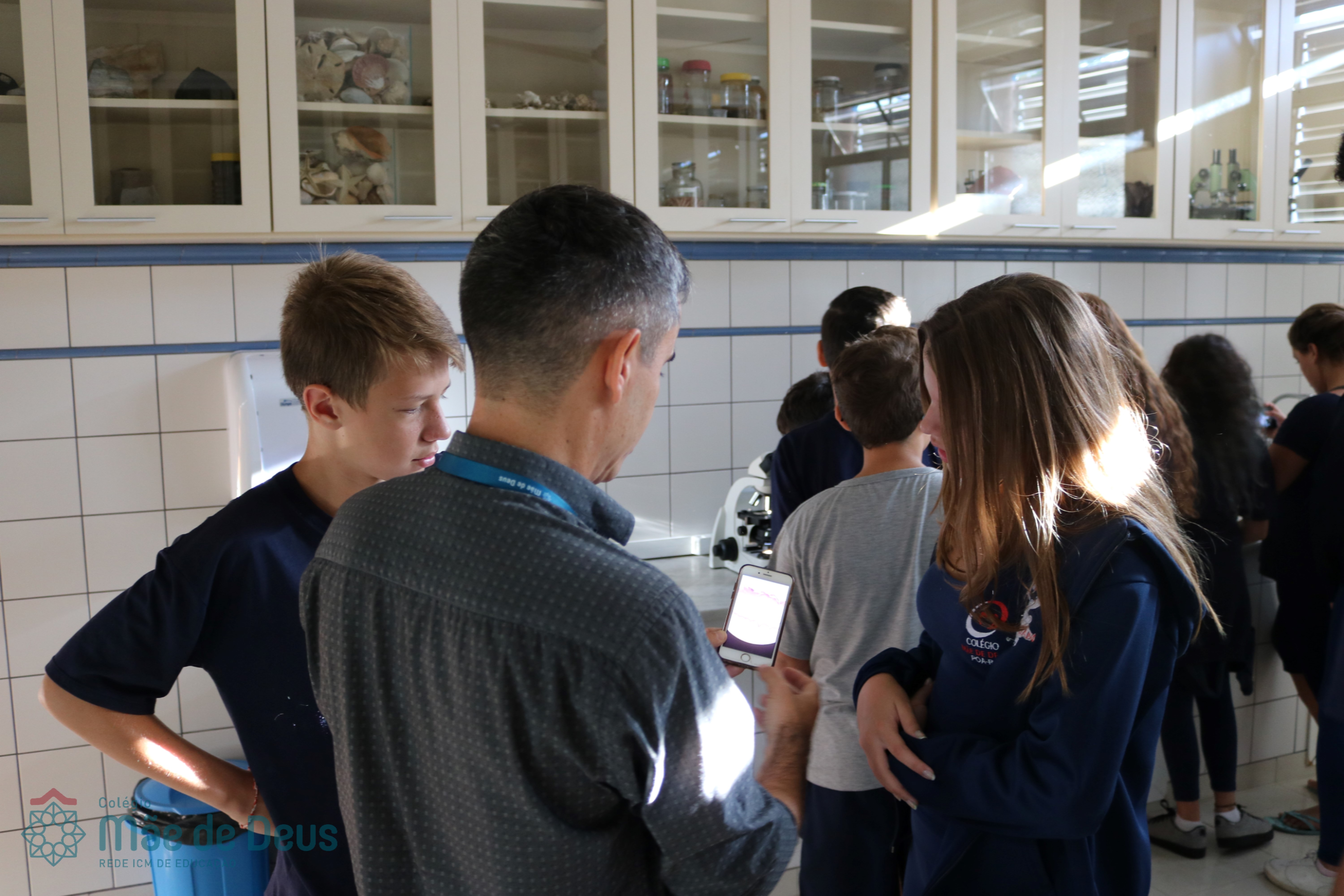 Os alunos ainda tiveram a oportunidade de fotografar as lâminas, através das lentes do microscópio, levando a imagem para a sua galeria de fotos.