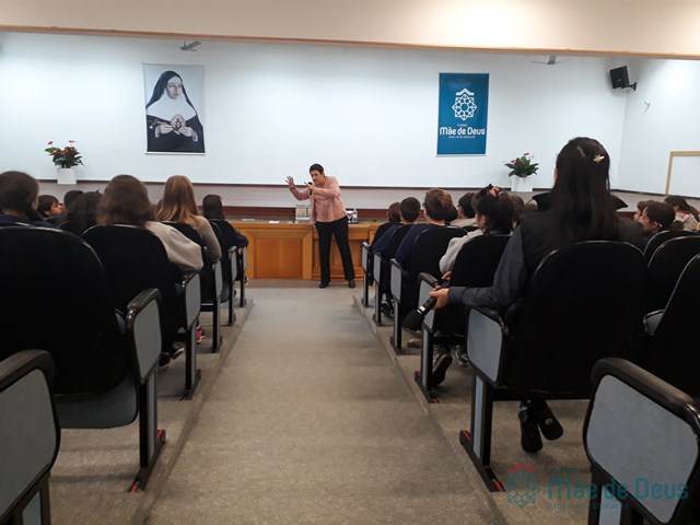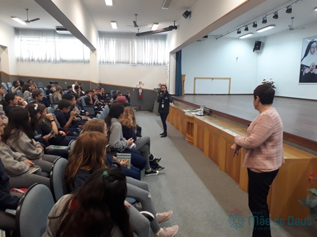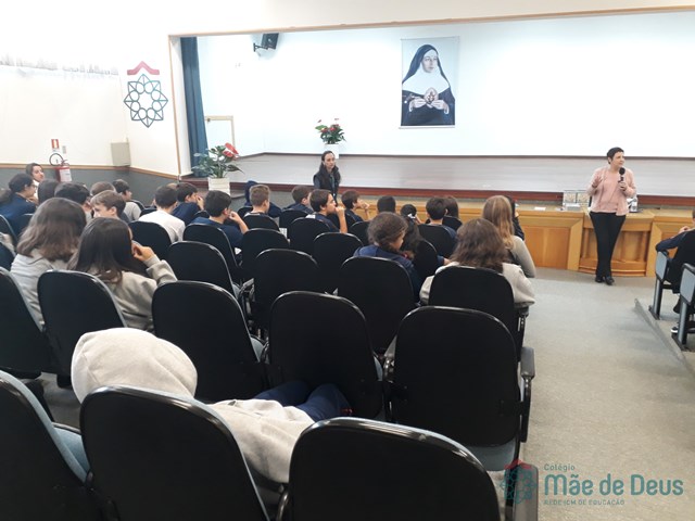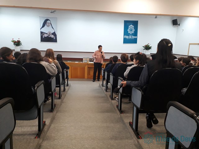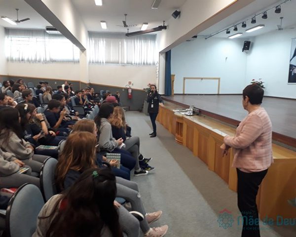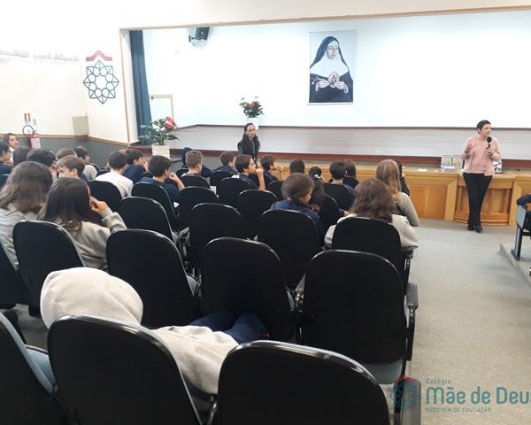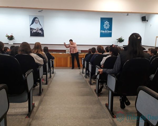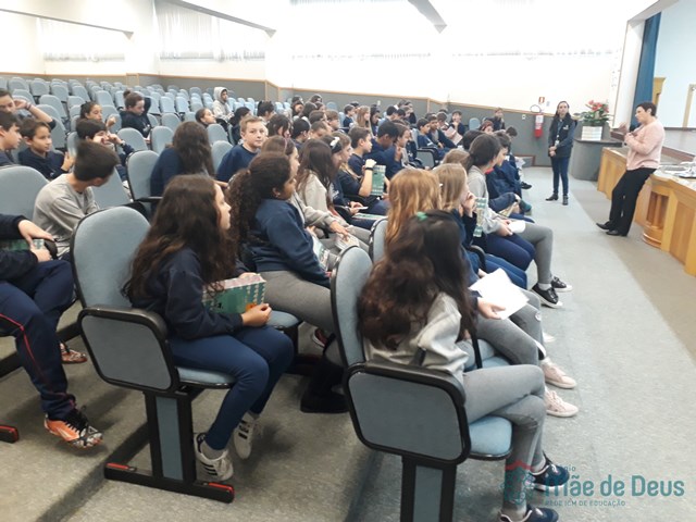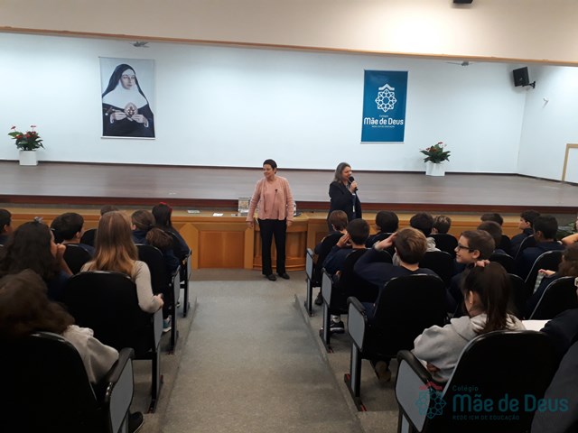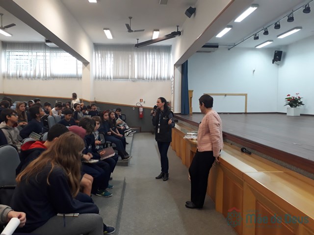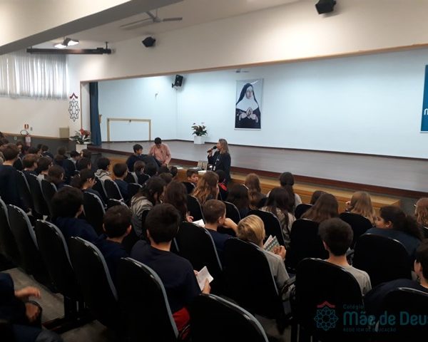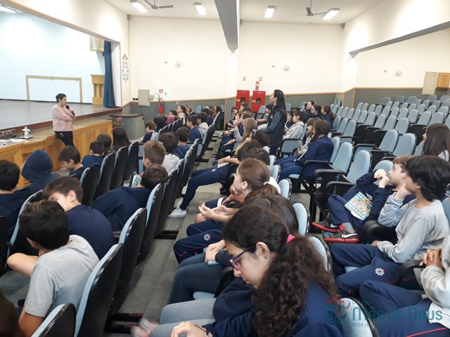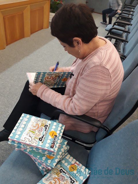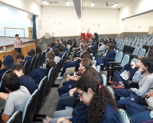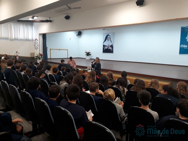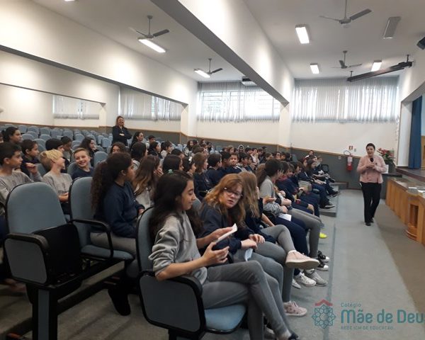 Como parte da programação da Feira Literária, as turmas do 6º ano receberam a visita da escritora e Vice Reitora da UFRGS Jane Tutikian. Os alunos tiveram a oportunidade de conversar com a autora do livro “Fica ficando” (leitura realizada no primeiro trimestre), estabelecendo trocas significativas entre o leitor e a escritora. Foi um bate-papo gostoso e divertido, pois, além de conhecê-la pessoalmente, os estudantes puderam fazer perguntas e participar de uma sessão de autógrafos.