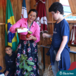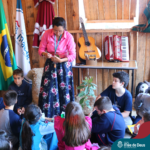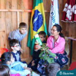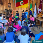 Durante a visita ao Piquete Mãe de Deus, na Semana Farroupilha, a turma 42 conversou sobre a erva-mate (Ilex Paraguariensis) e outras informações do chimarrão, bebida tradicional do povo gaúcho.
