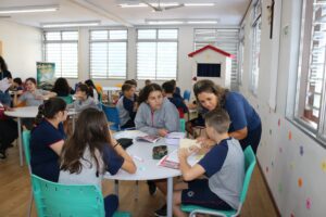 Durante a orientação, os alunos são incentivados a acessar também o acervo digital disponível nas plataformas de leitura que o colégio oferece (Elefante Letrado e Árvore de Livros).