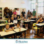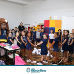 Na primeira semana da volta às aulas em 2023, os alunos recepcionaram a Linda, da International School. Quando a personagem sai do livro e visita o mundo real, os olhos das crianças brilham e a felicidade toma conta do momento.