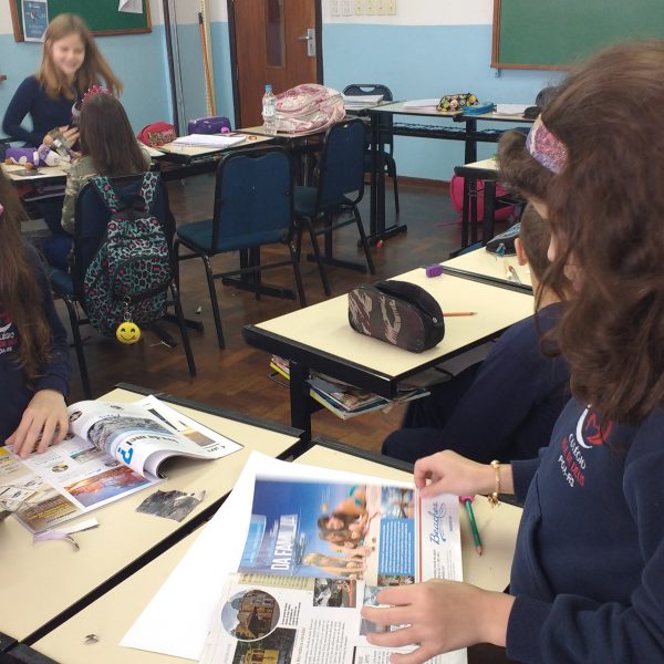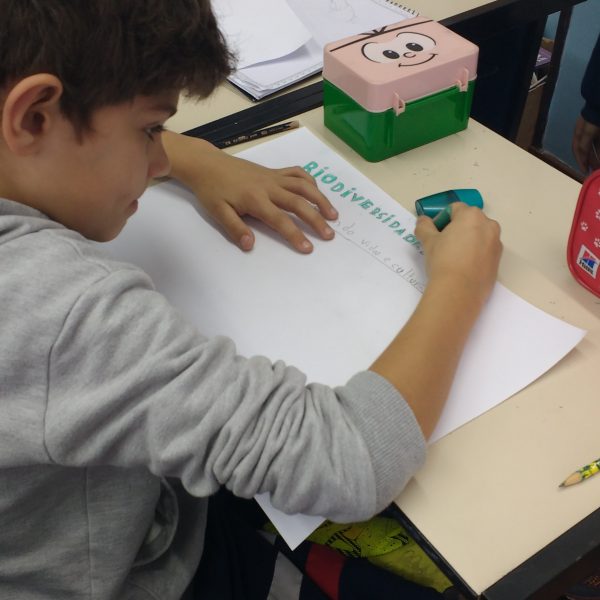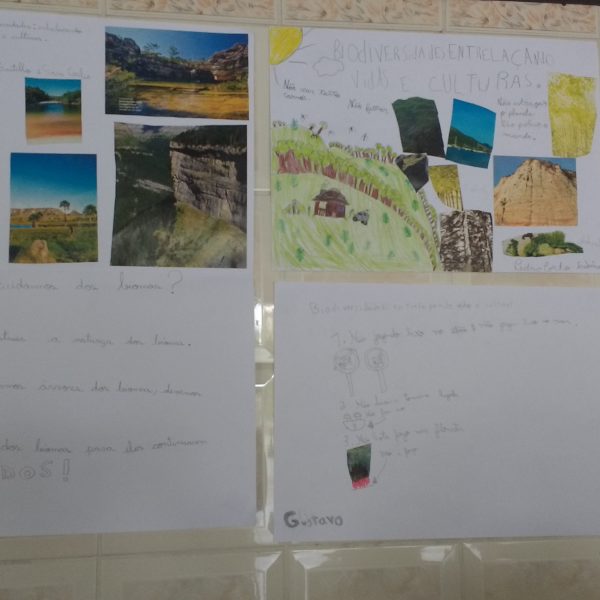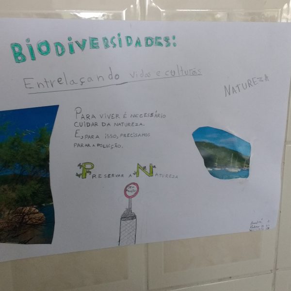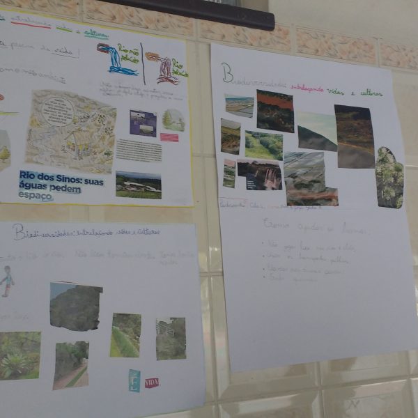 Os alunos, primeiramente, confeccionaram cartazes com imagens e frases, sugerindo propostas de cuidado com os biomas. Estes trabalhos ficaram expostos no saguão do Colégio.