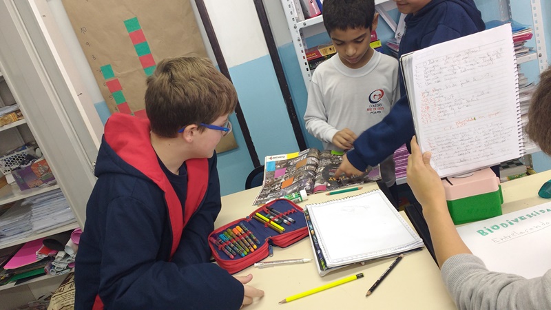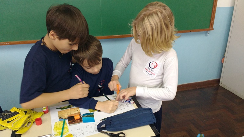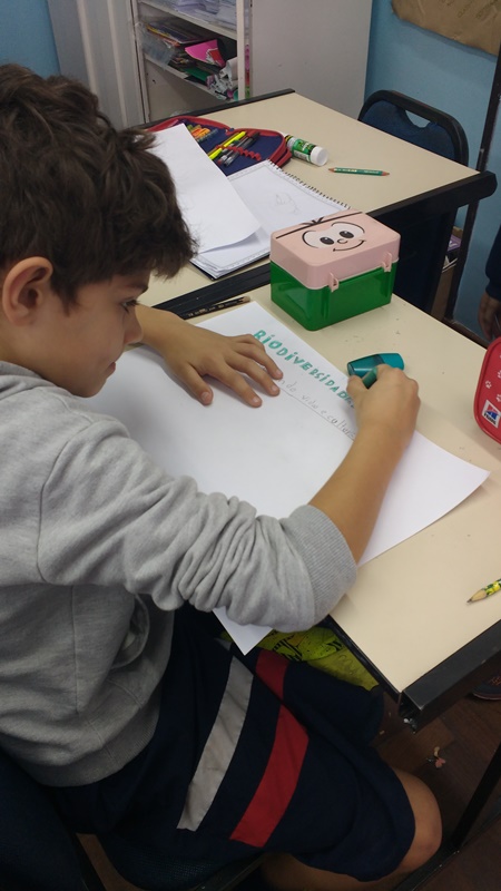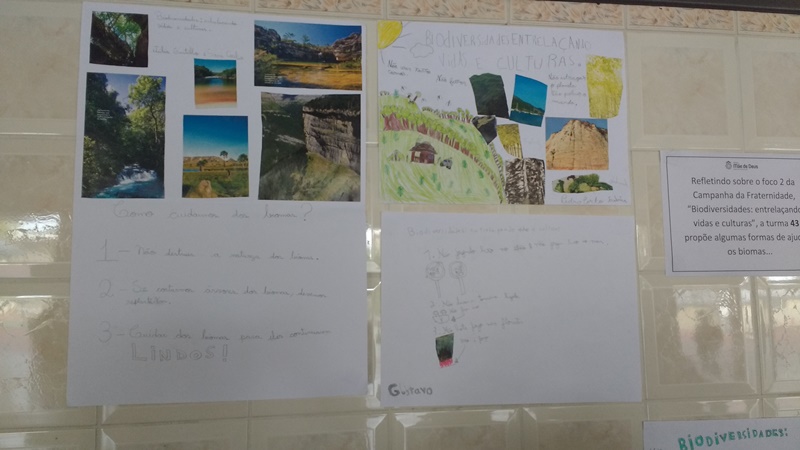 Os alunos, primeiramente, confeccionaram cartazes com imagens e frases, sugerindo propostas de cuidado com os biomas. Estes trabalhos ficaram expostos no saguão do Colégio.