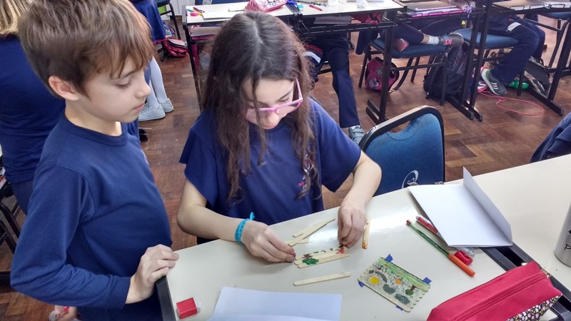 Depois, os estudantes produziram quebra-cabeças com palito de picolé sobre os biomas. Usaram a criatividade para a construção dos materiais, se divertiram, trocaram entre si, trabalharam e socializam ideias entre os colegas, resultando em uma grande troca de experiências a partir dessa oportunidade.