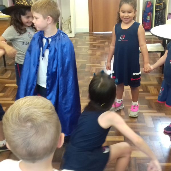 As crianças das turmas do Nível 2A e do Nível 3, através de danças e pequenas rimas, tem vivenciado momentos lúdicos e mágicos com as famosas cantigas de roda, como: A Linda Rosa Juvenil, O Cravo brigou com a Rosa, A Canoa virou, etc… Além de reproduzirem as diferentes culturas e estimularem a memória, as cantigas incentivam a criatividade e a imaginação, através de danças e pequenas rimas, fáceis de memorizar e de se divertir. “A brincadeira é primordial e desenvolve a arte de amar”!