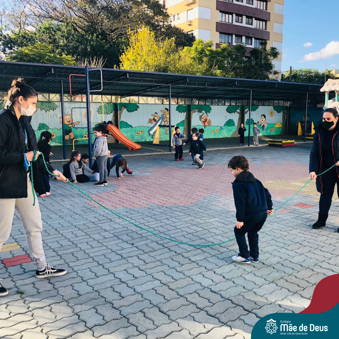 Comemorando o Dia do Folclore Brasileiro, celebrado em 22 de agosto, as turmas do Pré1 conheceram as tradicionais lendas folclóricas e exploraram as brincadeiras típicas, como: jogar peteca, pular corda, cantigas de roda e amarelinha, onde puderam experienciar essas vivências em um circuito ao ar livre.