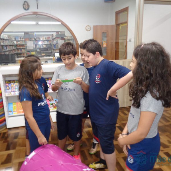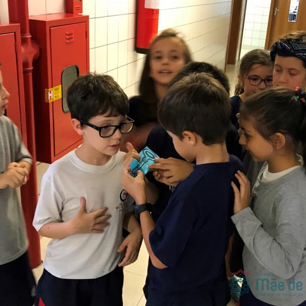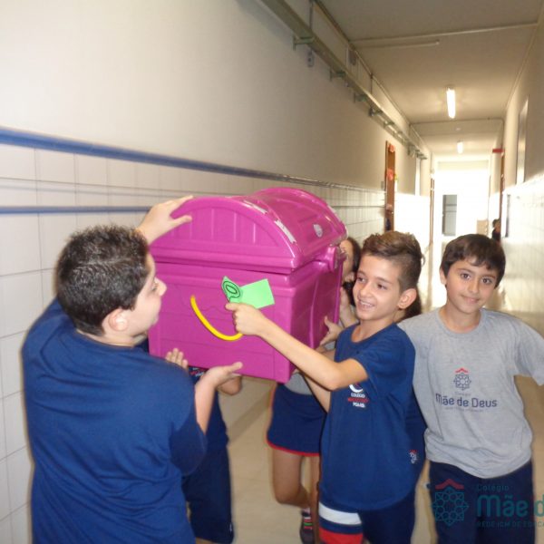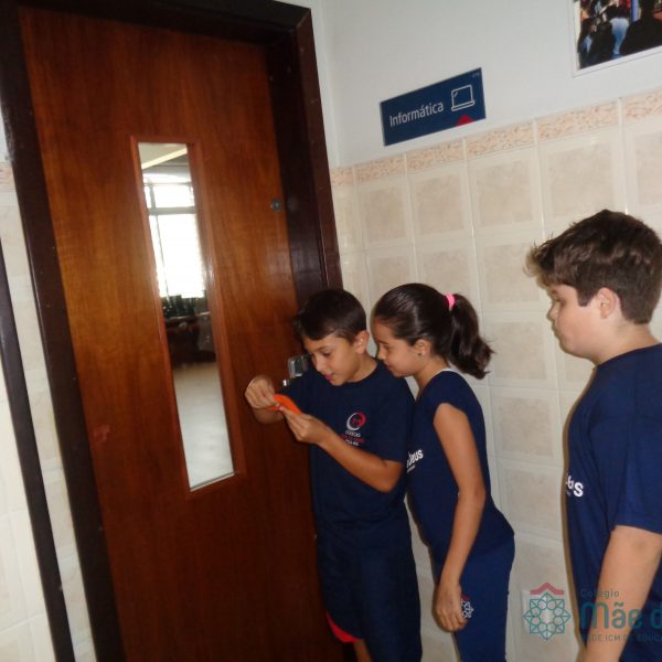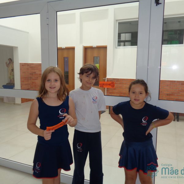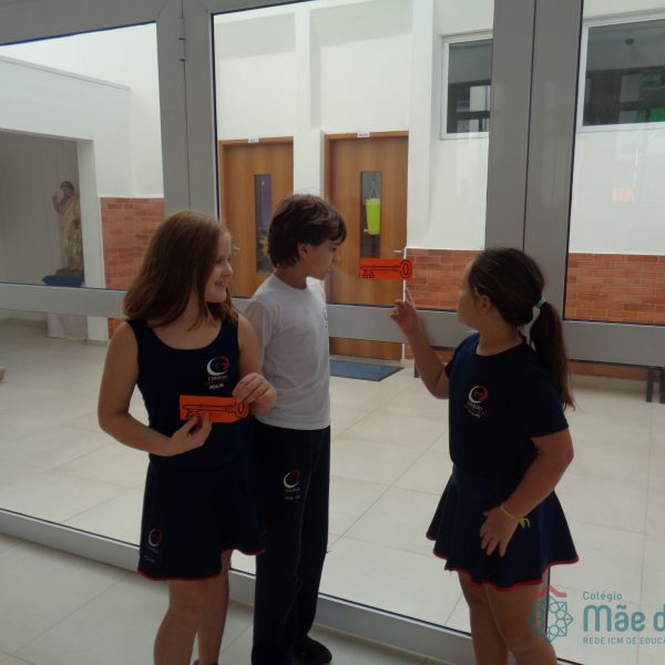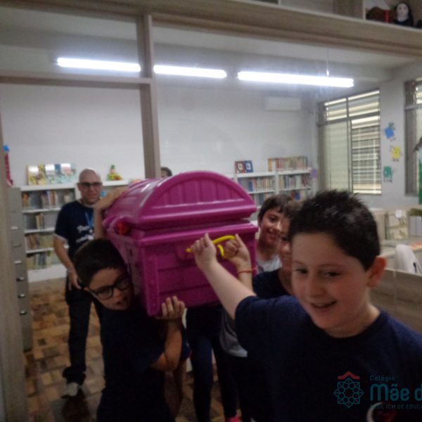 As turmas do 3º ano do Ensino Fundamental, tiveram que desvendar pistas espalhadas pela Escola para encontrar um tesouro. A atividade deu início ao Projeto de Leitura, que tem como um dos objetivos “despertar e incentivar o interesse e gosto pela leitura”. As pistas eram chaves, espalhadas pelos setores, pátio e demais dependências do Colégio. Cada chave, apontava a próxima pista. Ao final, as crianças abriram um baú, no qual estavam os livros que irão ler durante o projeto de leitura!