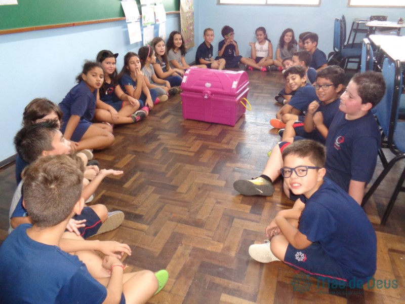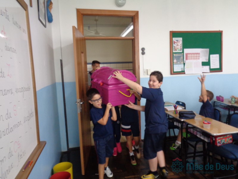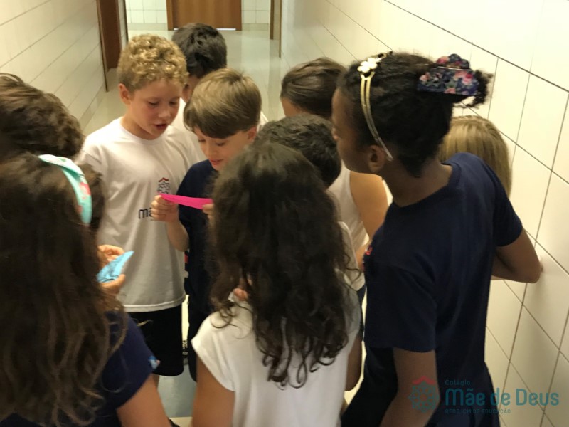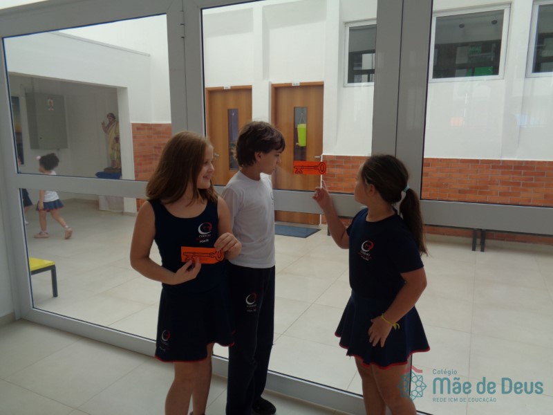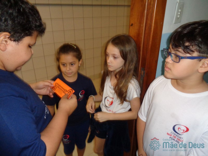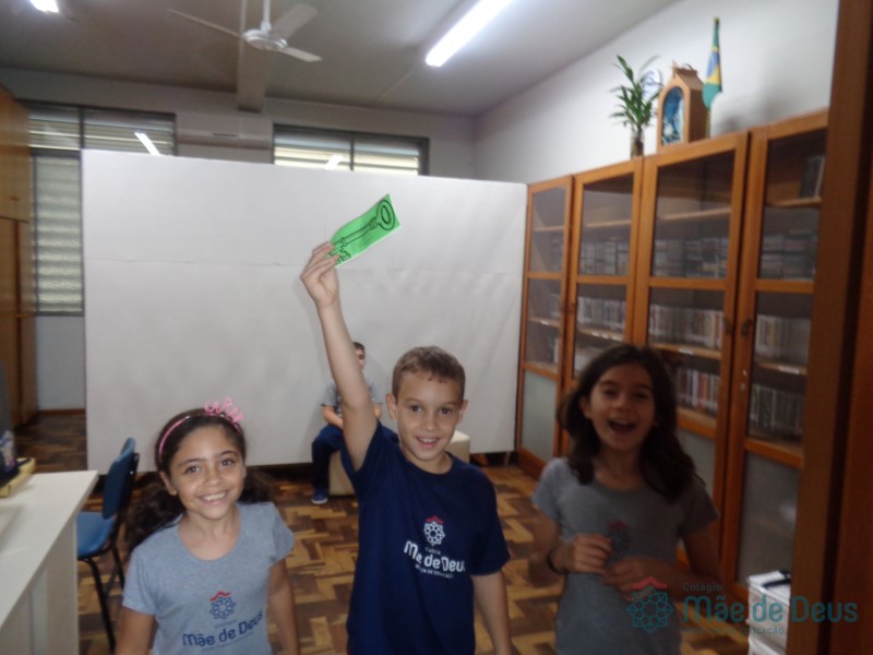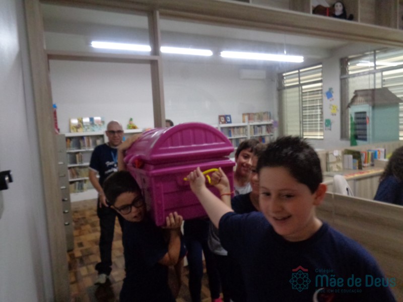 As turmas do 3º ano do Ensino Fundamental, tiveram que desvendar pistas espalhadas pela Escola para encontrar um tesouro. A atividade deu início ao Projeto de Leitura, que tem como um dos objetivos “despertar e incentivar o interesse e gosto pela leitura”. As pistas eram chaves, espalhadas pelos setores, pátio e demais dependências do Colégio. Cada chave, apontava a próxima pista. Ao final, as crianças abriram um baú, no qual estavam os livros que irão ler durante o projeto de leitura!