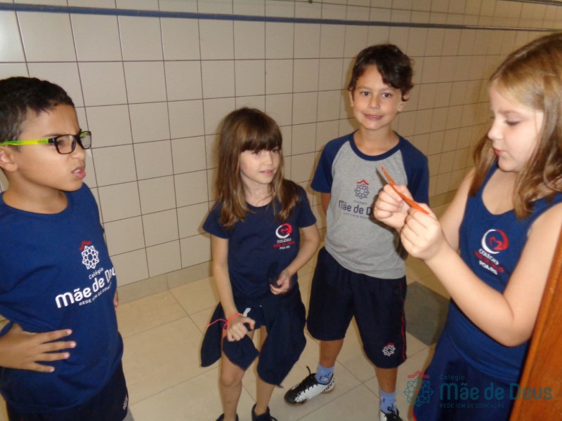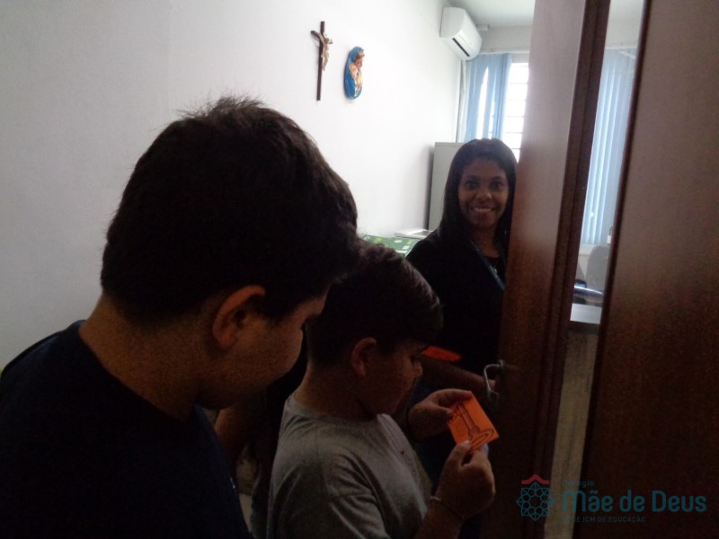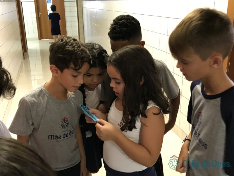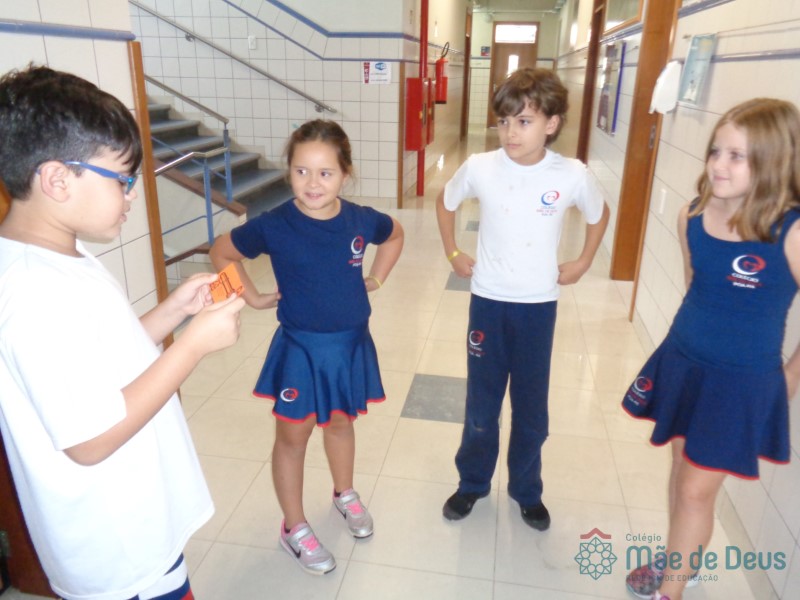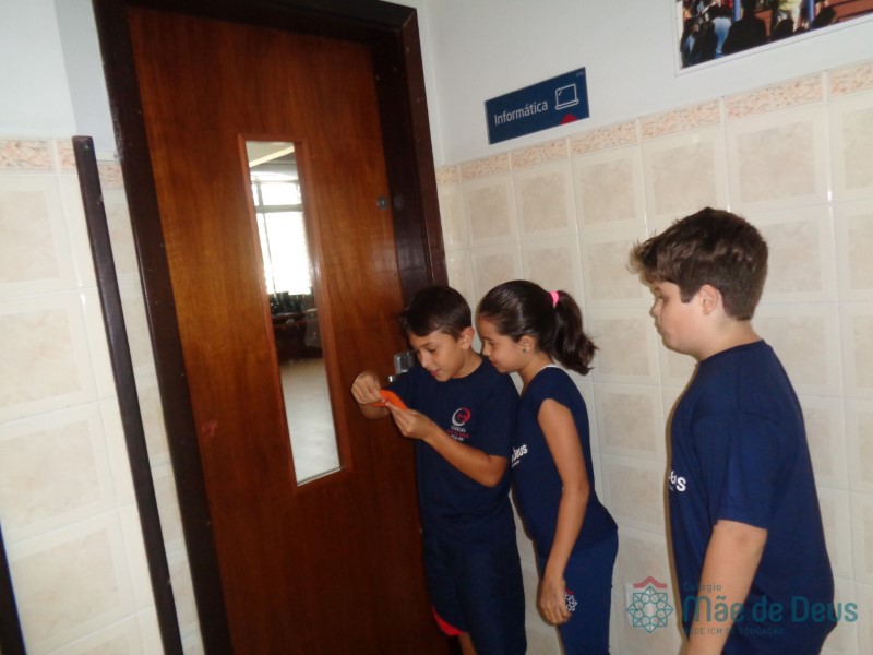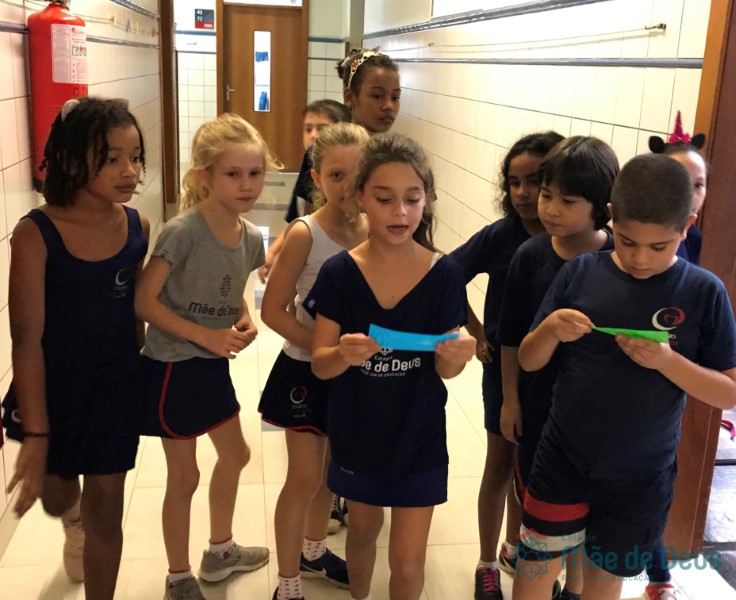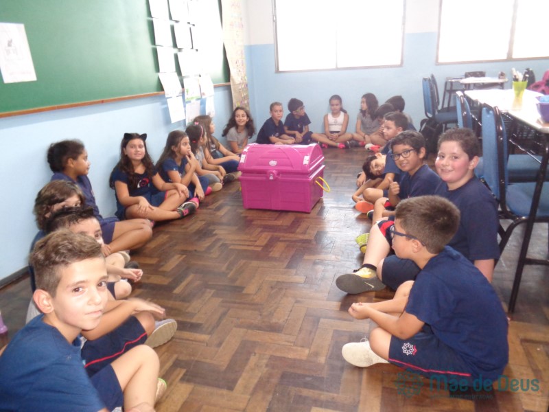 As turmas do 3º ano do Ensino Fundamental, tiveram que desvendar pistas espalhadas pela Escola para encontrar um tesouro. A atividade deu início ao Projeto de Leitura, que tem como um dos objetivos “despertar e incentivar o interesse e gosto pela leitura”. As pistas eram chaves, espalhadas pelos setores, pátio e demais dependências do Colégio. Cada chave, apontava a próxima pista. Ao final, as crianças abriram um baú, no qual estavam os livros que irão ler durante o projeto de leitura!