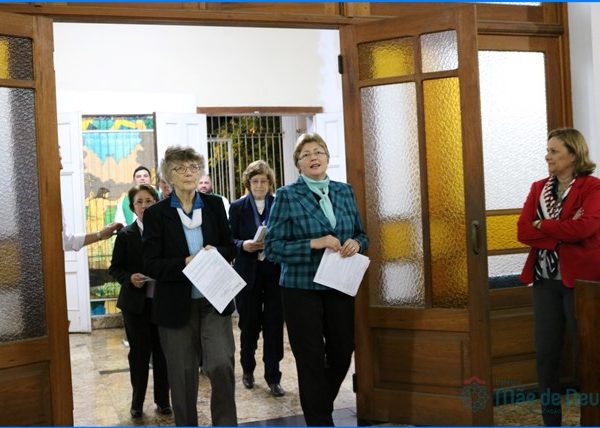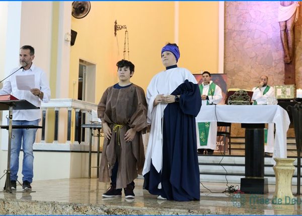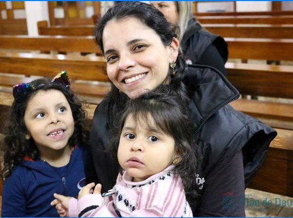Alguns pais participaram da procissão de entrada, expressando gestos de amor e cuidado com os filhos. As irmãs também foram lembradas pelo final de semana em que a Igreja celebra a vocação da Vida Consagrada e sua doação pelo Reino de Deus.