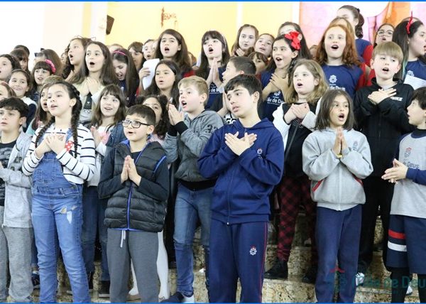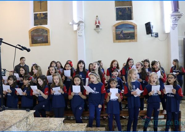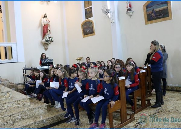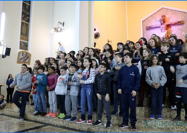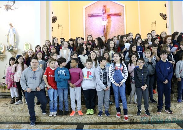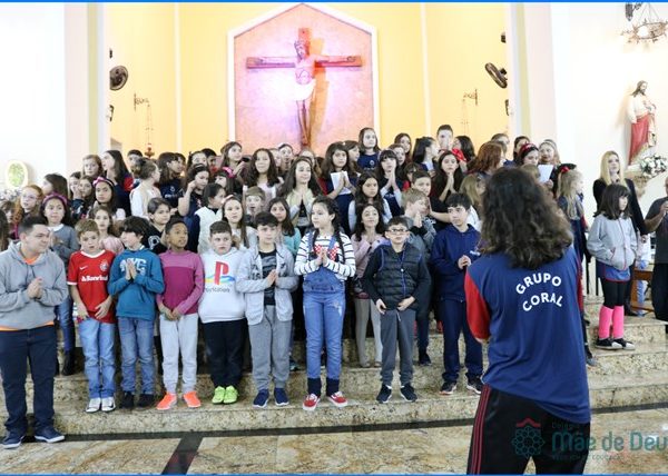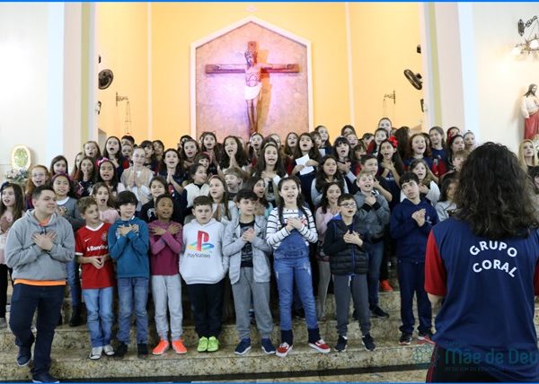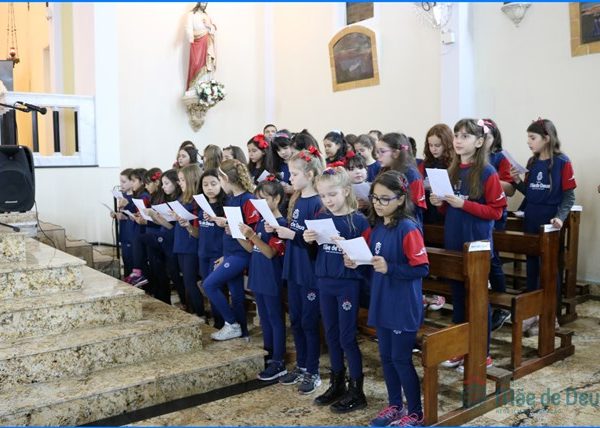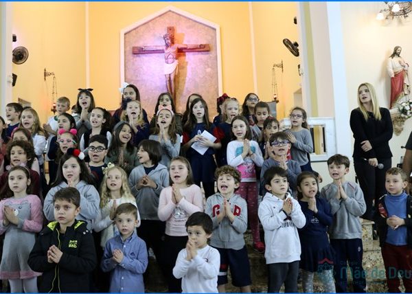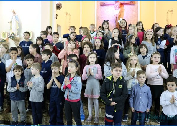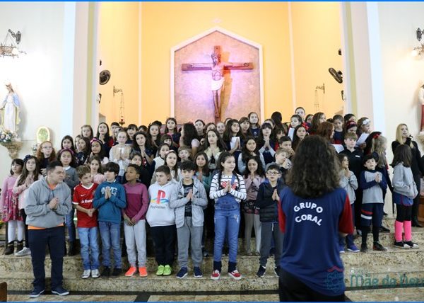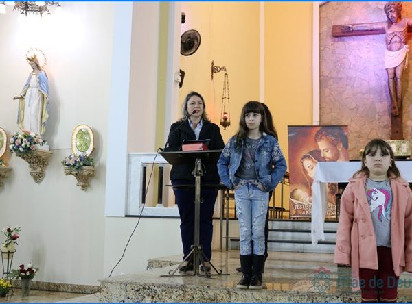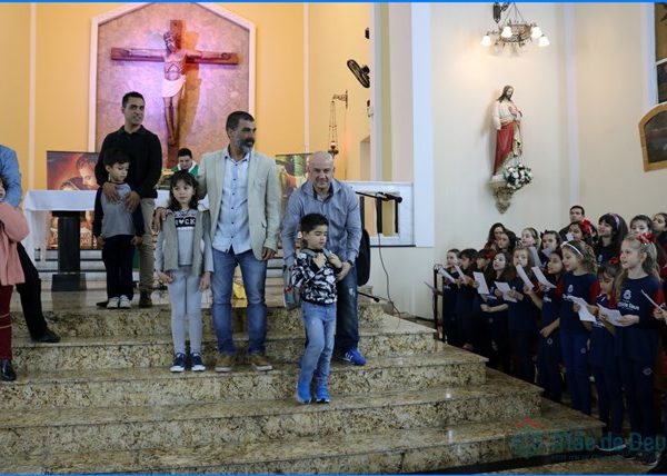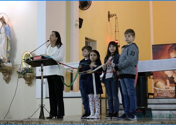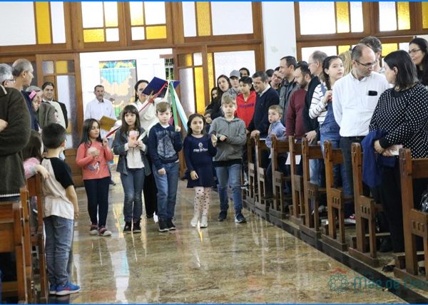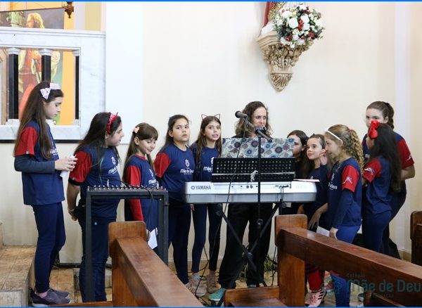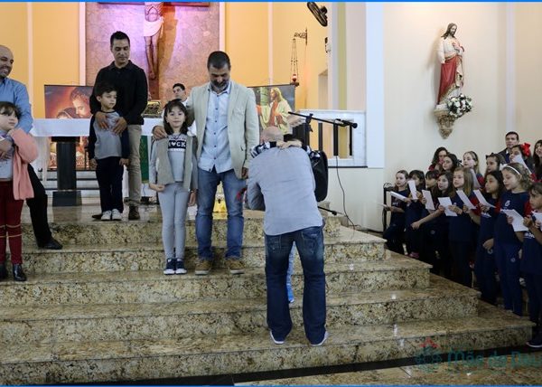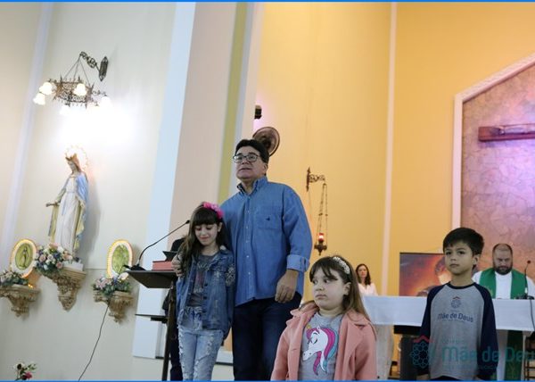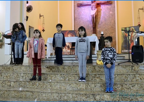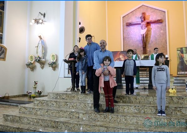 Ao final da missa, as crianças e um casal de pais cantaram a música “Ilumina, Ilumina” do Pe. Zezinho, emocionando a todos.