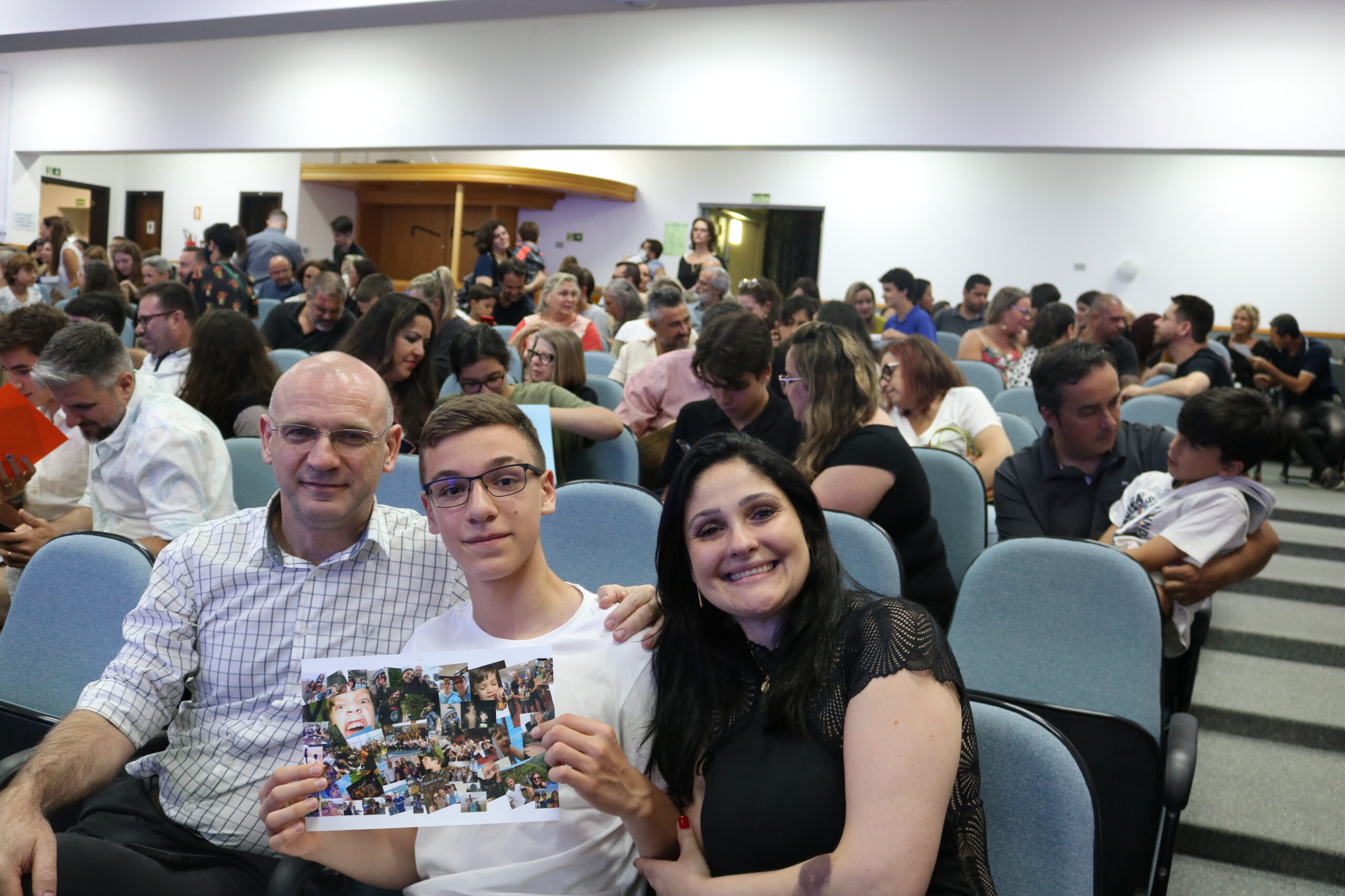Durante a celebração, os alunos apresentaram símbolos que lembravam suas trajetórias, no passo a passo de seu crescimento, superações e conquistas. Após a missa, realizou-se um momento de homenagem às turmas, com a entrega de uma surpresa, que gerou troca de memórias, carinhos e longos abraços. Concluímos a noite com uma confraternização, festejando a vida e a amizade, com muita alegria!