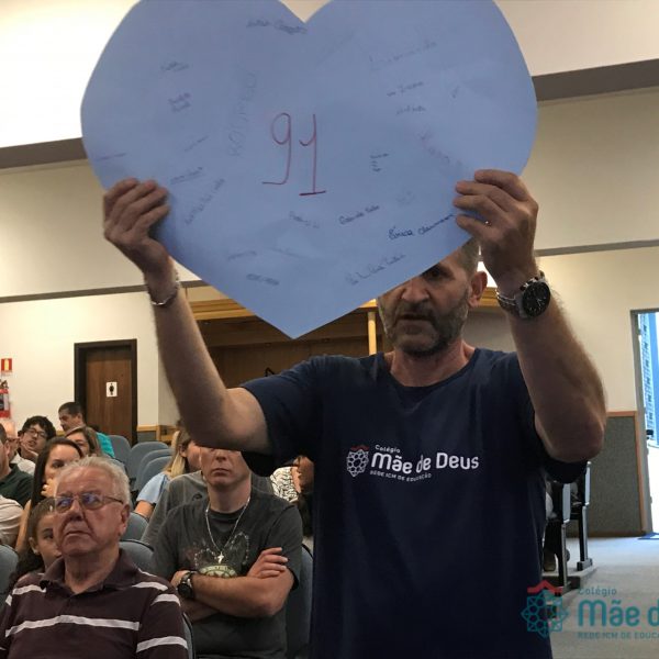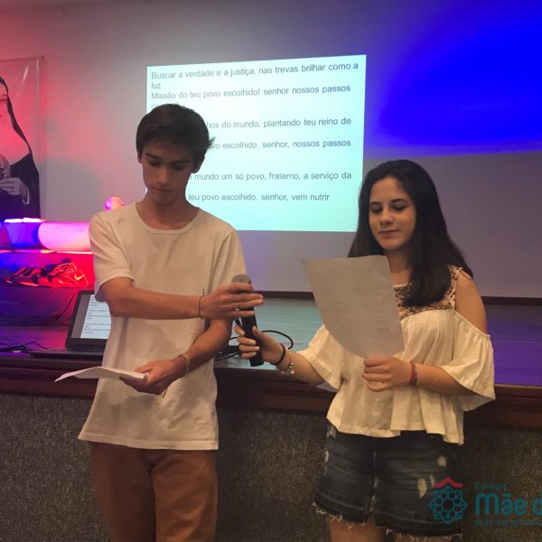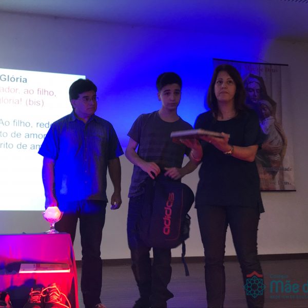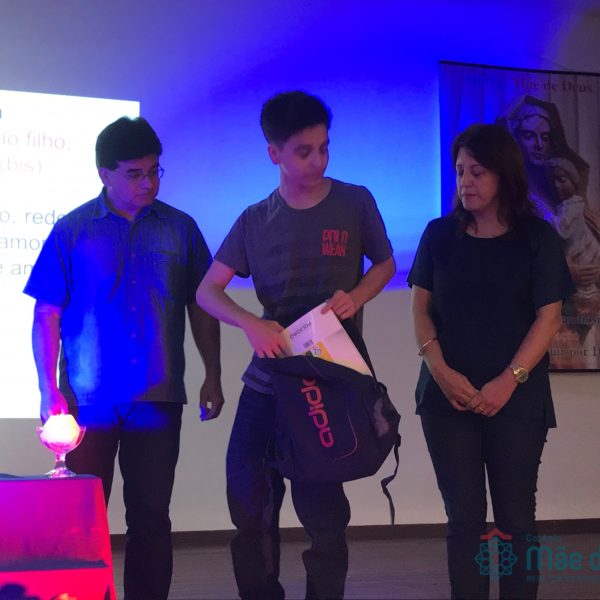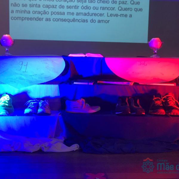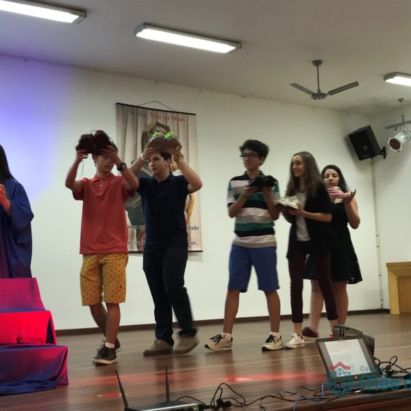 O símbolo que marcou a celebração foi o par de tênis, sinal de quem se põe a caminho, com coragem e determinação. O Pe. João Carlos, em sua palavra, ressaltou a importância de manter a motivação em ser um jovem que ama a vida e a viva com honestidade. A família e a Escola são o suporte que contribui no passo a passo da superação das dificuldades e concretização dos sonhos de cada um.