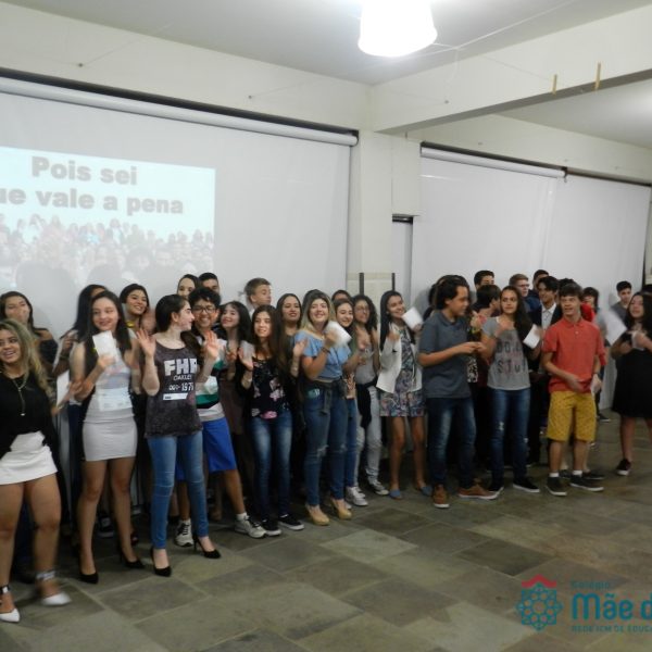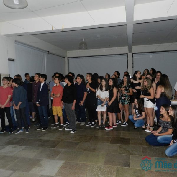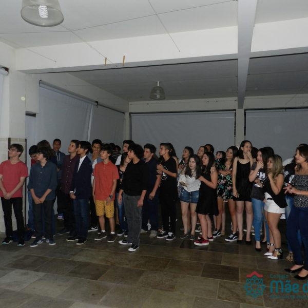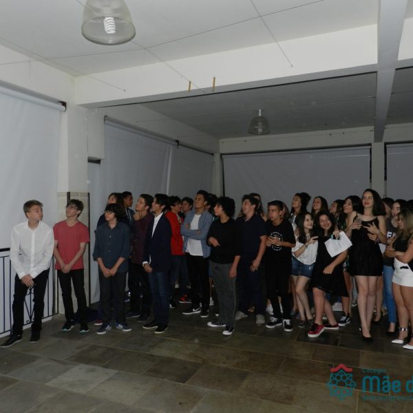 Após a celebração, os alunos assistiram a um vídeo, contemplando algumas de suas vivências ao longo do Ensino Fundamental e receberam um pequeno mimo da direção da Escola. Todos confraternizaram com muita alegria com um gostoso coquetel.