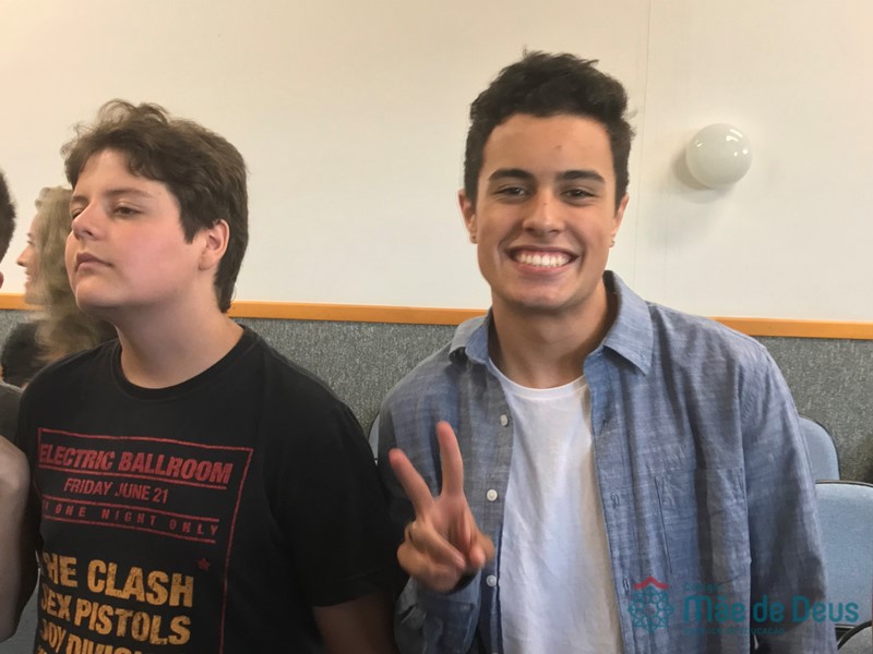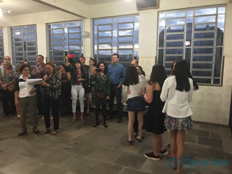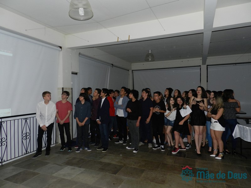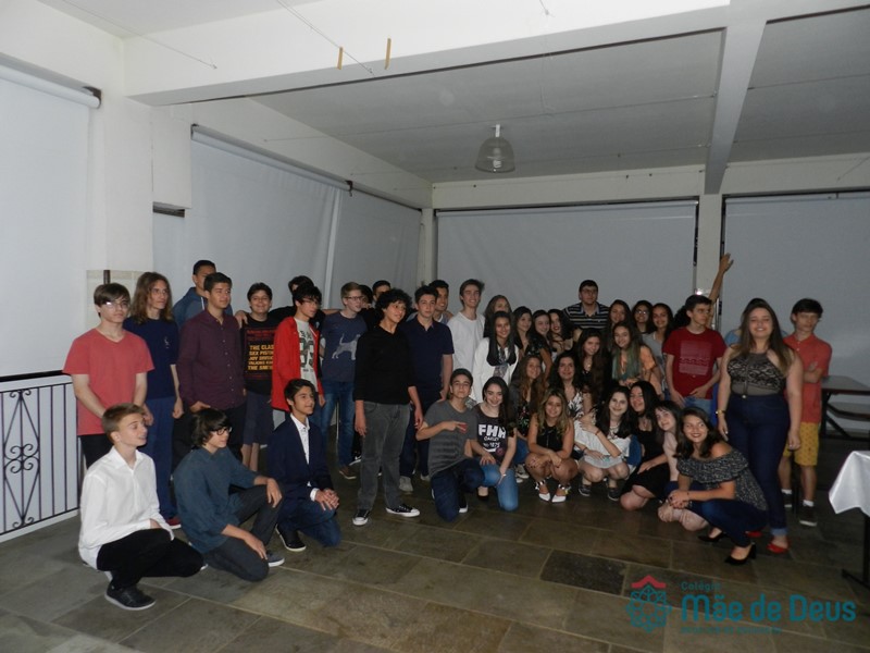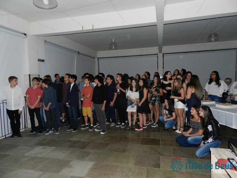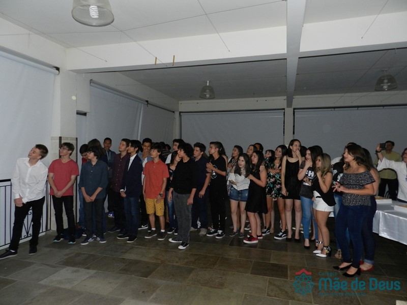 Após a celebração, os alunos assistiram a um vídeo, contemplando algumas de suas vivências ao longo do Ensino Fundamental e receberam um pequeno mimo da direção da Escola. Todos confraternizaram com muita alegria com um gostoso coquetel.