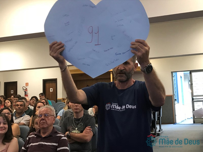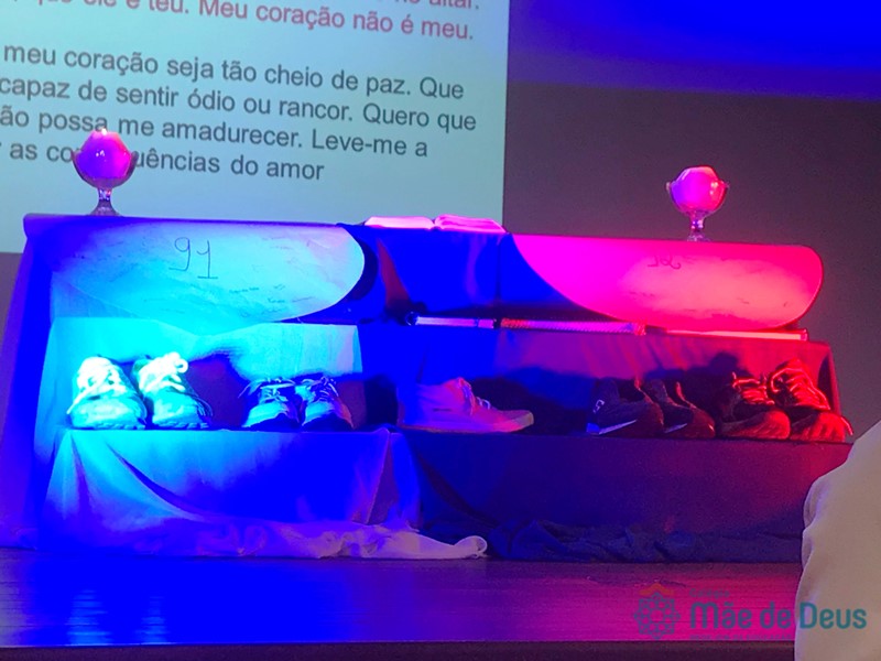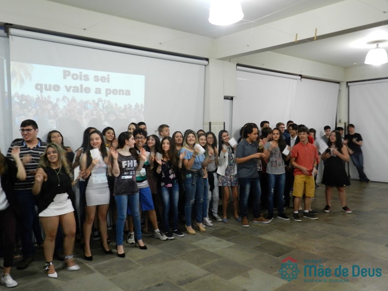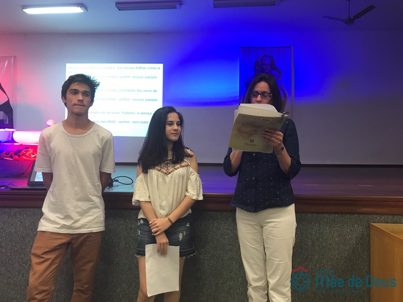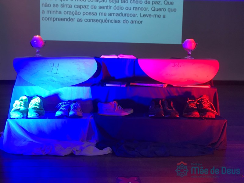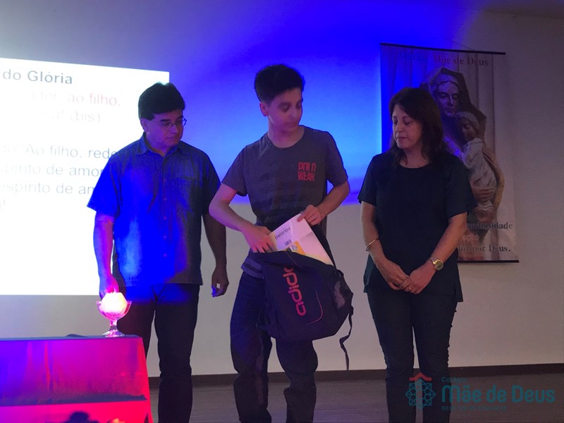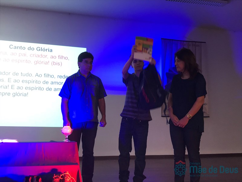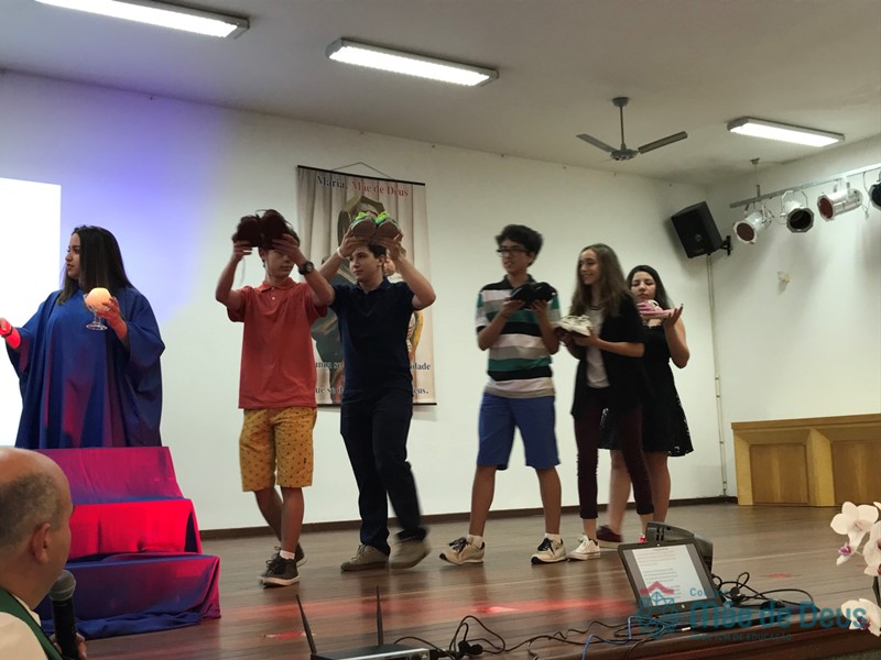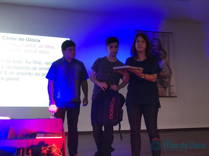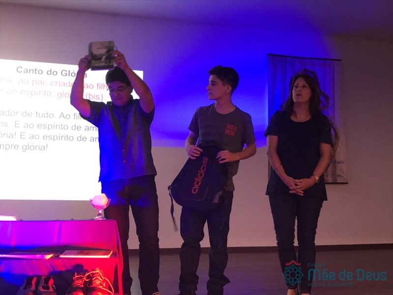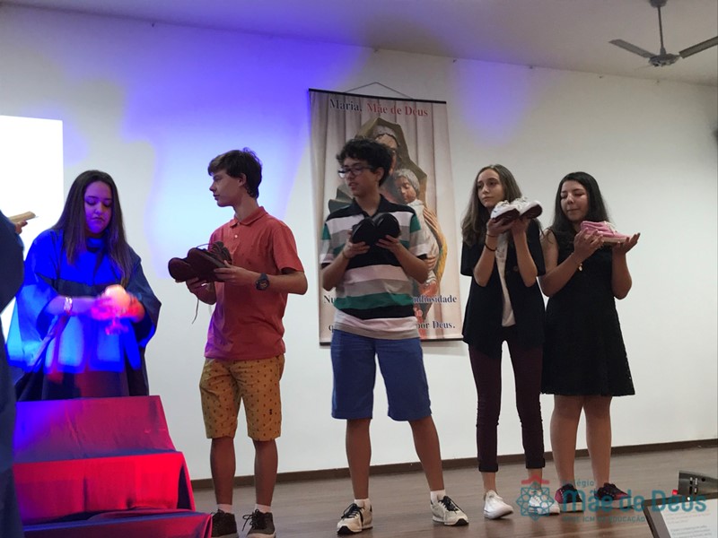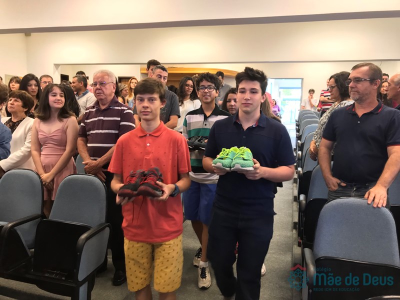 O símbolo que marcou a celebração foi o par de tênis, sinal de quem se põe a caminho, com coragem e determinação. O Pe. João Carlos, em sua palavra, ressaltou a importância de manter a motivação em ser um jovem que ama a vida e a viva com honestidade. A família e a Escola são o suporte que contribui no passo a passo da superação das dificuldades e concretização dos sonhos de cada um.
