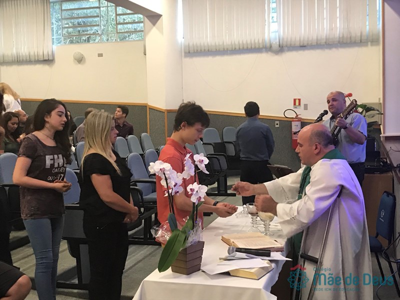 No dia 24/11/2017, no auditório do Colégio, aconteceu uma linda Celebração Eucarística com os estudantes e familiares do 9º ano do Ensino Fundamental. Este momento foi uma expressão de gratidão pela caminhada realizada e um incentivo para a continuidade que se dará no Ensino Médio.